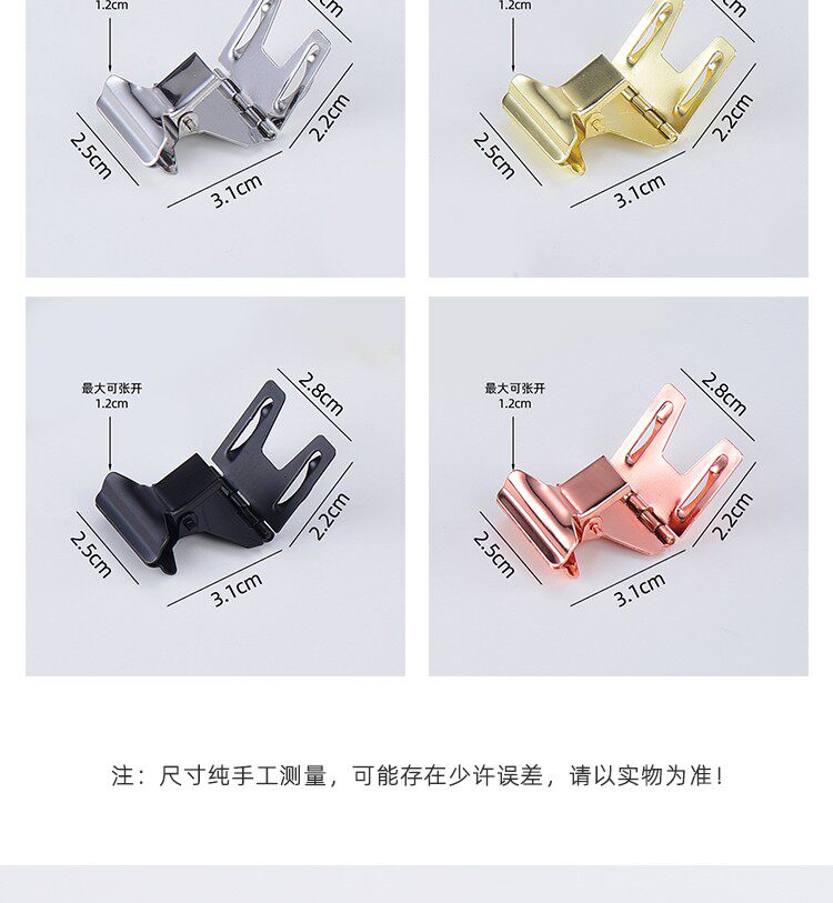 Color Classification Gold (Can Be Clamped with 1.2cm Thickness),Black (Can Be Clamped with 1.2cm Thickness),Silver (Can Be Clamped with a Thickness of 1.2cm),Rose Gold (Can Be Clamped with a Thickness of 1.2cm)