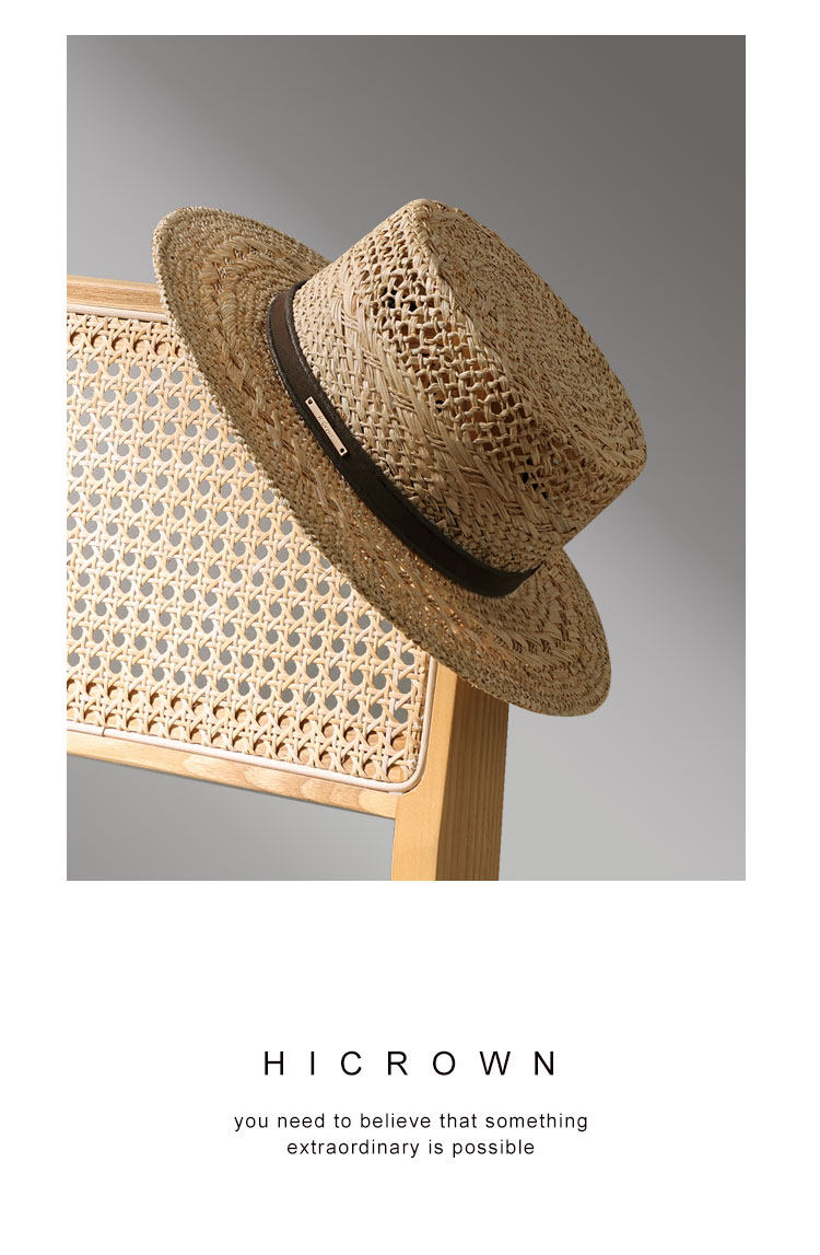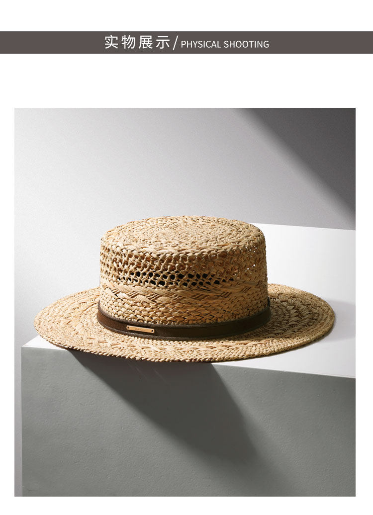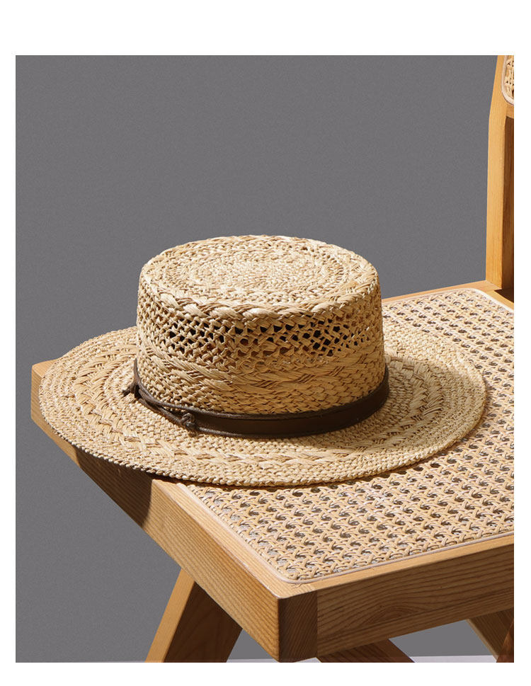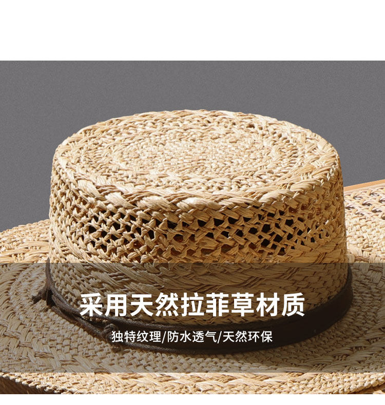 Summer new style men and women Lafite-Hotted Hand-woven Flat Top Hat Wide Band Sunshade Sun Protection Vacation French Beach