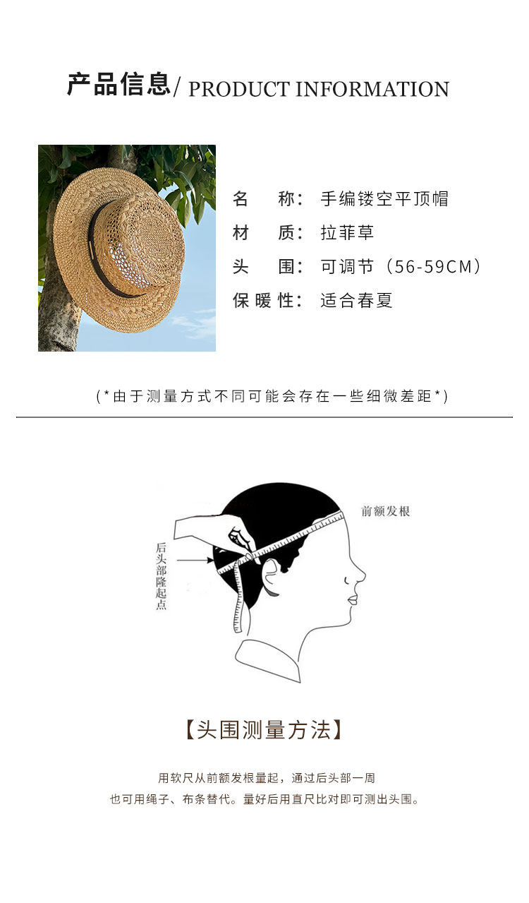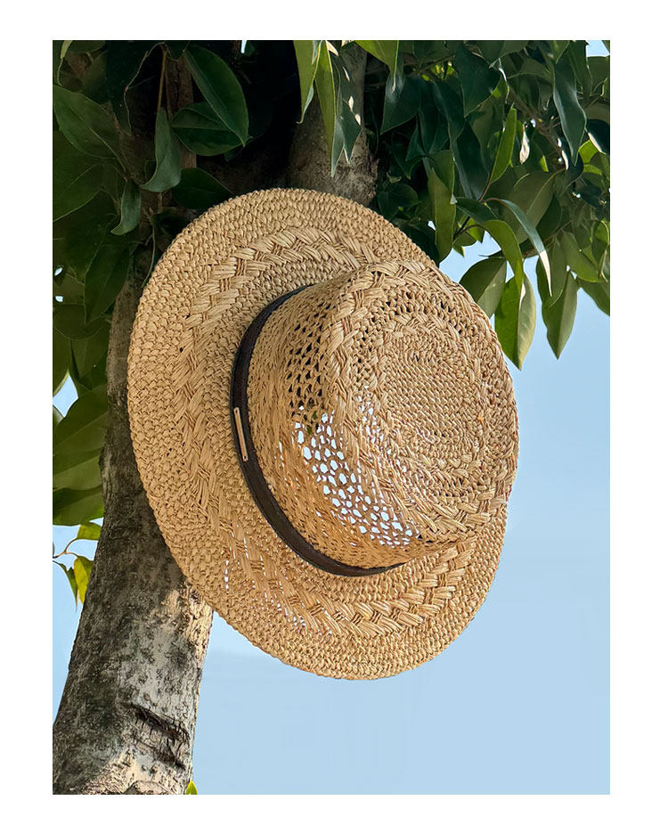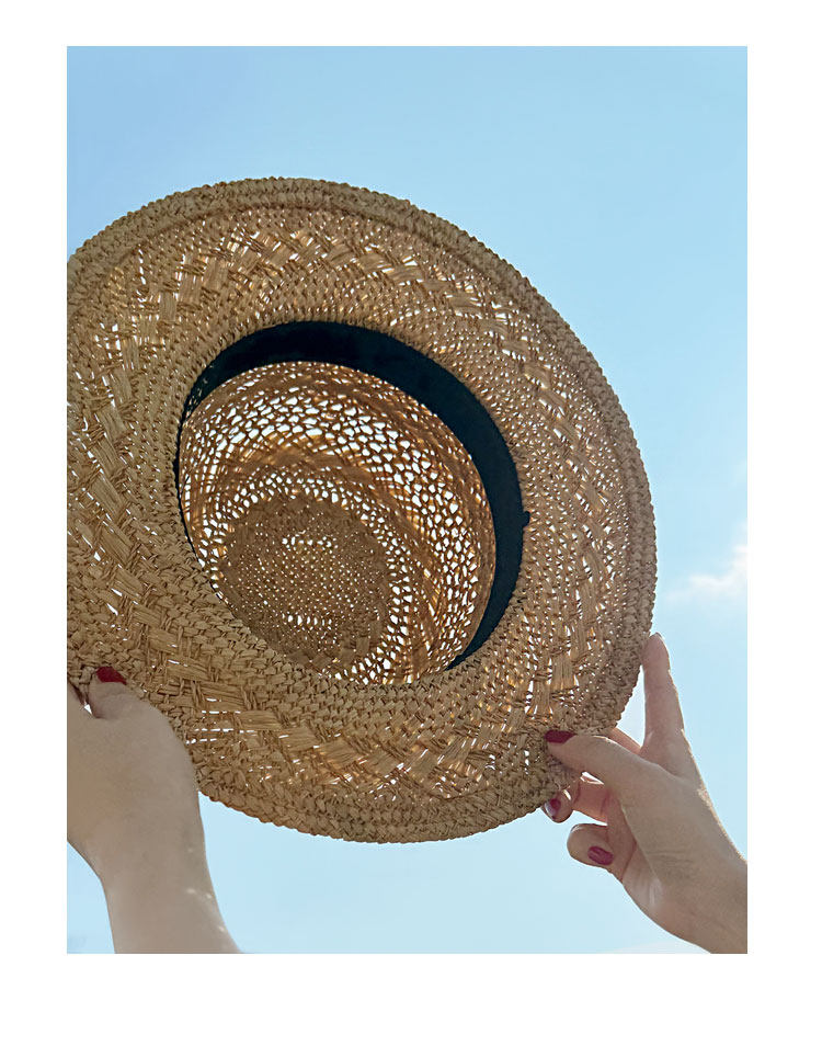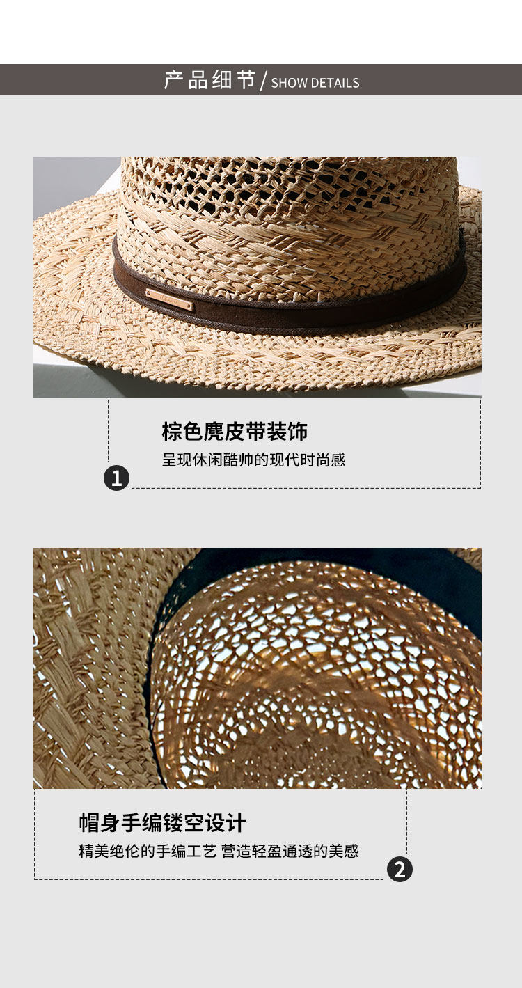 Summer new style men and women Lafite-Hotted Hand-woven Flat Top Hat Wide Band Sunshade Sun Protection Vacation French Beach