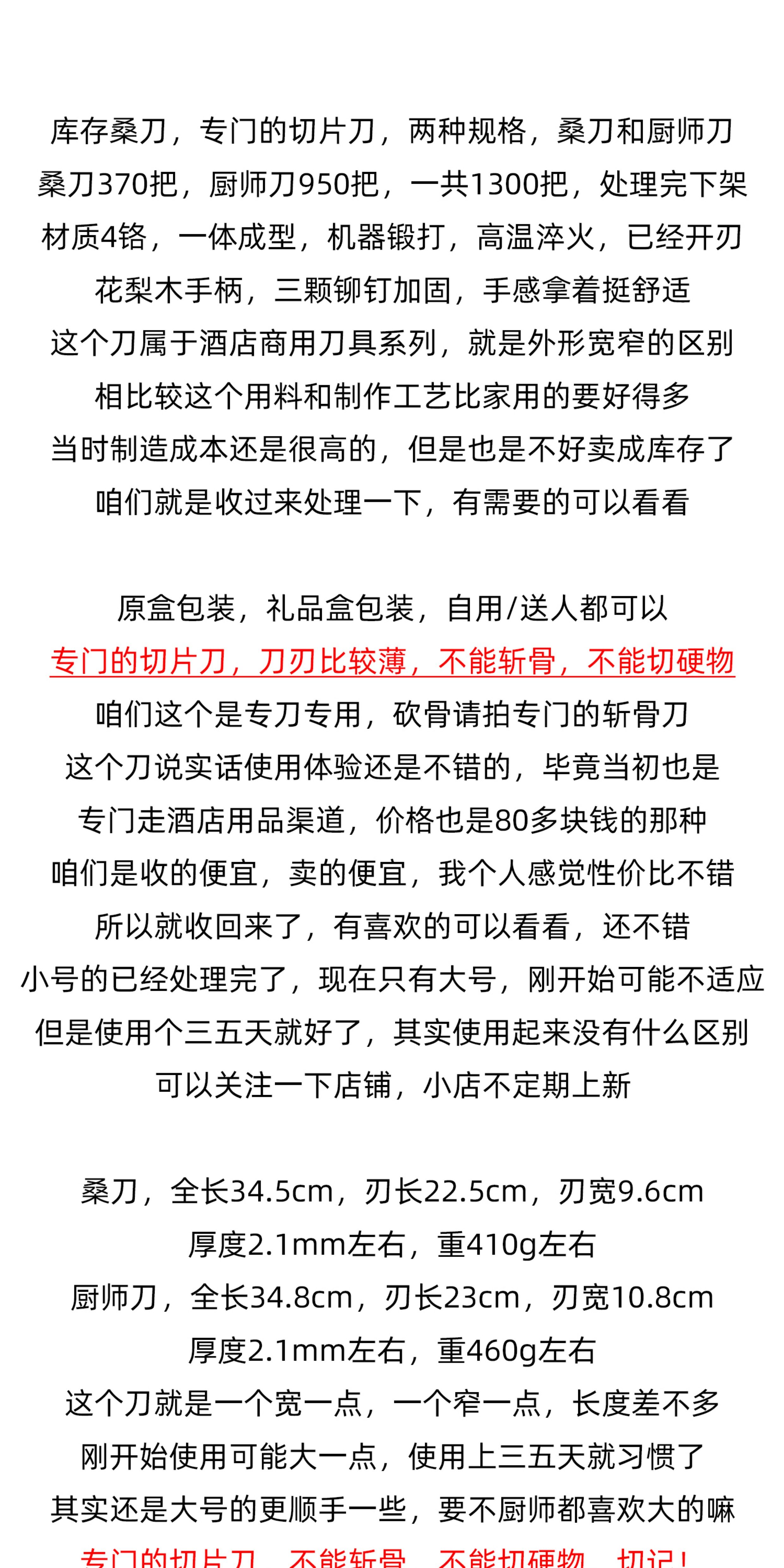 XMAN+ stock slicing knives, household kitchen knives, vegetable cleavers, 4 chromium stainless steel mulberry knives, only 1,300 pieces