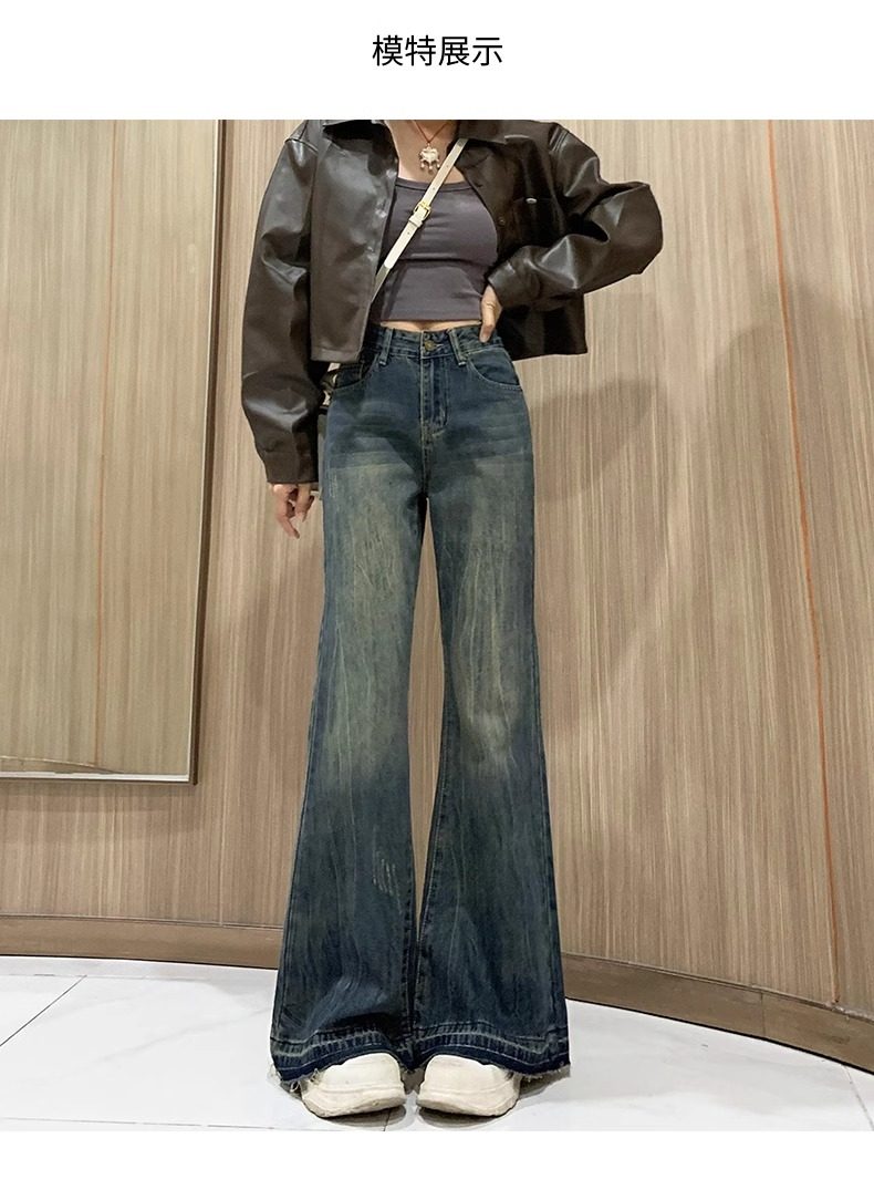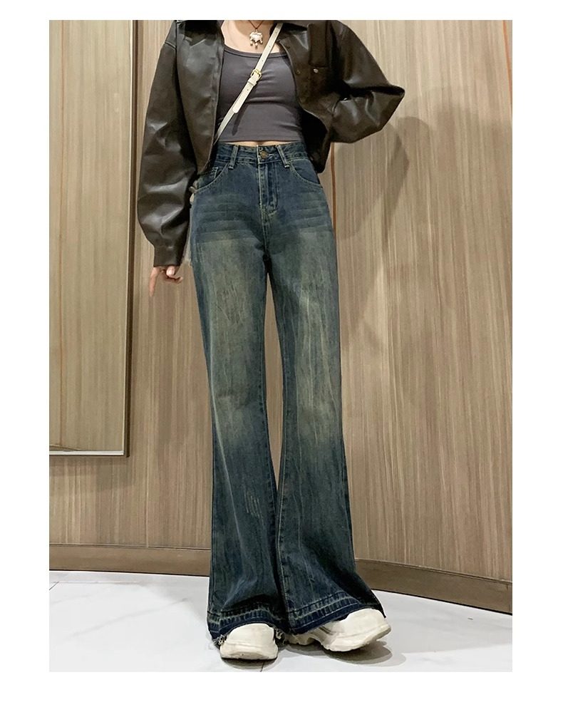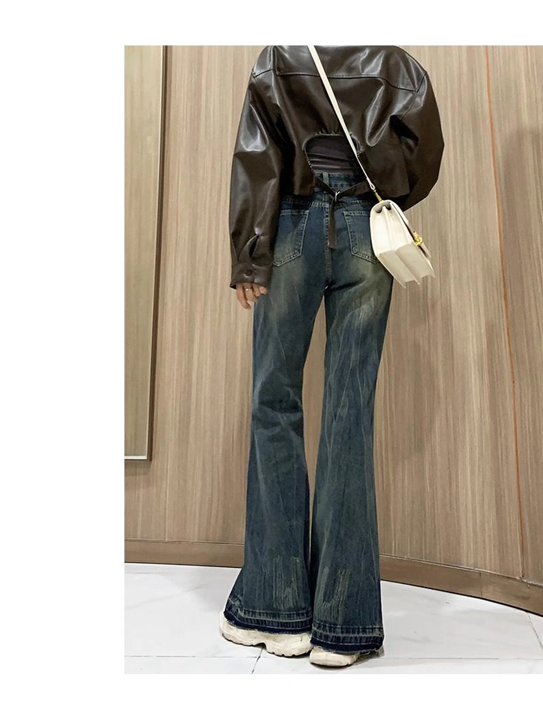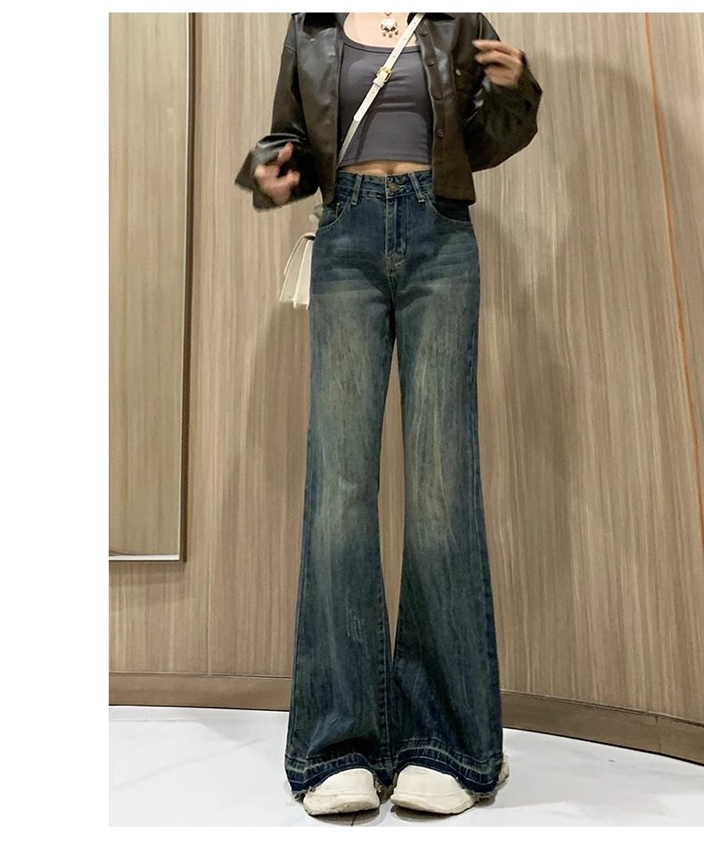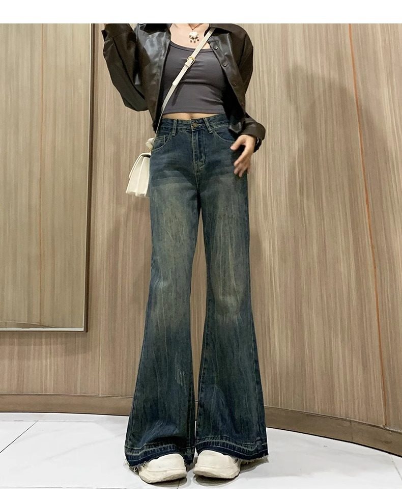 Retro High-Waist Micro-Flared Jeans for Women Spring 2025 New Style Small Slim Fit Horseshoe Flared Pants