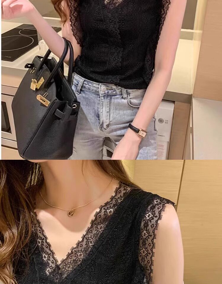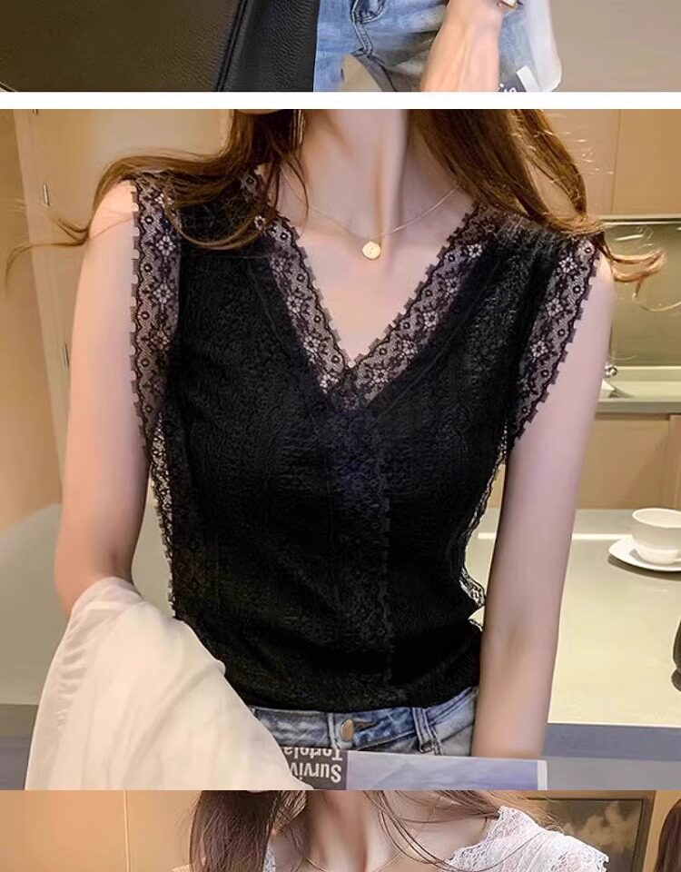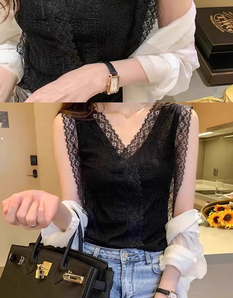 Camisole women's 2025 summer new design lace suit with bottoming shirt temperament French top