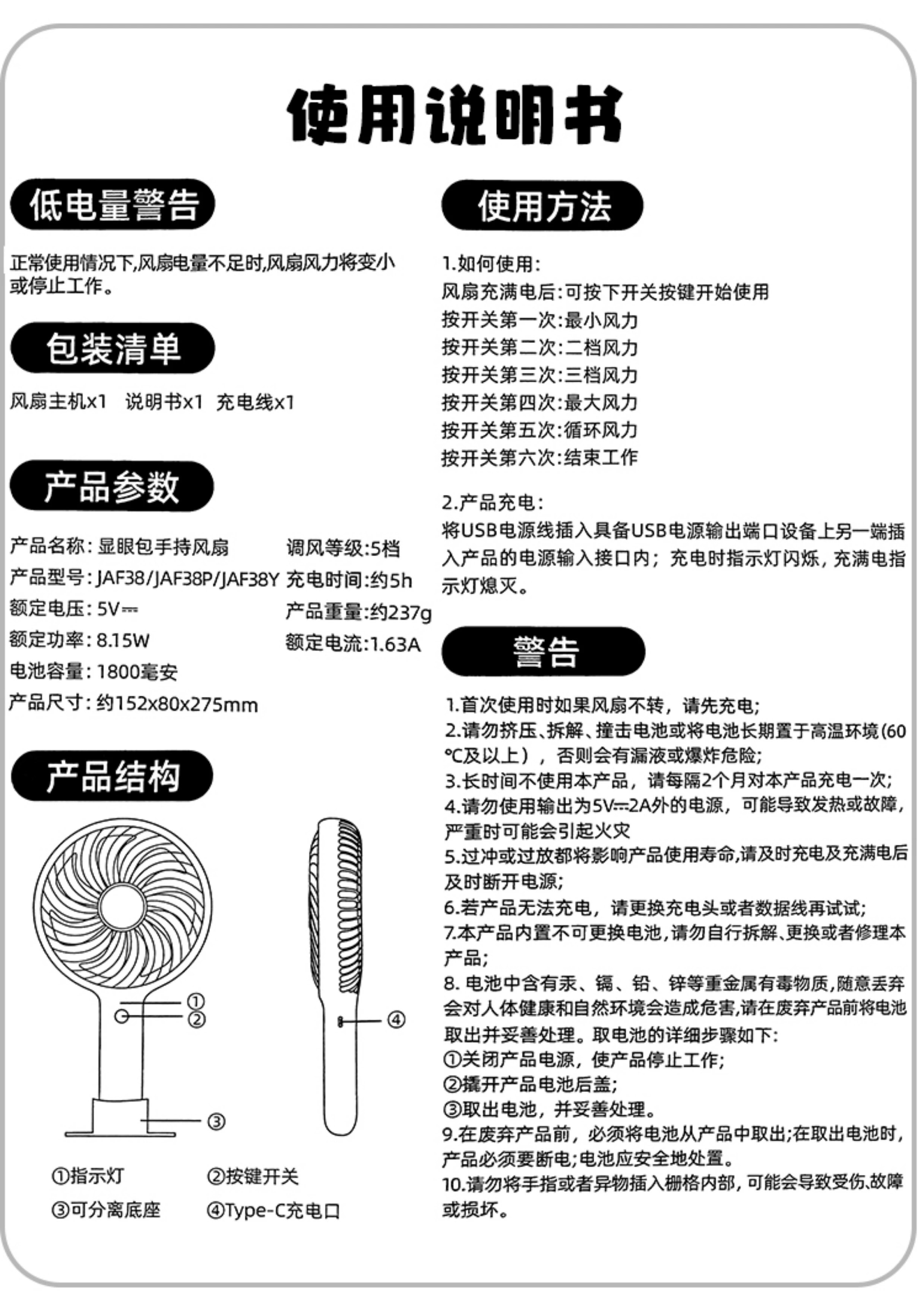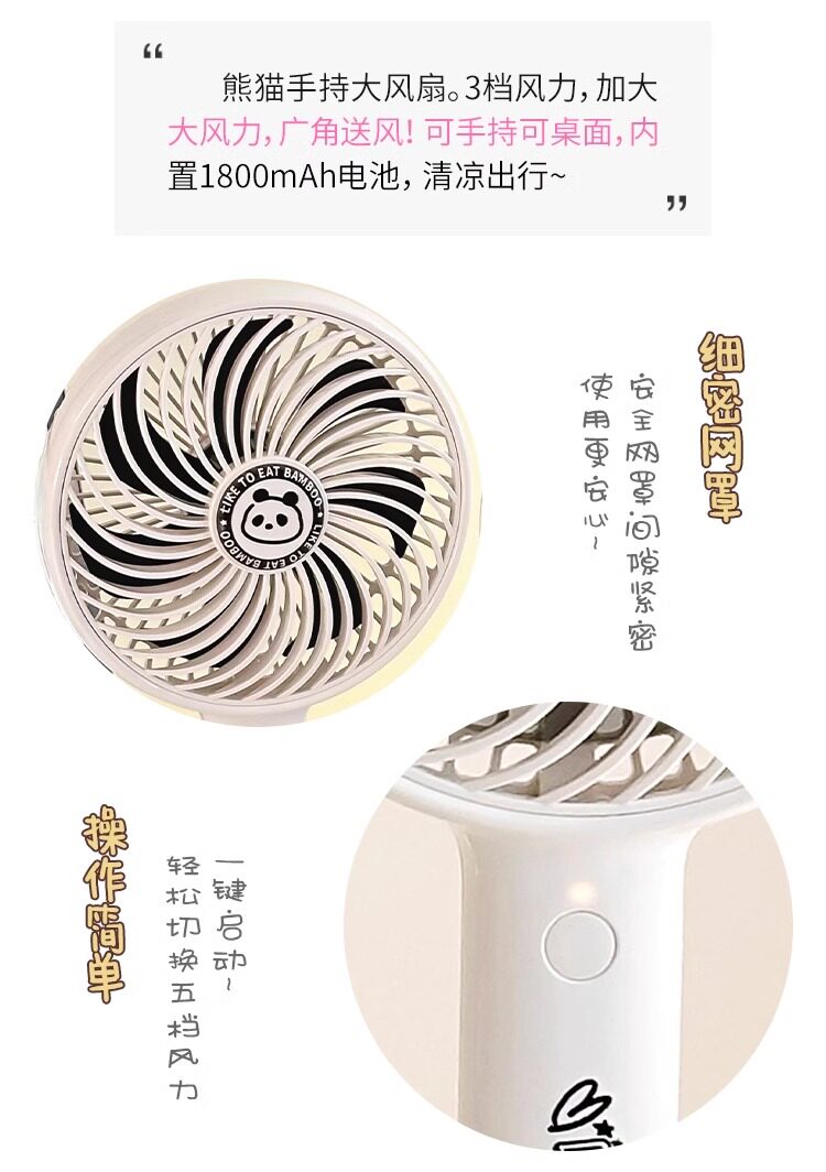 Cute Handheld Small Fan with Strong Wind Power for Student Dormitories, Offices, Desktops, USB Rechargeable Electric Fan