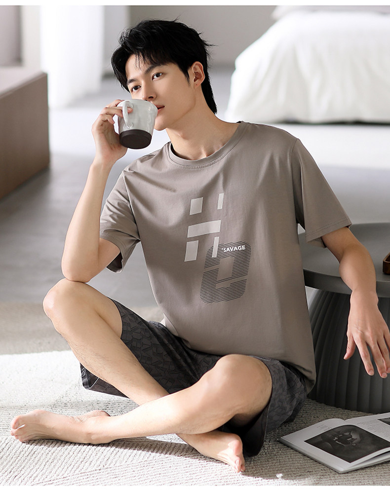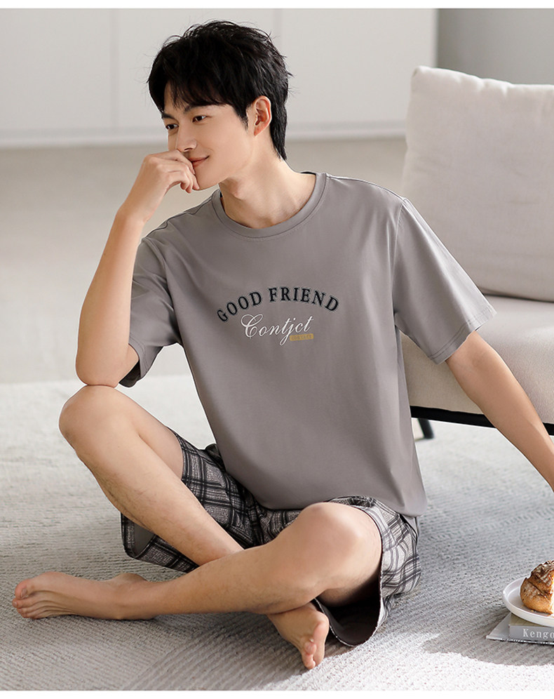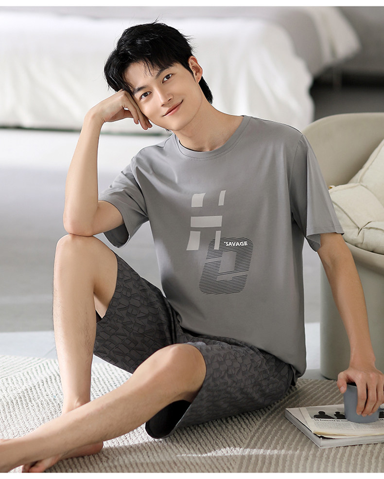 Catman pajamas men's summer men's pure cotton short-sleeved 2025 new summer style straightforward home wear suit summer