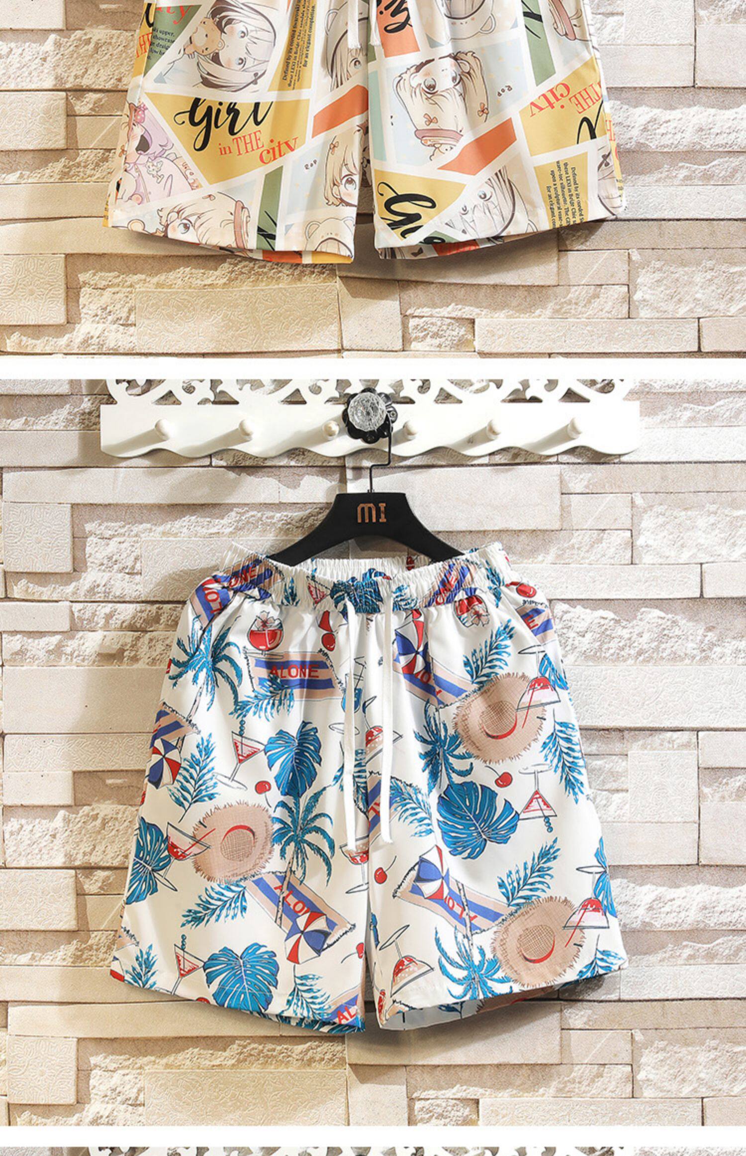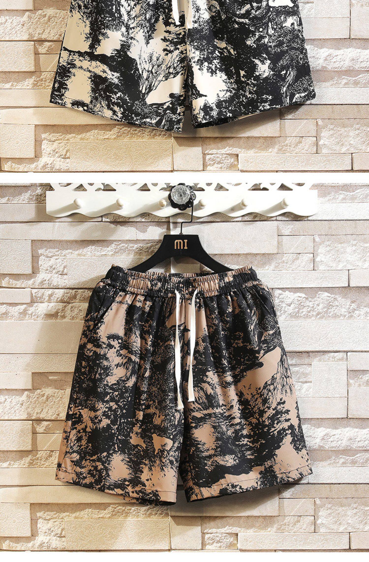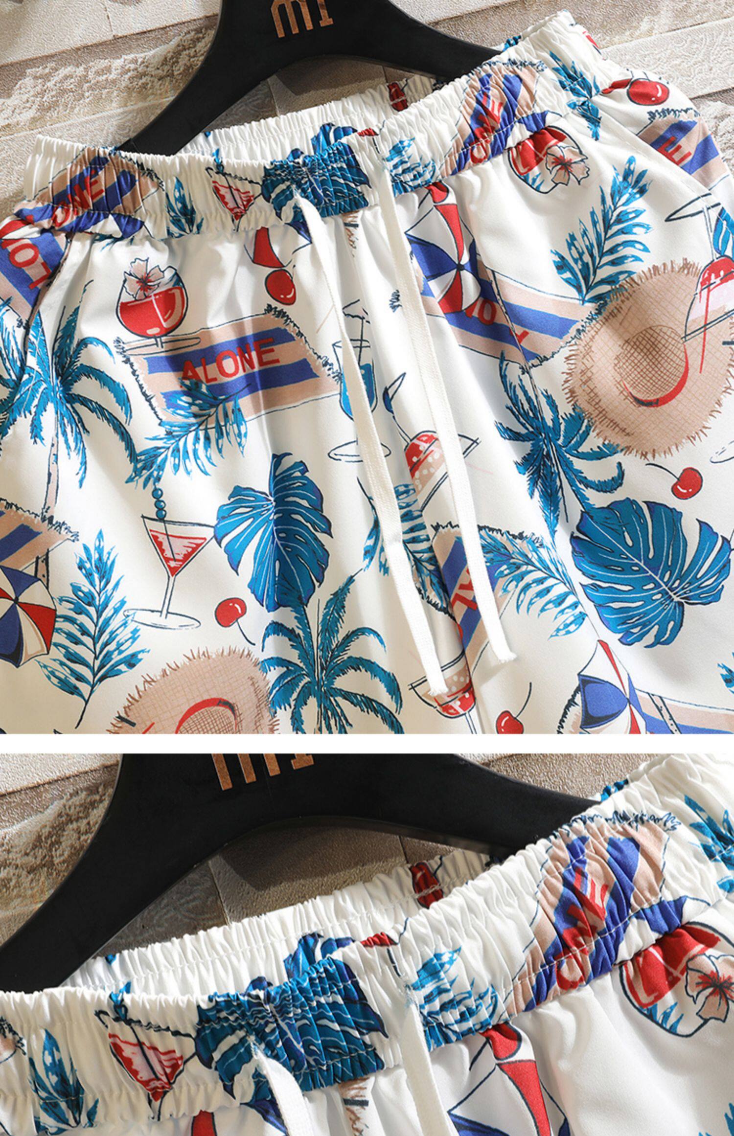 Hawaiian Ice Silk Shorts Men's Summer Thin Trendy Brand Printed Beach Pants Loose Large Size Casual Sports Five-Point Pants