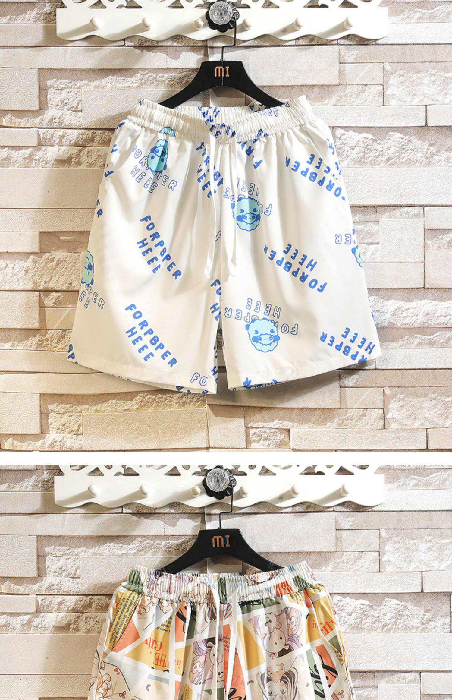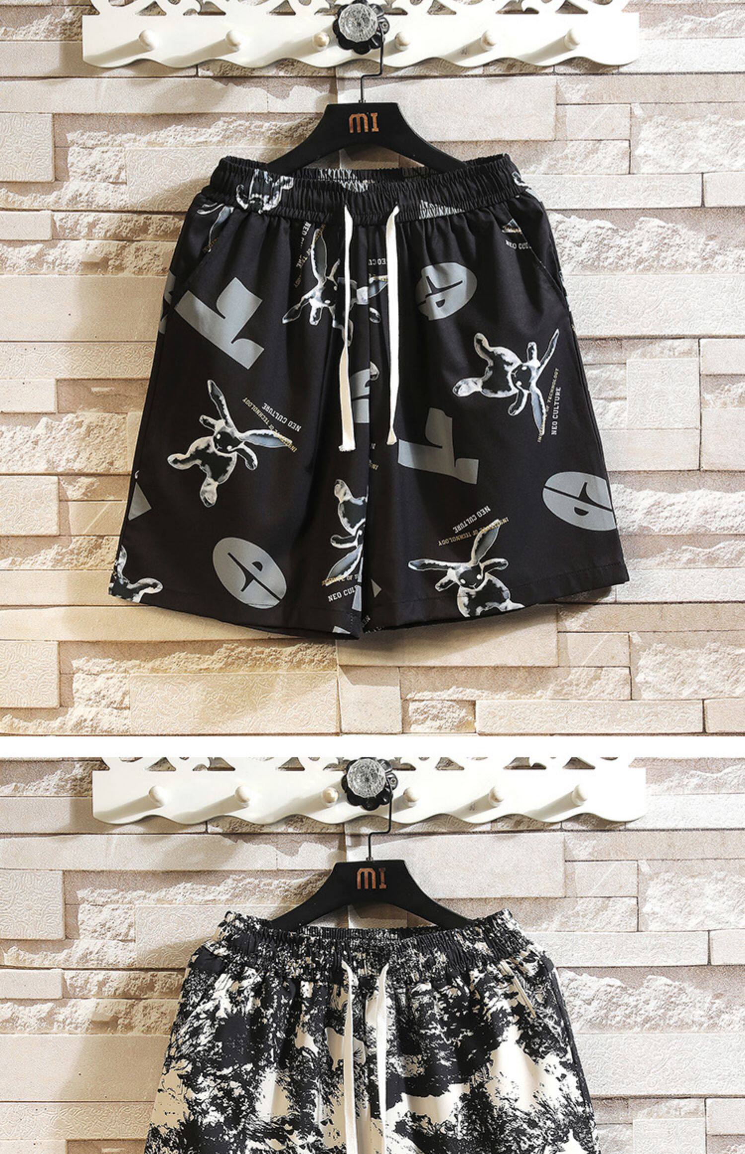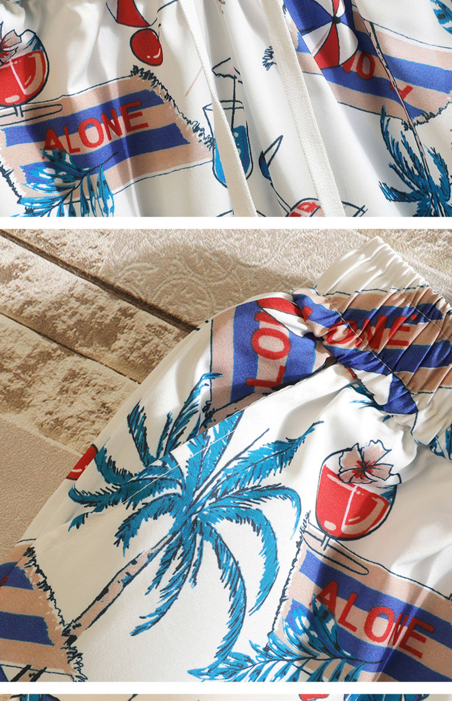 Hawaiian Ice Silk Shorts Men's Summer Thin Trendy Brand Printed Beach Pants Loose Large Size Casual Sports Five-Point Pants