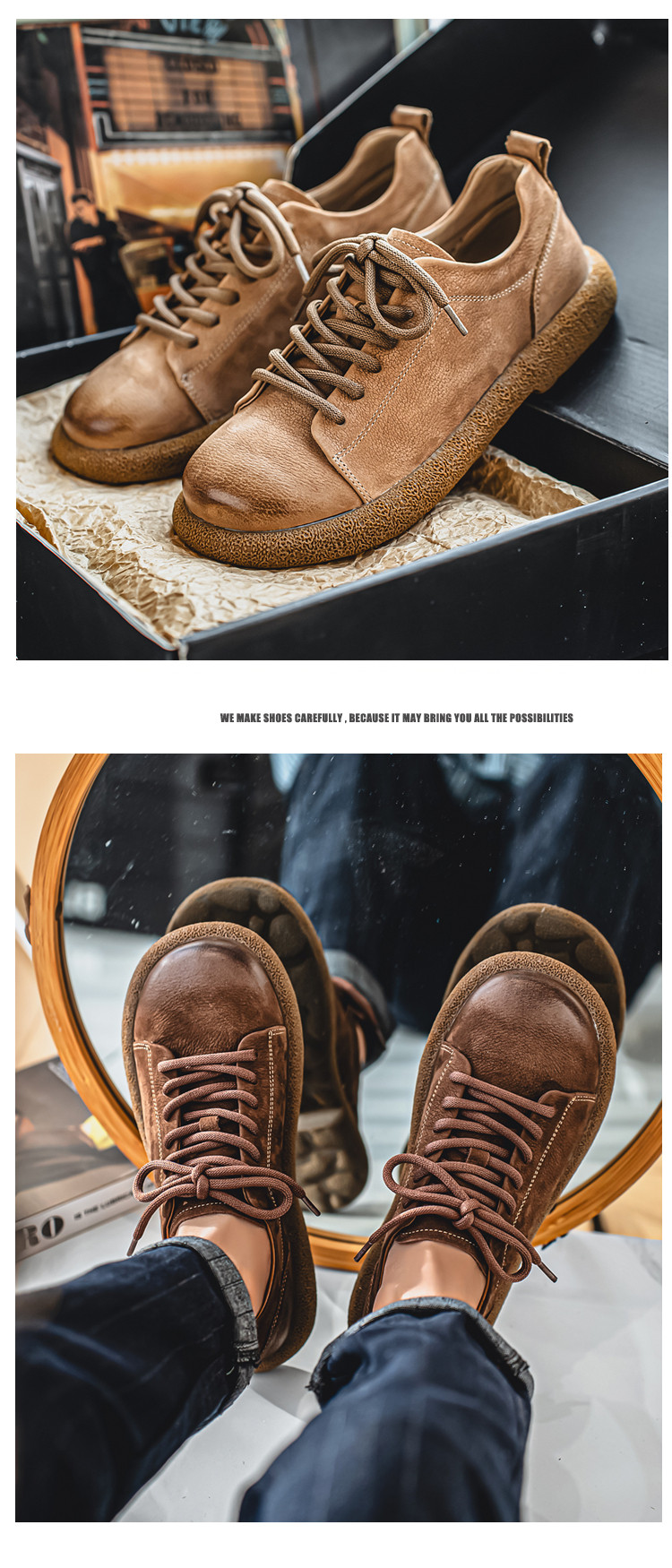 First-Layer Cowhide Men's Shoes, New Winter Style Large Leather Shoes, Genuine Leather, Breathable, Soft-Soled, British-Style Non-Slip Sports and Leisure Shoes