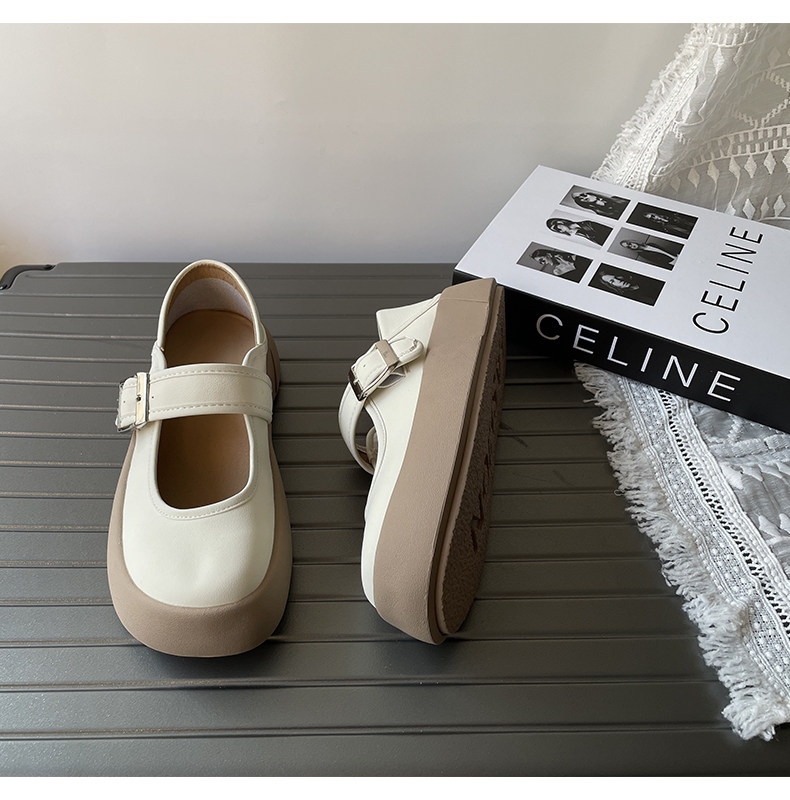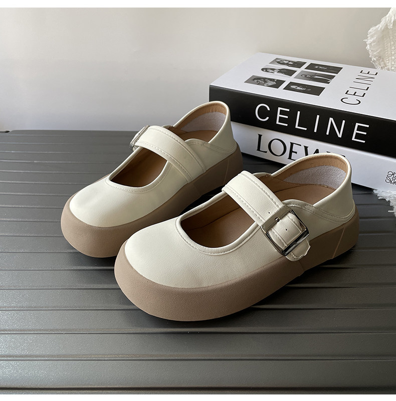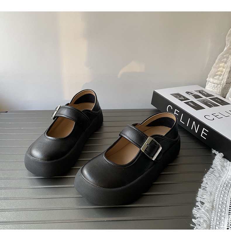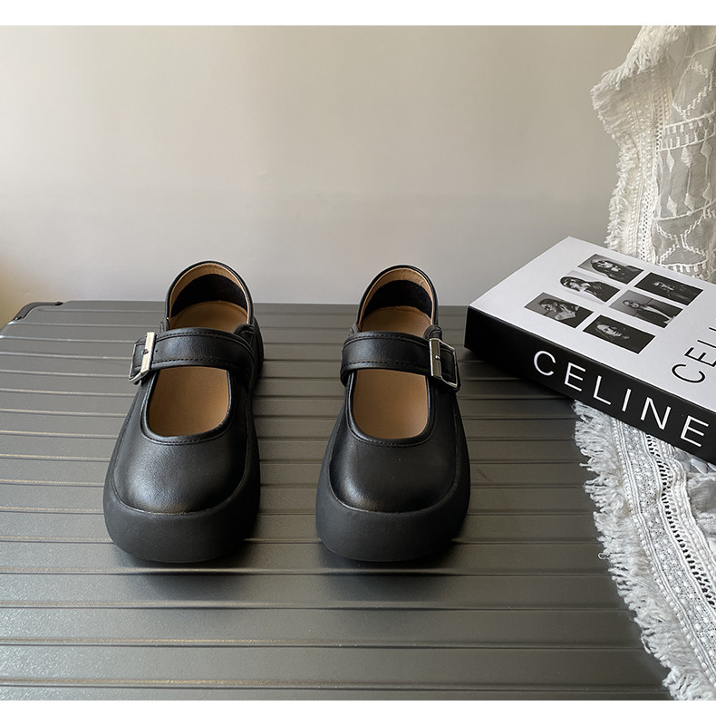 Thick-soled Mary Jane shoes for women 2025 spring new shallow mouth single shoes small leather shoes one-word buckle French big-toe doll shoes