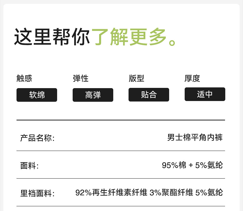 Crotch Material Composition 92% Regenerated Cellulose Fiber, 5% Polyurethane Elastic Fiber (Spandex), 3% Polyester Fiber