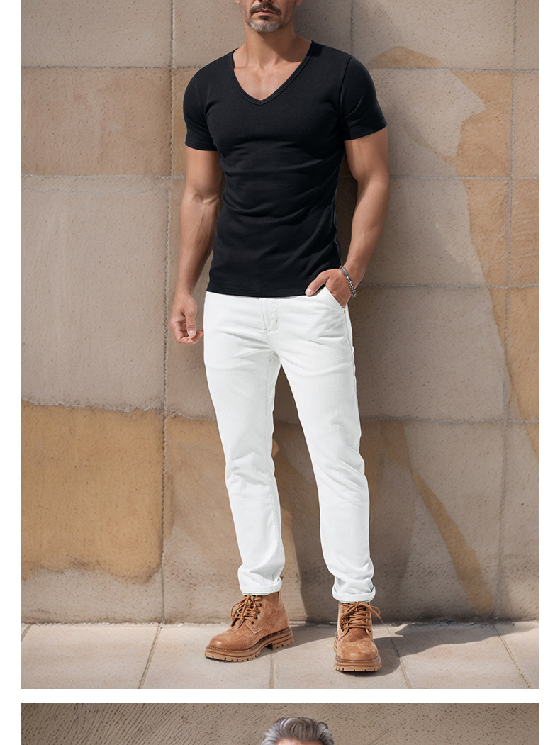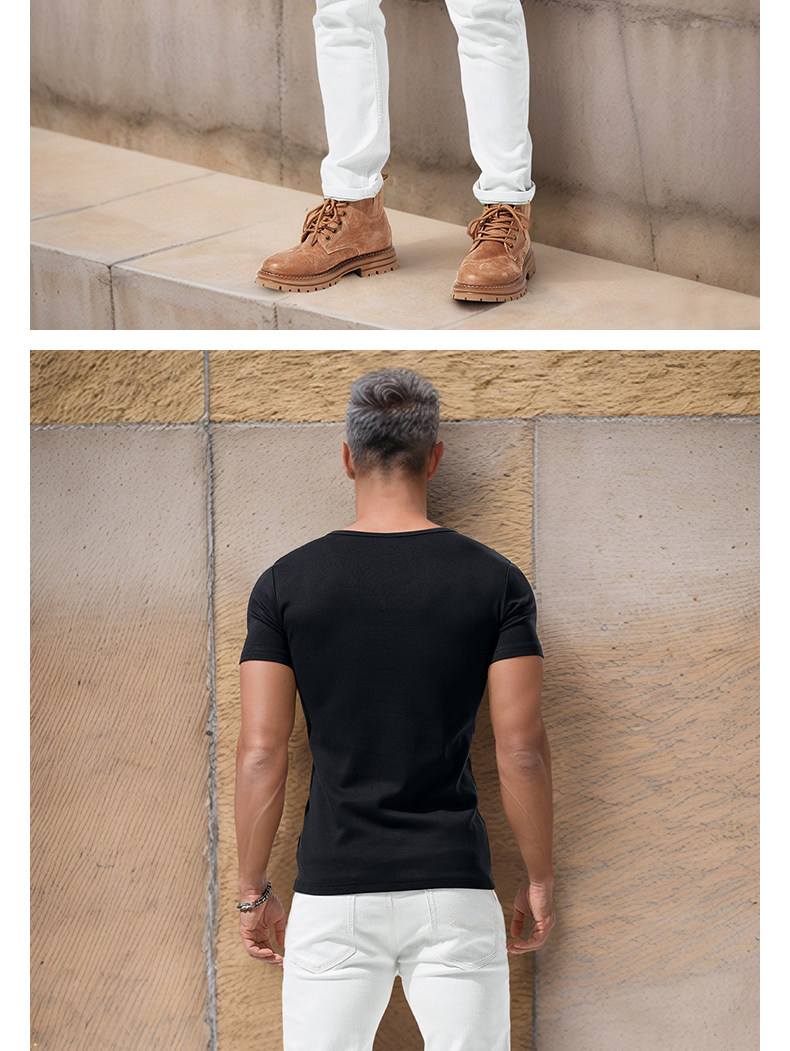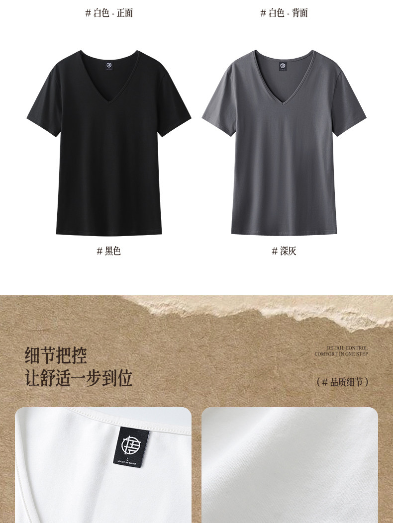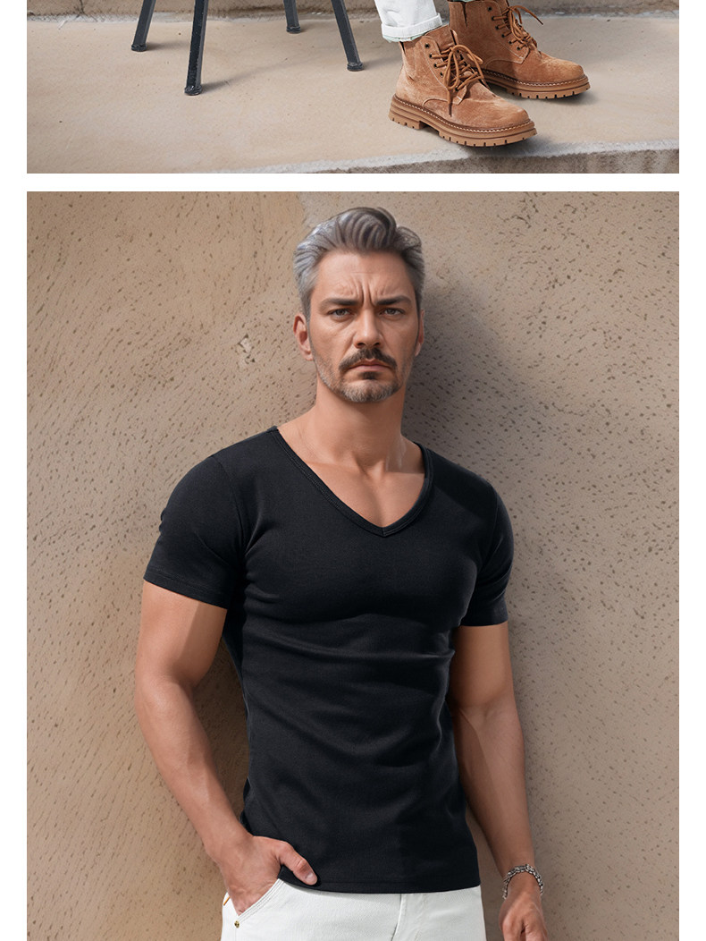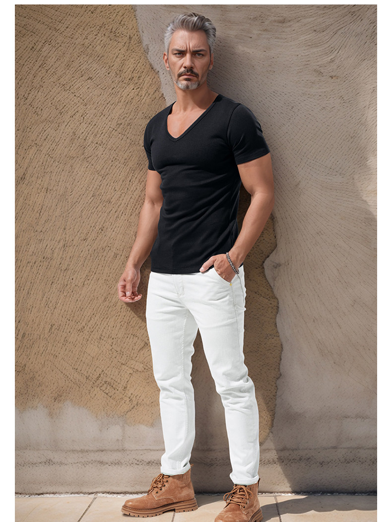 Large V-Neck Short-Sleeved Men's Slim-Fit Solid Color Cotton Summer Sports Casual Deep V Elastic Half-Sleeve T-Shirt Base Shirt