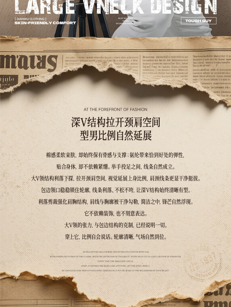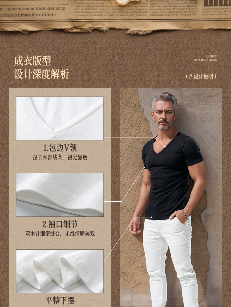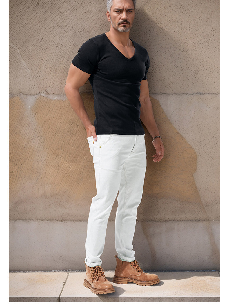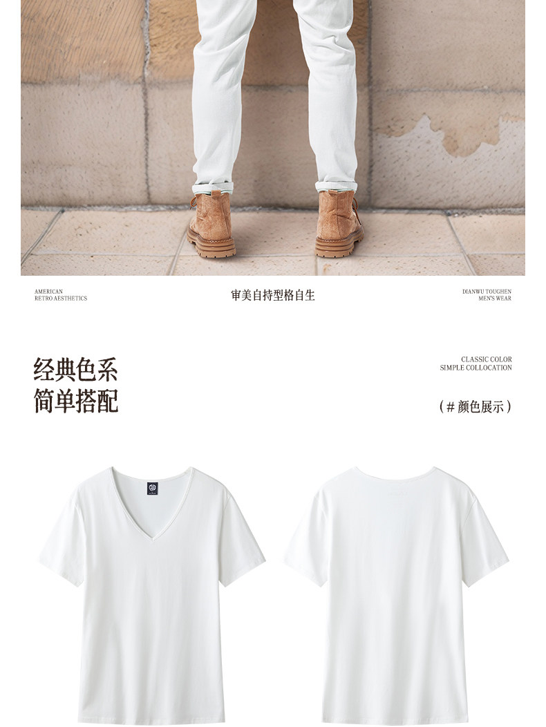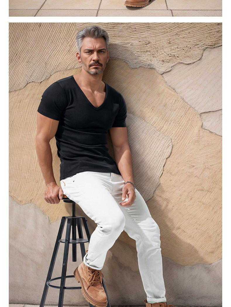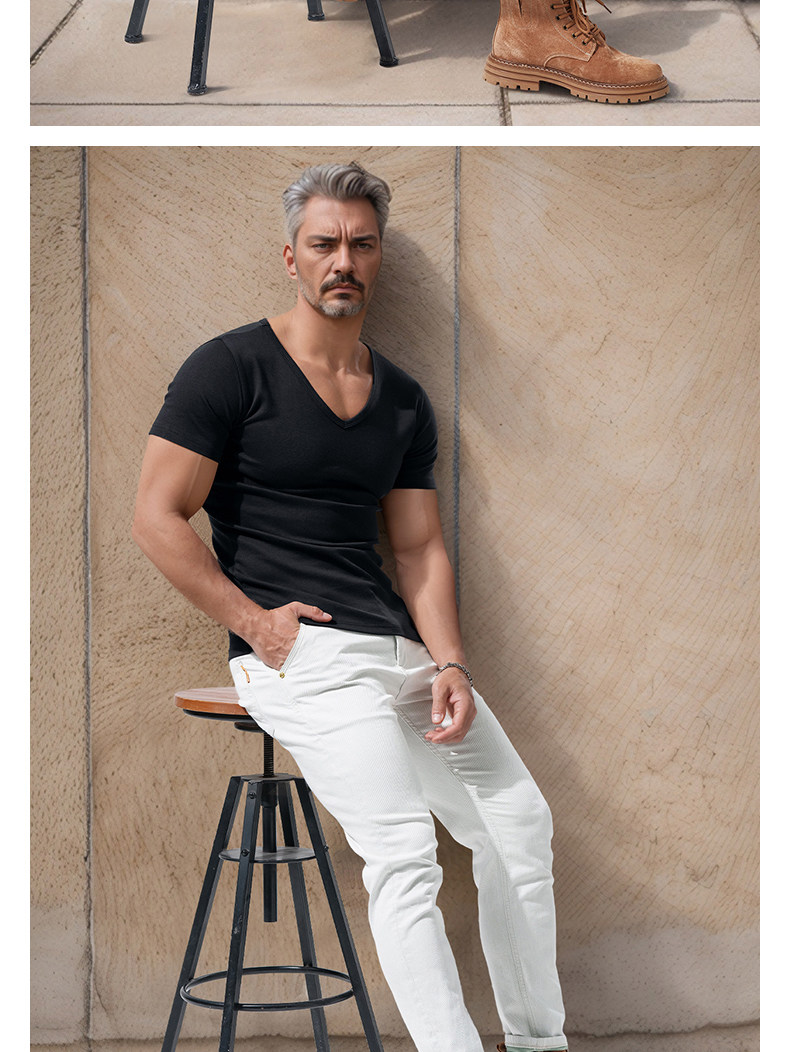 Large V-Neck Short-Sleeved Men's Slim-Fit Solid Color Cotton Summer Sports Casual Deep V Elastic Half-Sleeve T-Shirt Base Shirt