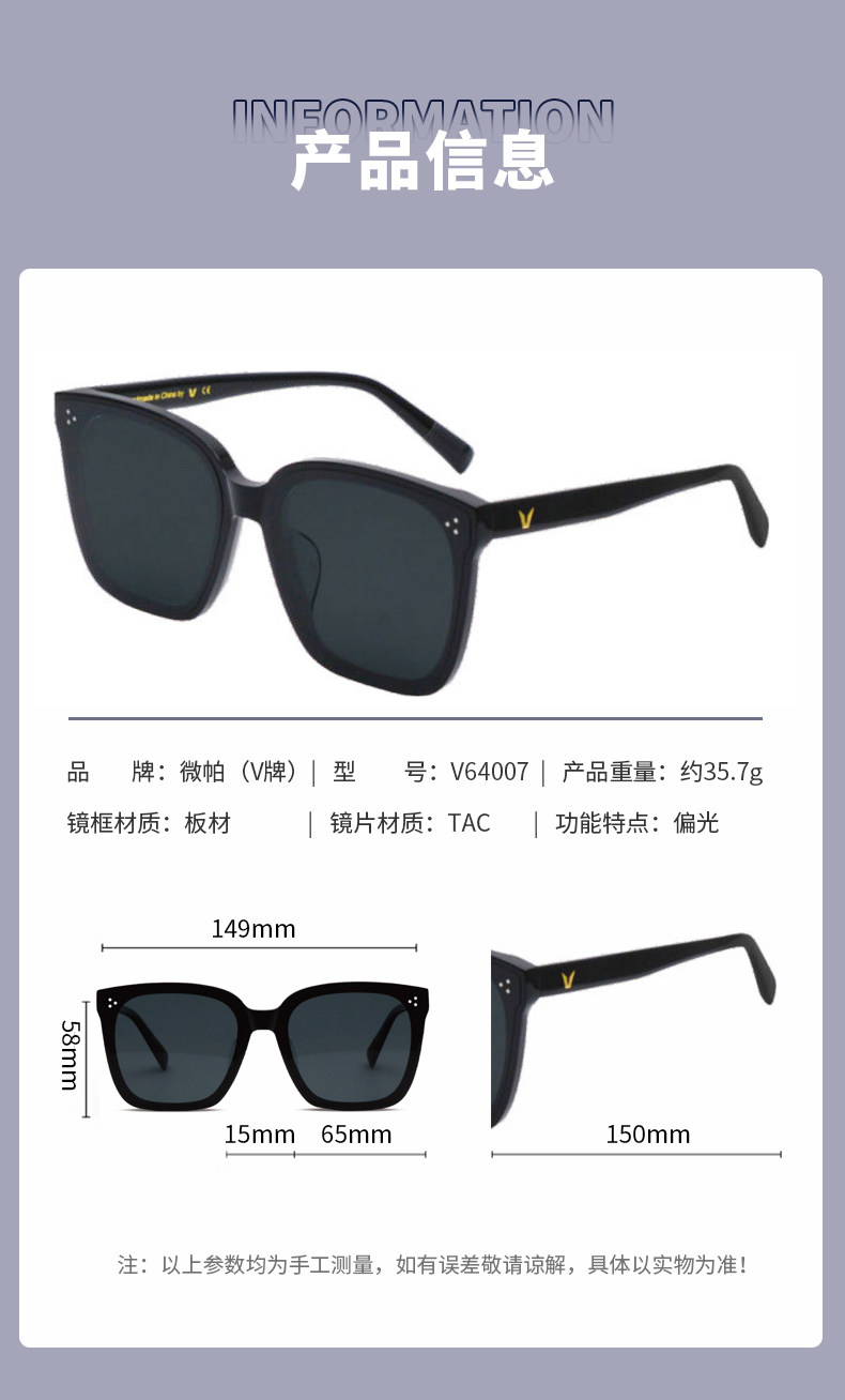 Micropa's New Fashionable Sunglasses, High-End Korean Style Large Frame, Face-Showing, Small Anti-Uv Driving Polarized Sunglasses