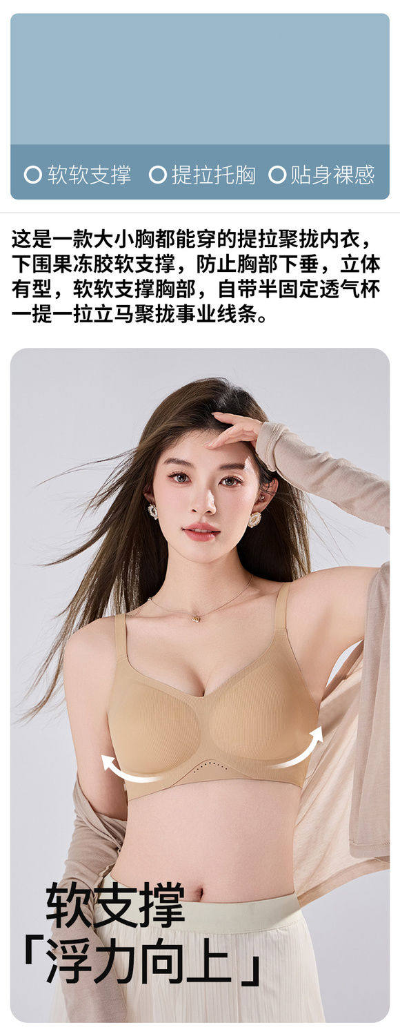 Lifting anti-gravity big breasts to reveal smaller jelly soft support underwear women's comfortable push-up lifting bra without wire rings
