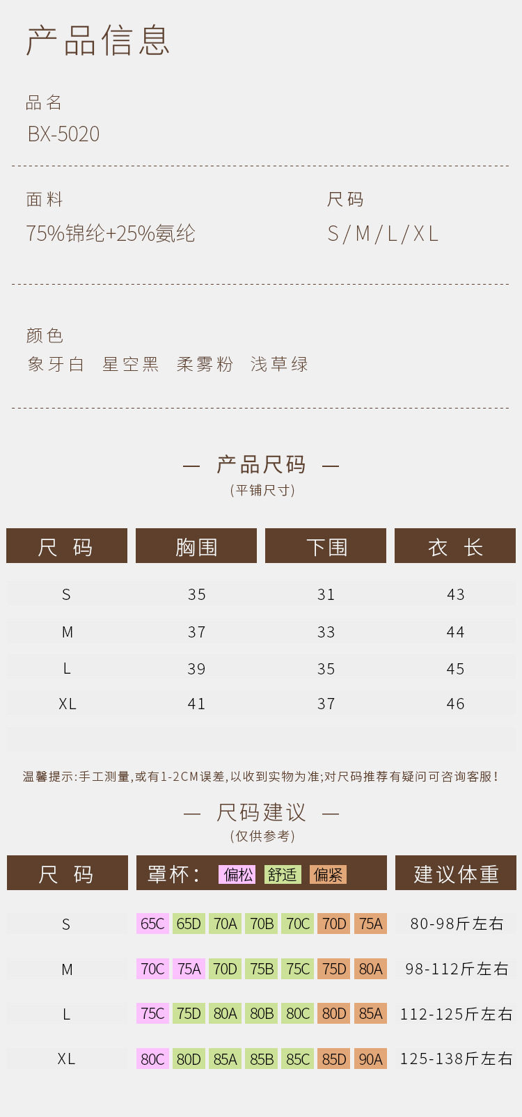 China (cm) 160-165/84-86 165-170 / 88-90 167-172 / 92-96 168-173 / 98-102 170-176 / 106-110