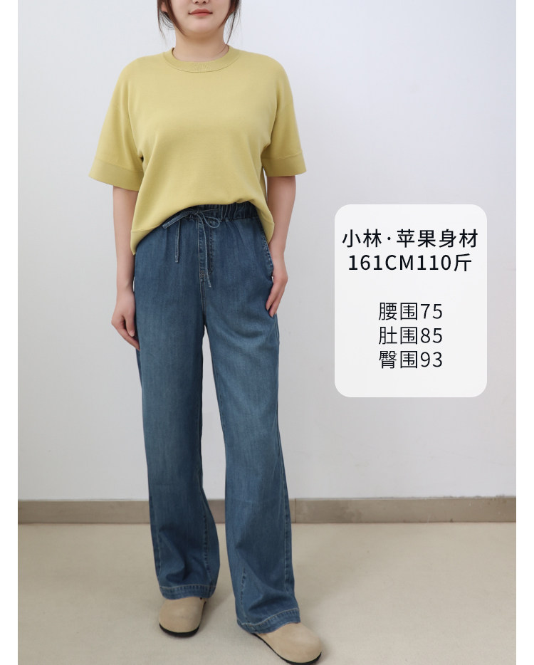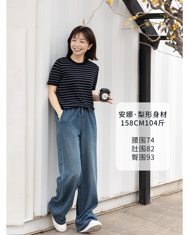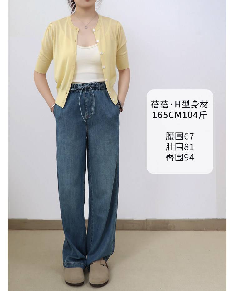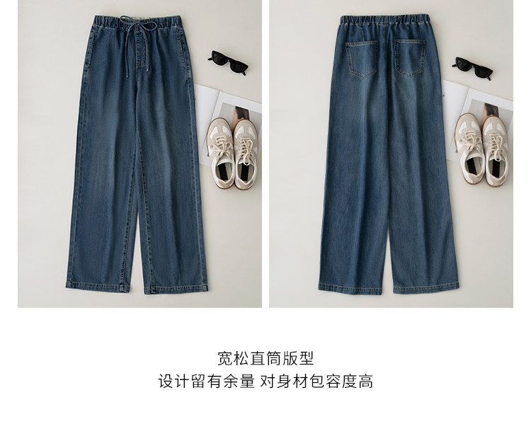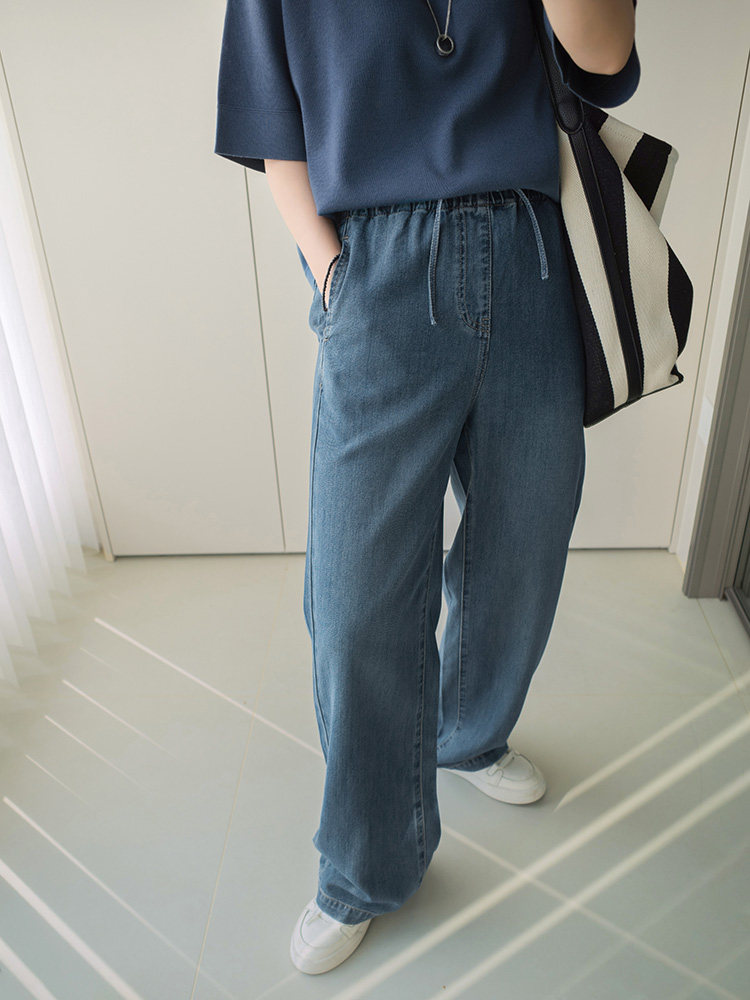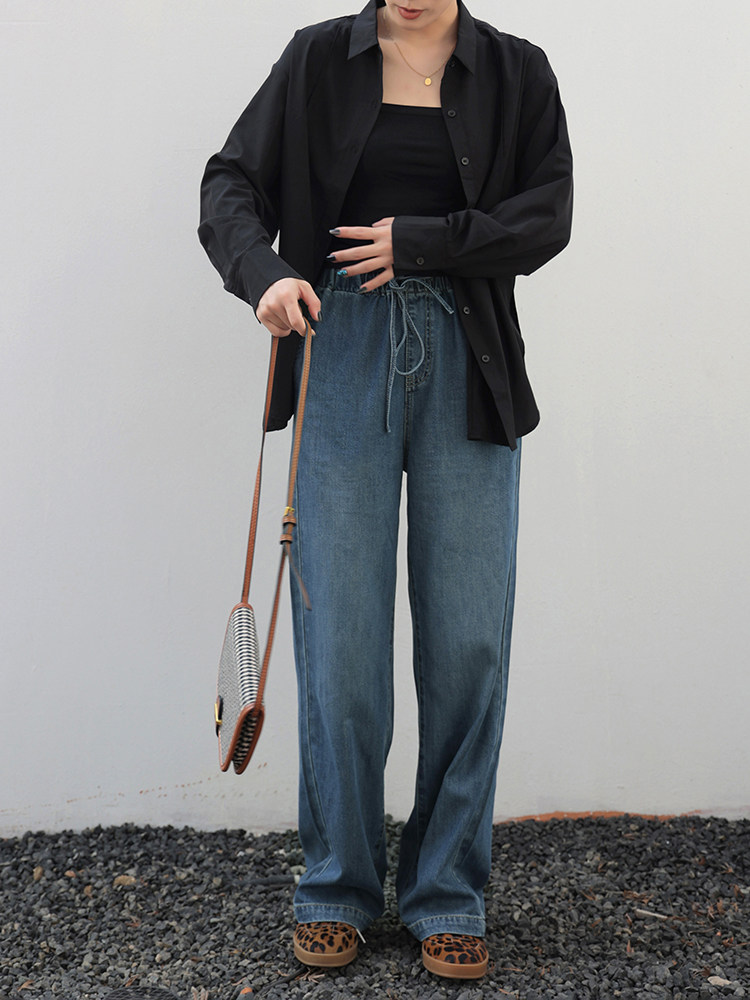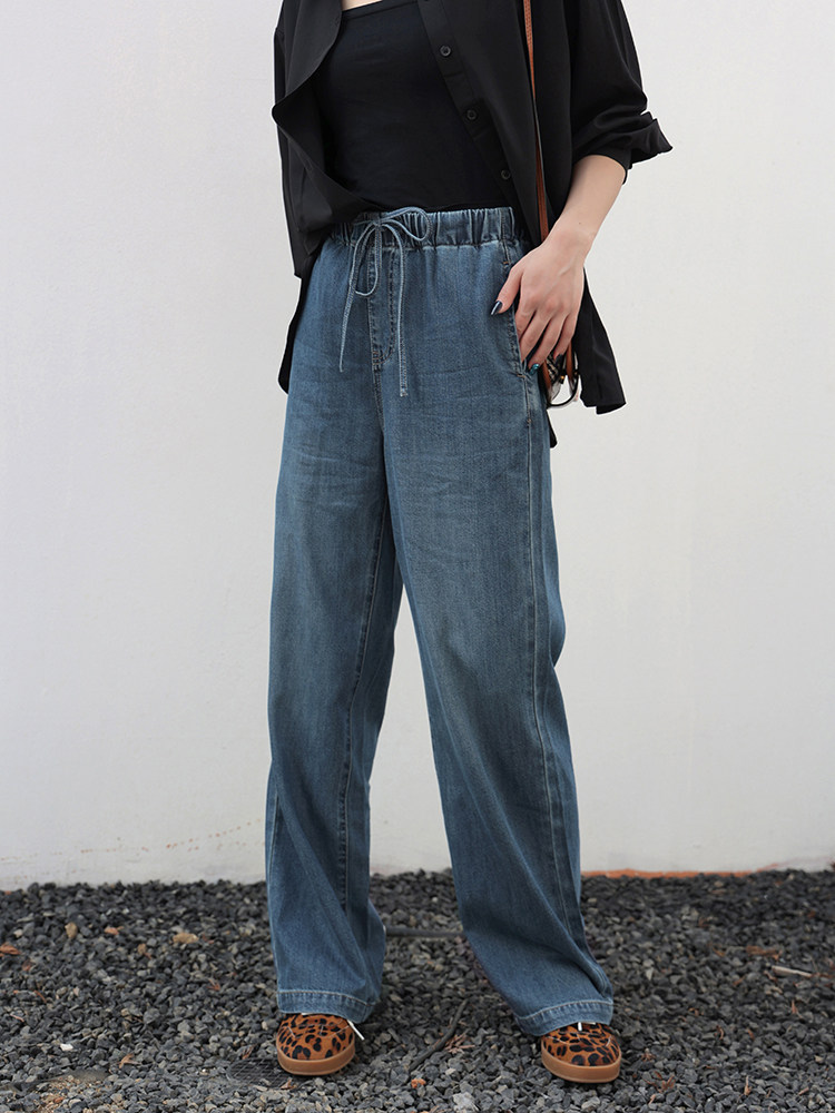 Anna Is a Straightforward Protagonist. Lyocell Drapey Elastic Waist Tie-Up Floor-Length Straight-Leg Jeans for Women, Versatile for Summer