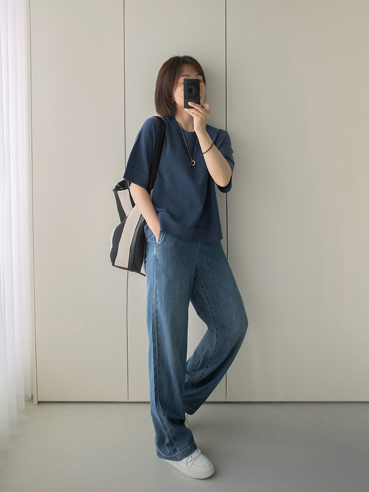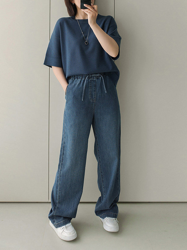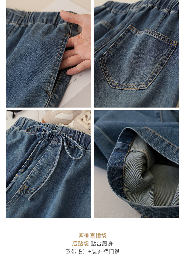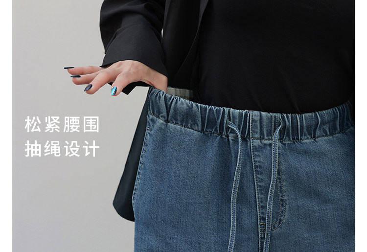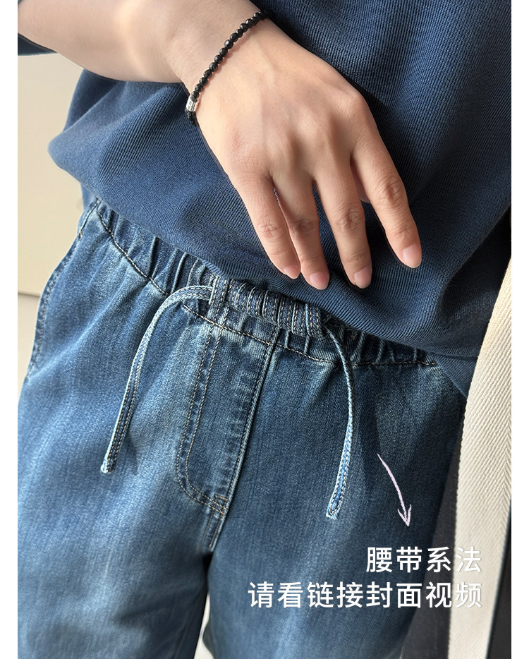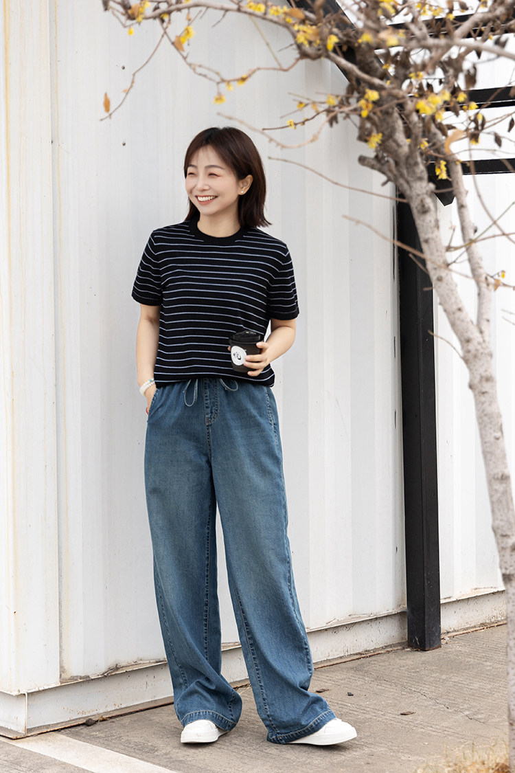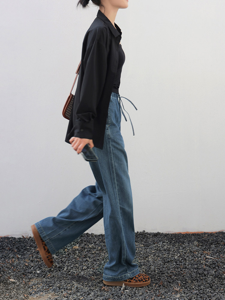 Anna Is a Straightforward Protagonist. Lyocell Drapey Elastic Waist Tie-Up Floor-Length Straight-Leg Jeans for Women, Versatile for Summer