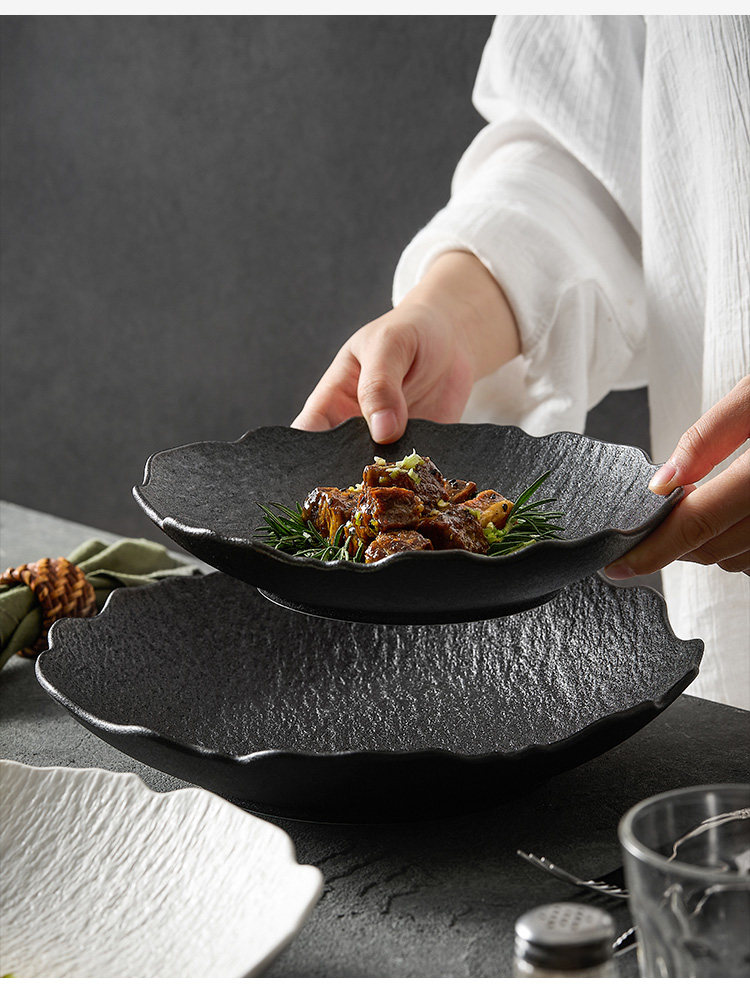 Sort by color 9 inch rock shaped soup plate plain white,11-inch rock special-shaped soup plate plain white,9-inch rock special-shaped soup plate matte black..,9 inch rock shaped soup plate matte black,11-inch rock special-shaped soup plate matte black