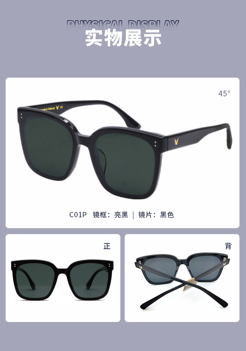 Micropa New Fashion Simple Sunglasses Anti-Uv Rivets Large Square Frame Plate Polarized Driving Sunglasses