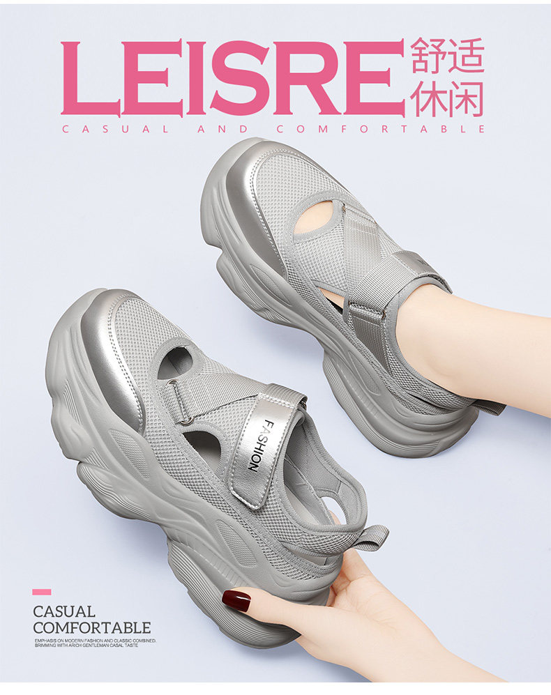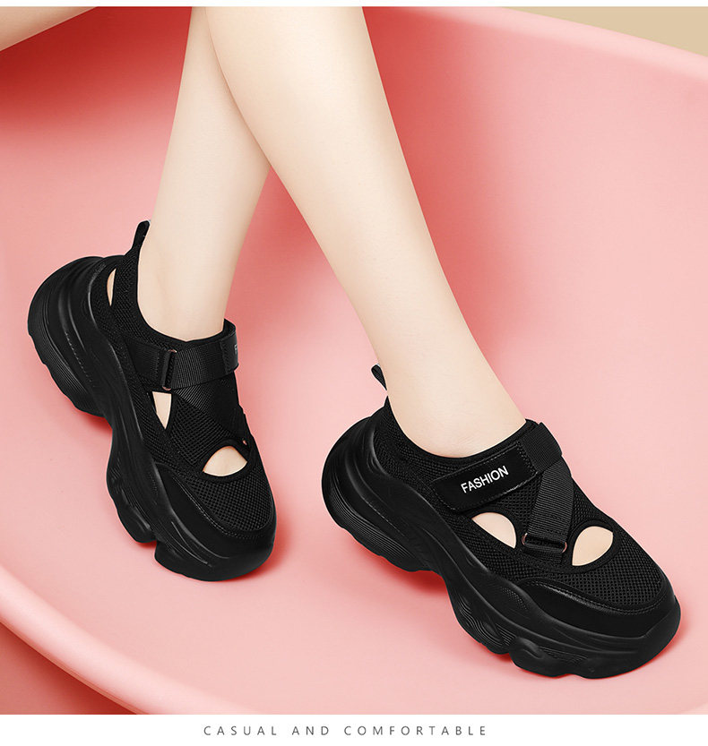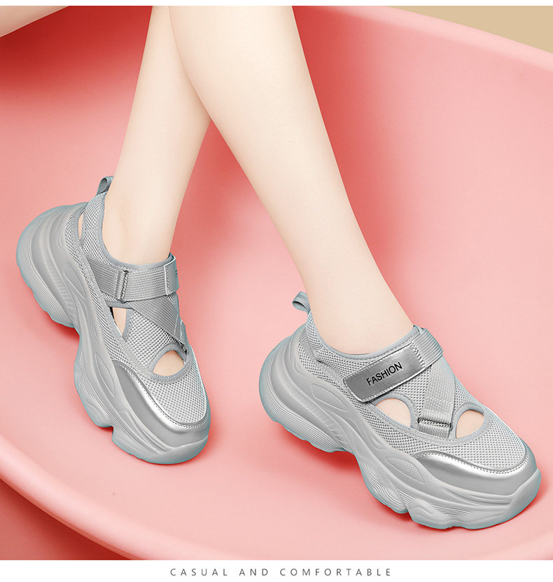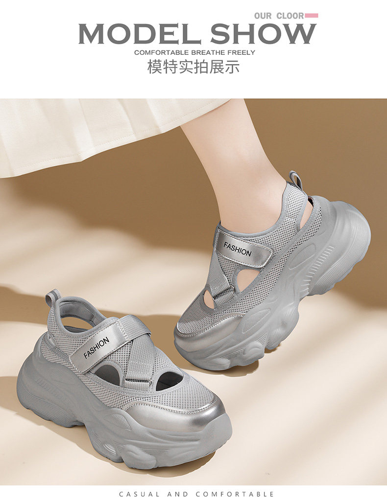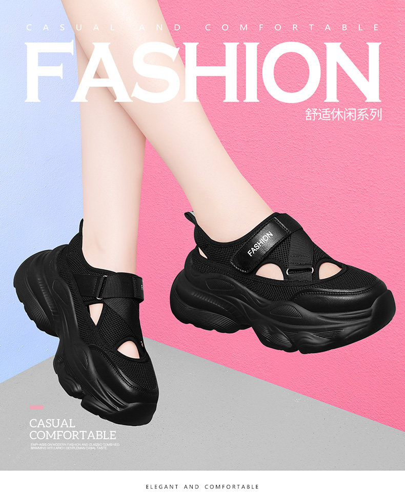 Hollow-Out Dad Shoes for Women 2026 New Summer Shoes Mesh Breathable Sports Sandals Thick-Soled Height-Increasing Perforated Women's Shoes