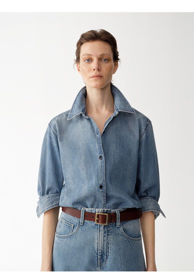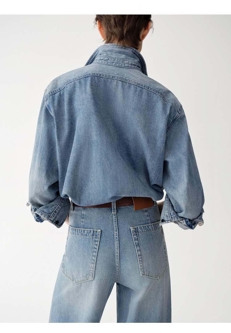 Edition Denim Shirt Women 2025 Summer New Silk Cotton Blue Vintage Denim Jacket Ebe2Jkt002
