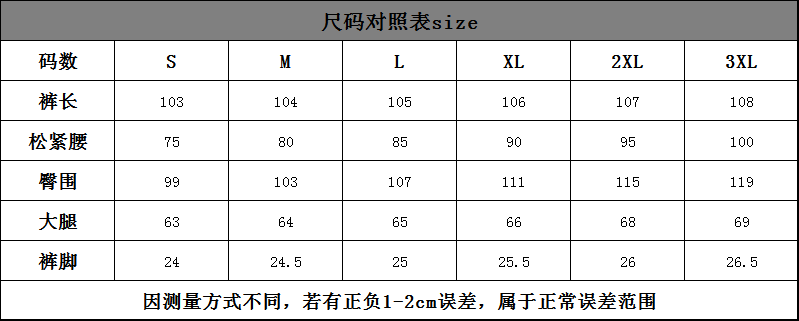 Outseam (cm) 99 cm 101.5 cm 104 cm 106.5 cm 109 cm