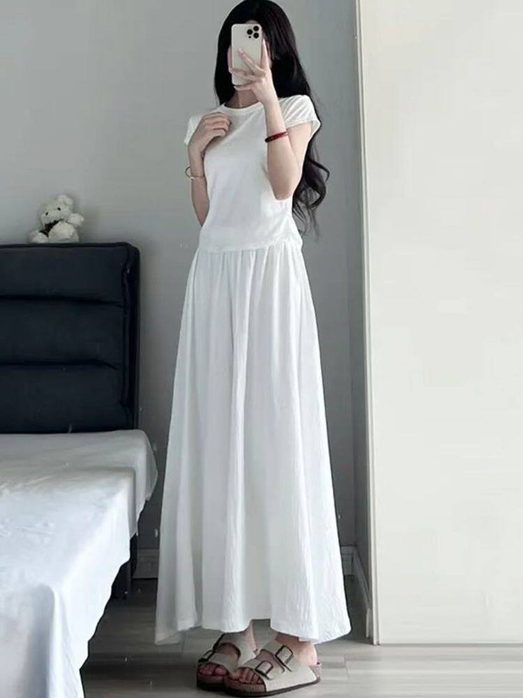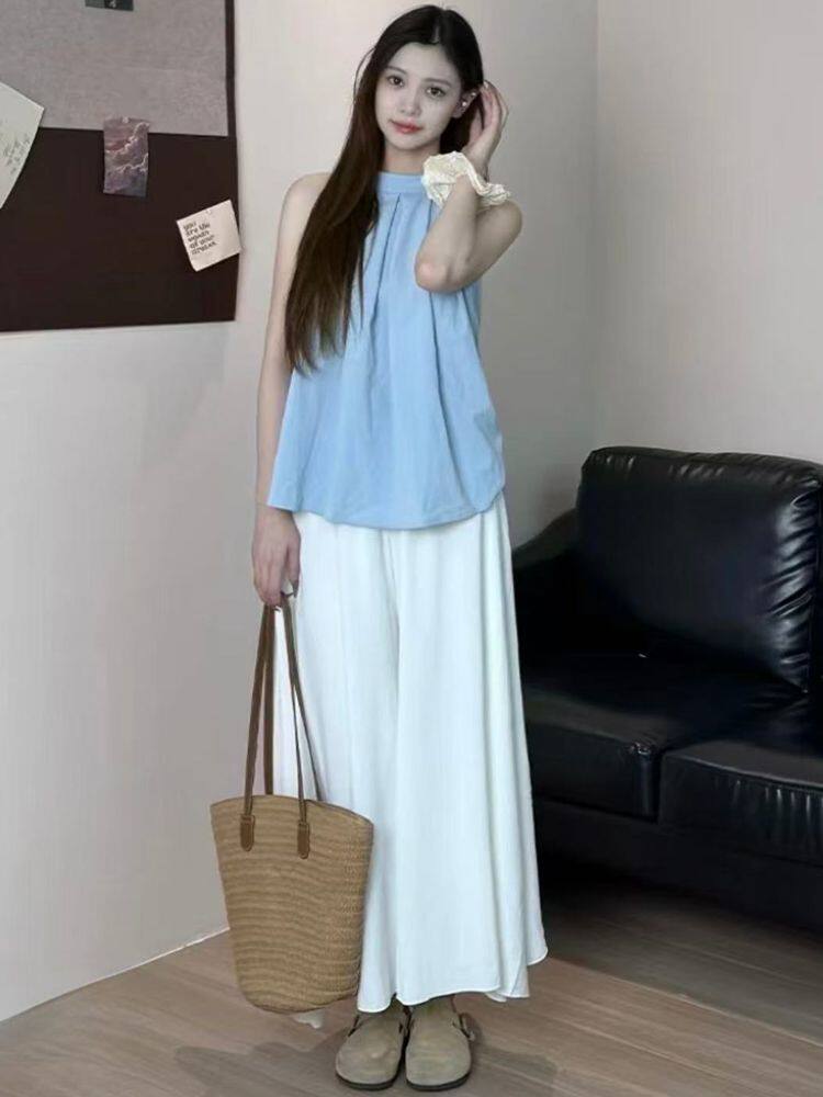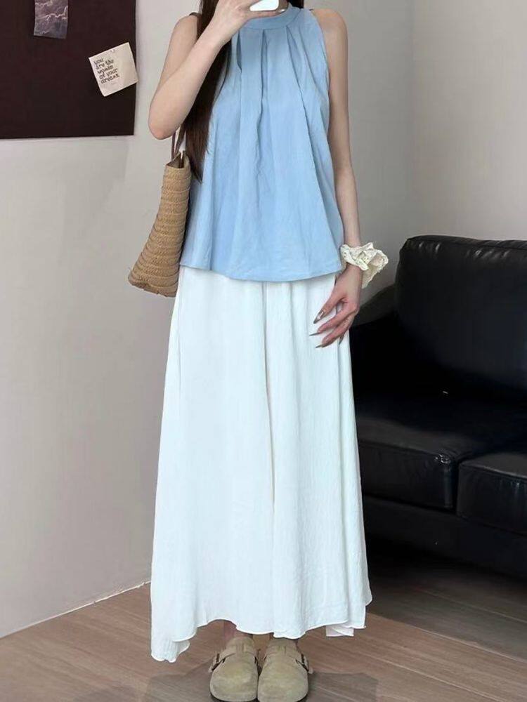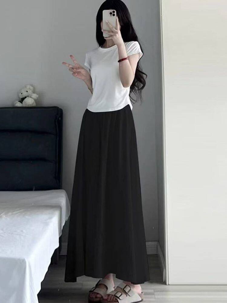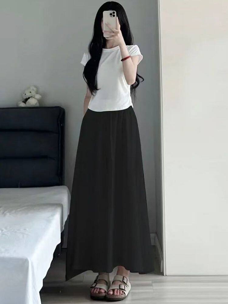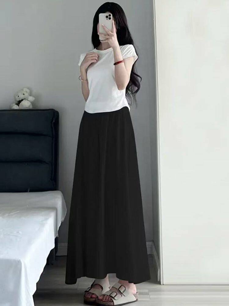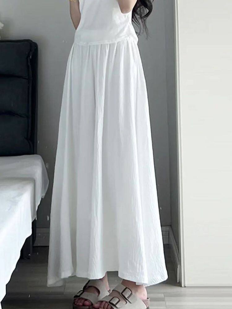 Summer Ice Silk Skirt Off-White 2025 New Pleated Skirt Pants Women's Summer Thin High-Waisted Wide-Leg Pants Skirt