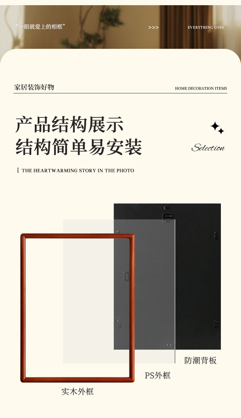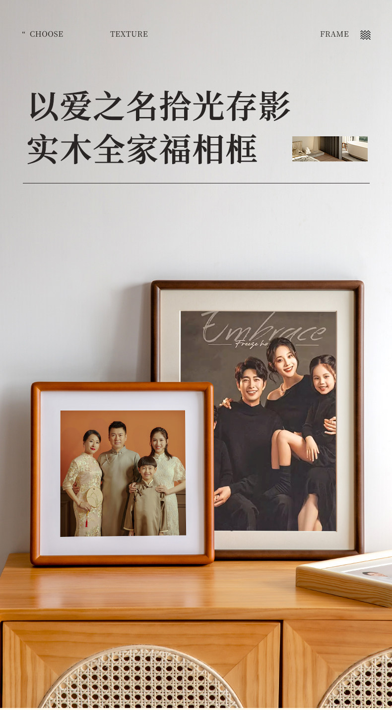 Family Photo Frame, High-End Solid Wood Rounded Corner Picture Frame for Framing A4 Washed Photos, Wall Hanging, 8inch Stand for Enlarged Group Photos