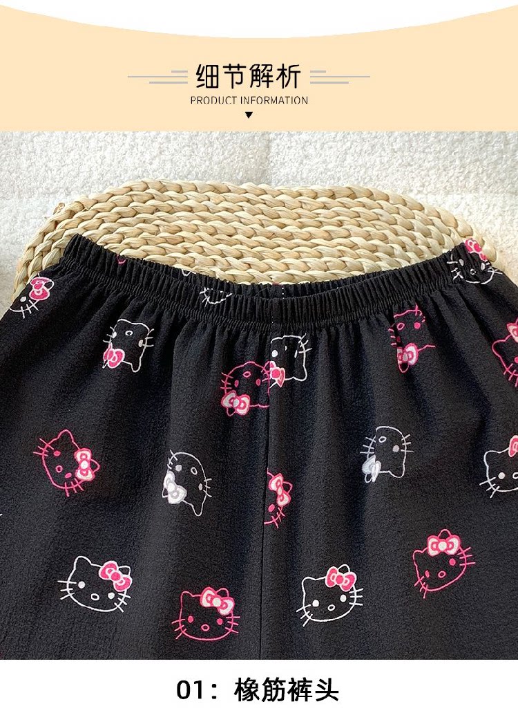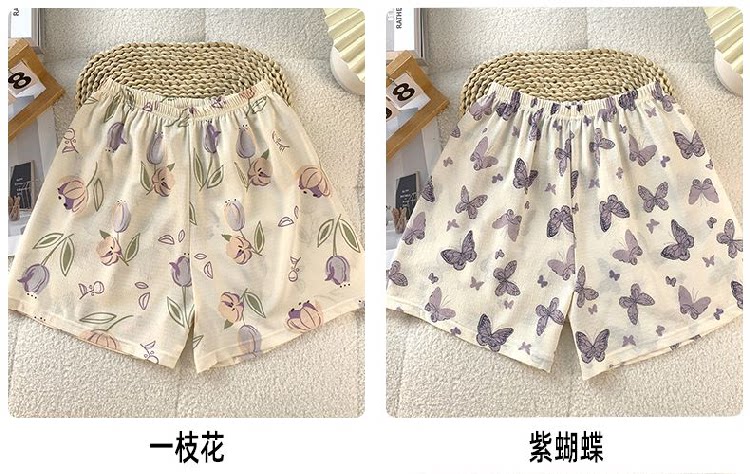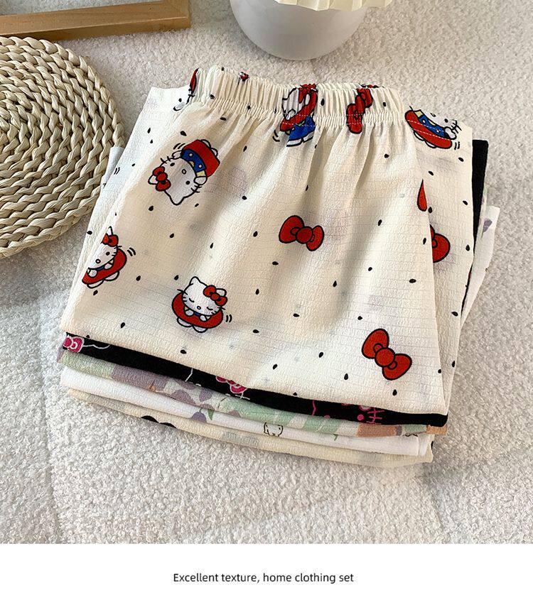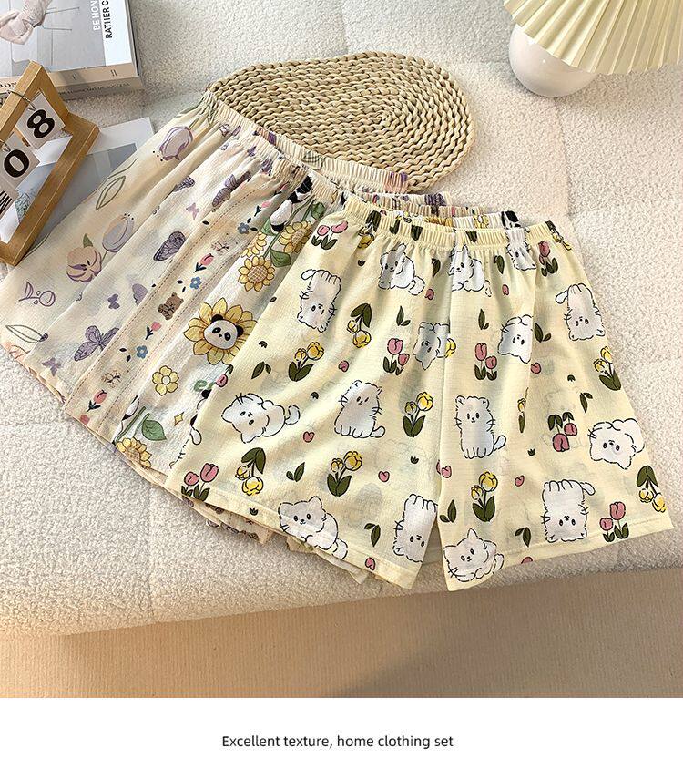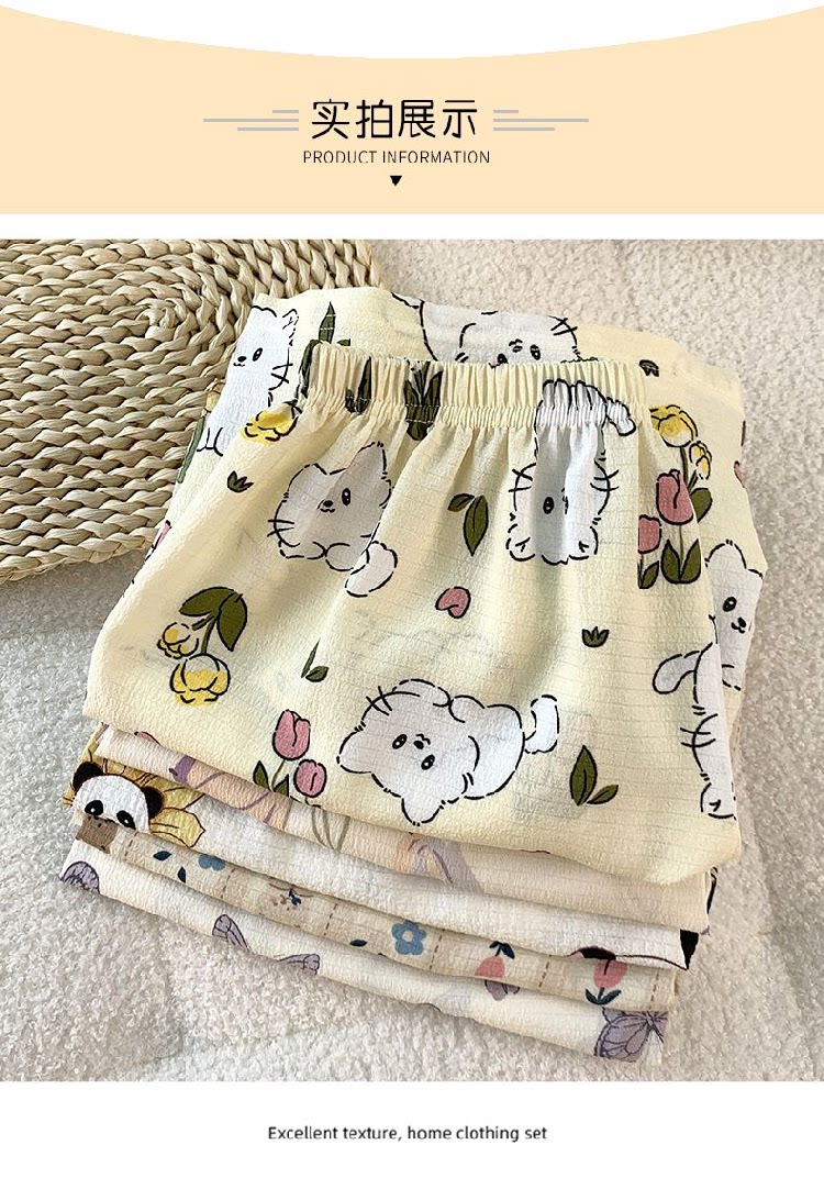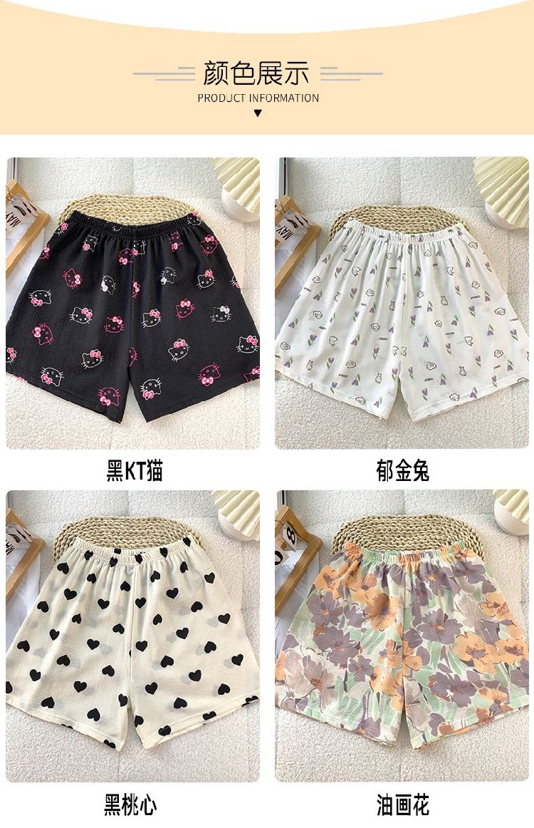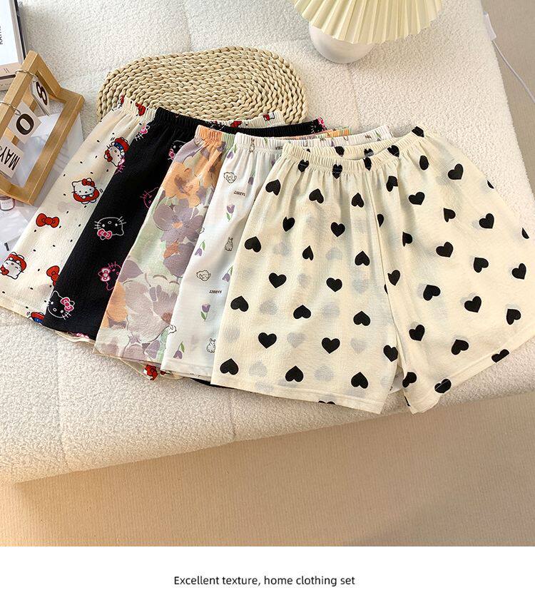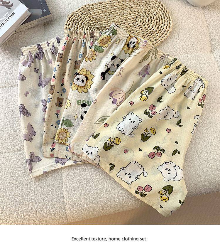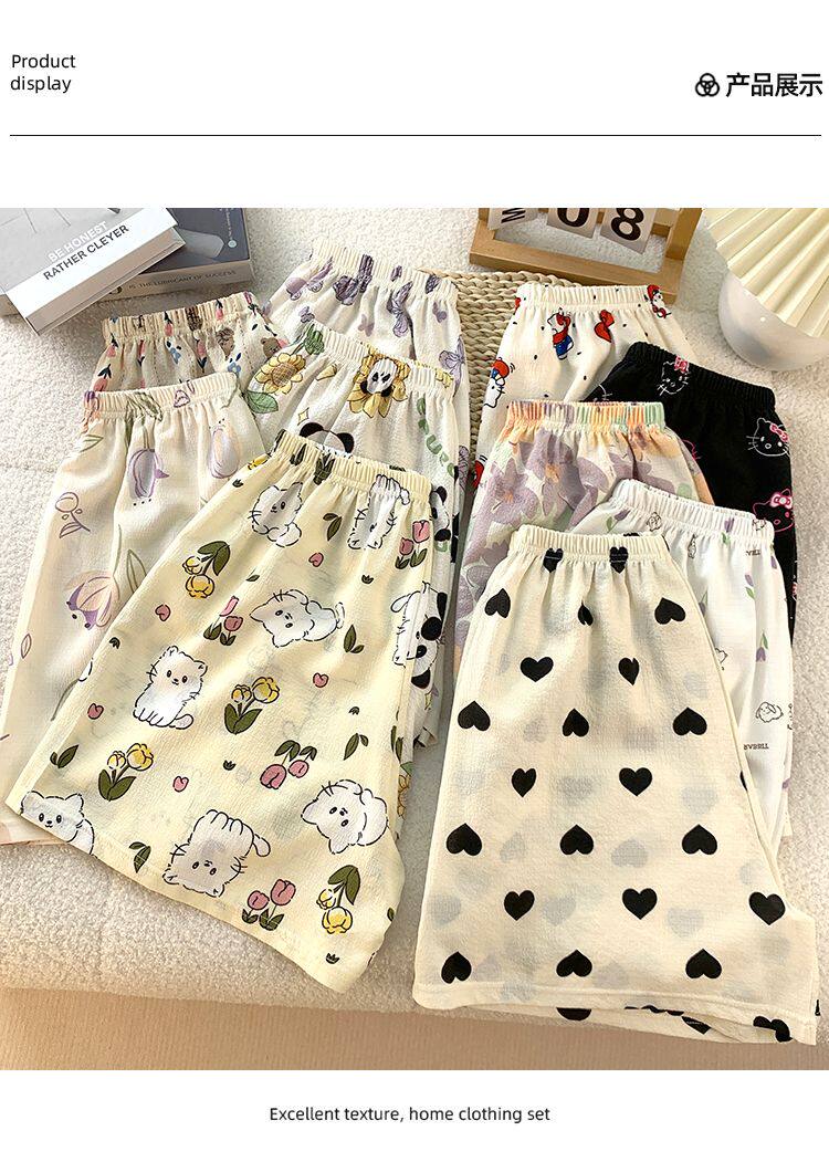 Bubble Cotton Pajama Shorts for Women, Summer Cartoon Plus Size 100kg Wide-Leg Pants, Thin Summer Casual Home Pants