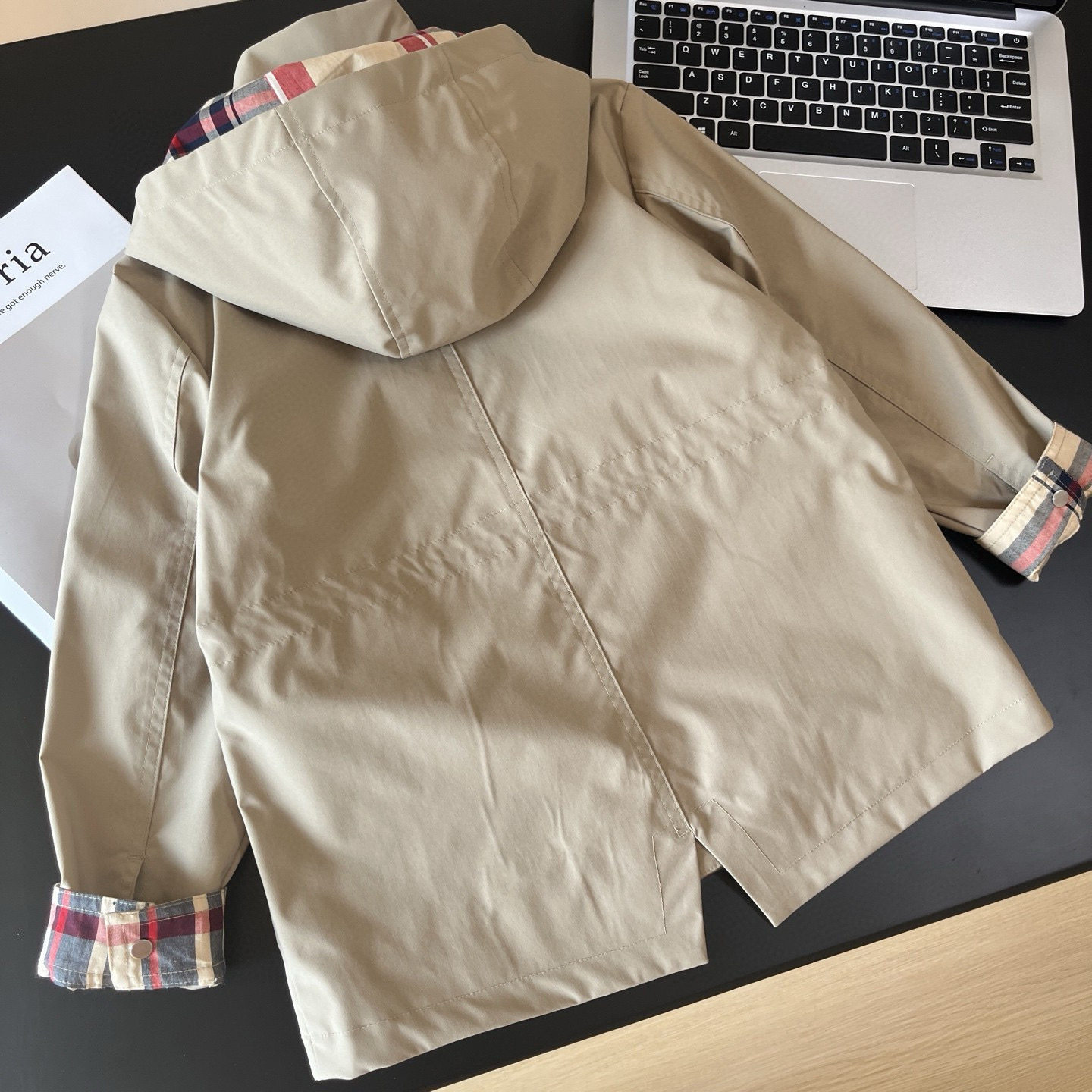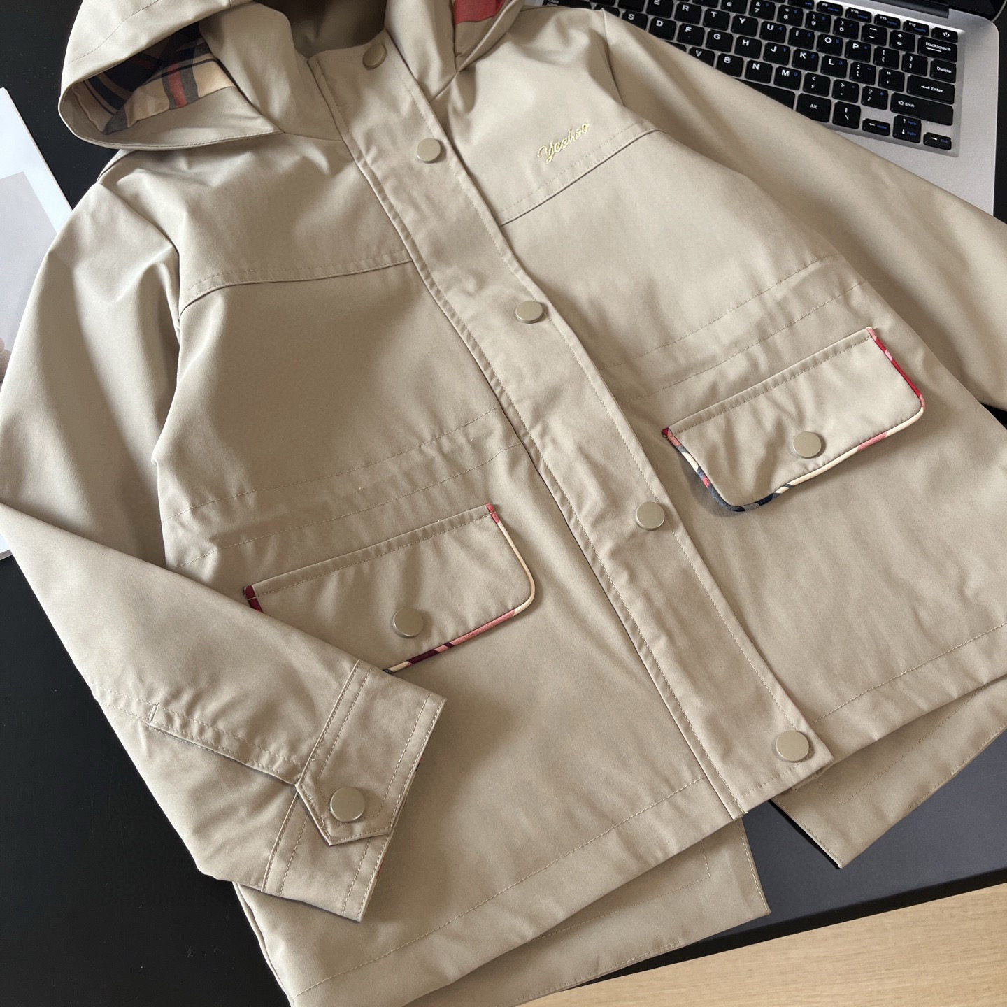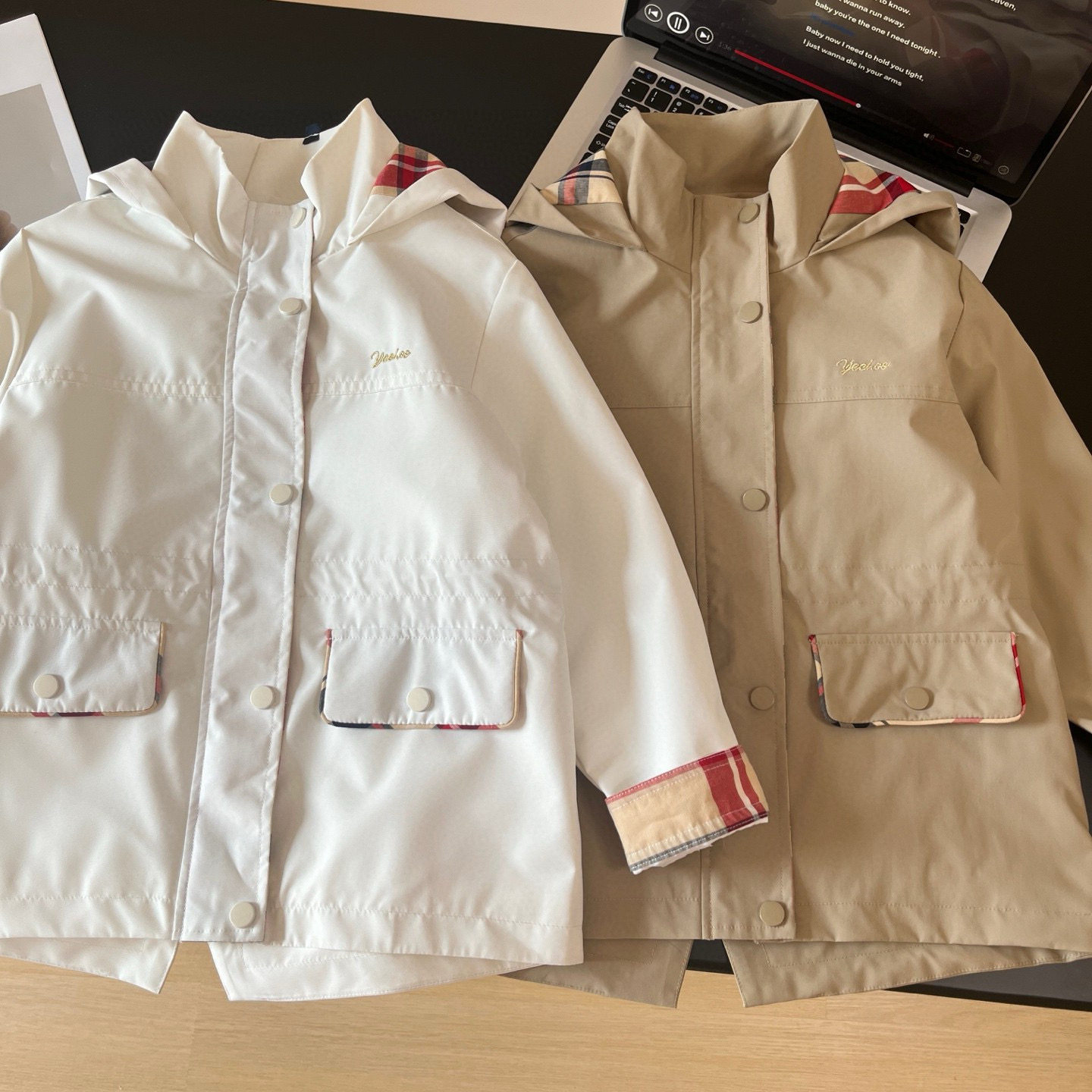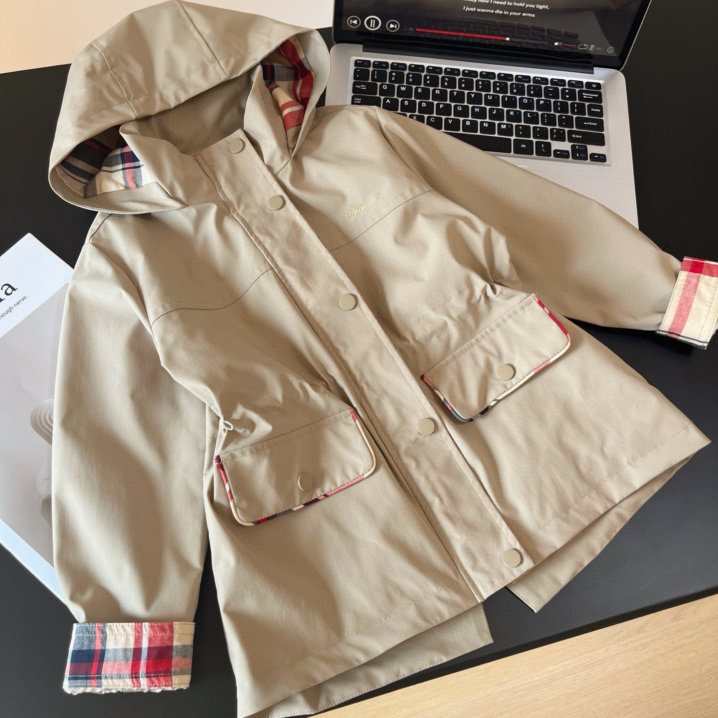 Xiaotongjia-25 Spring and Autumn New British Style Windproof and Waterproof Hooded Waist-Tightening Jacket for Girls