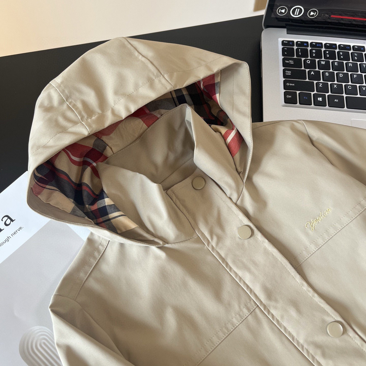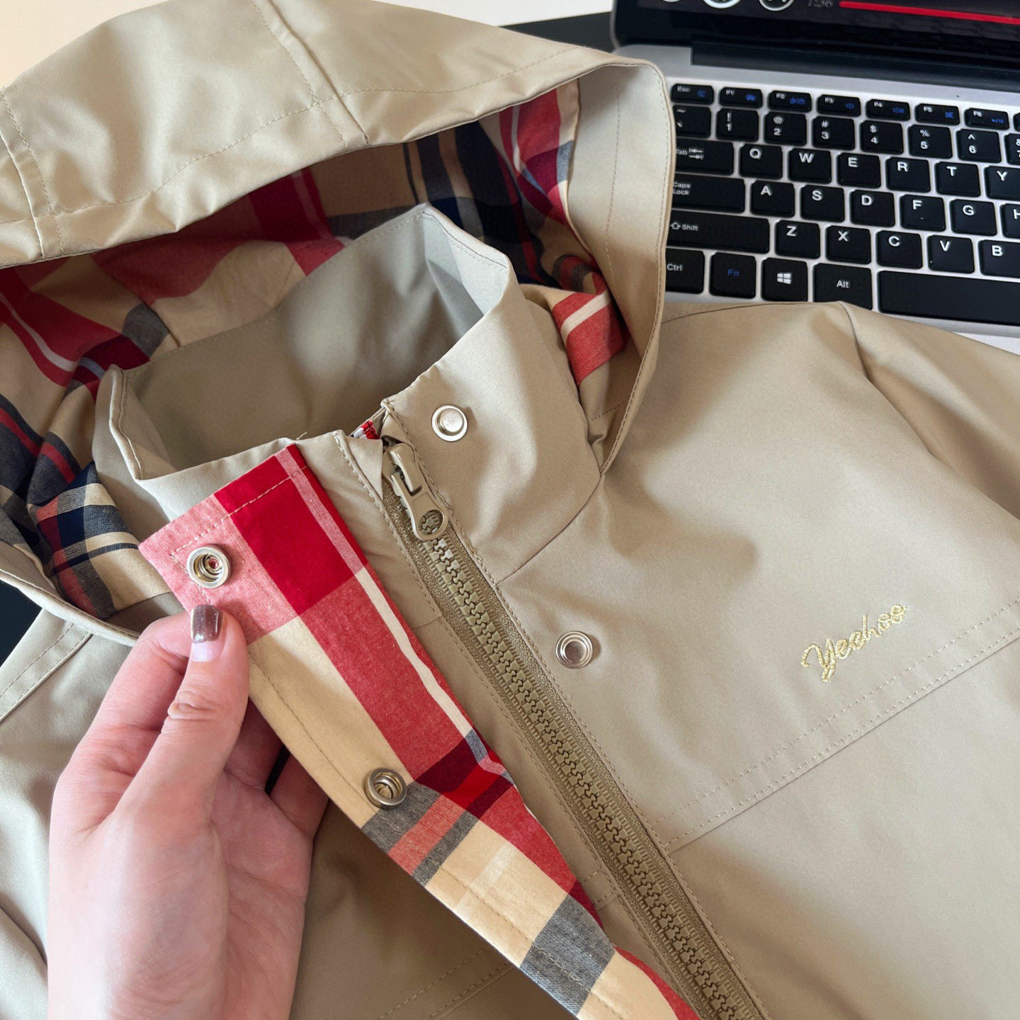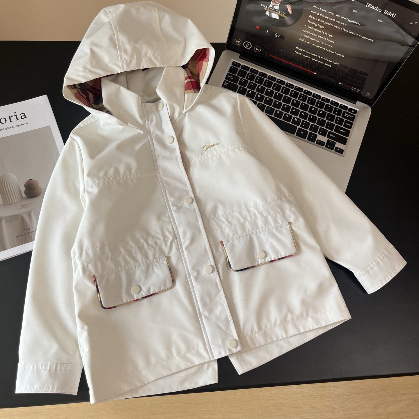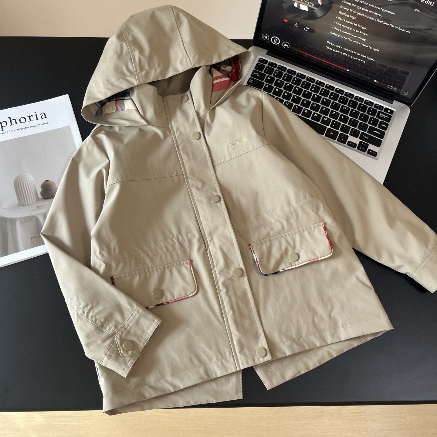 Xiaotongjia-25 Spring and Autumn New British Style Windproof and Waterproof Hooded Waist-Tightening Jacket for Girls