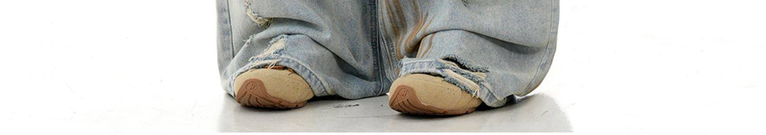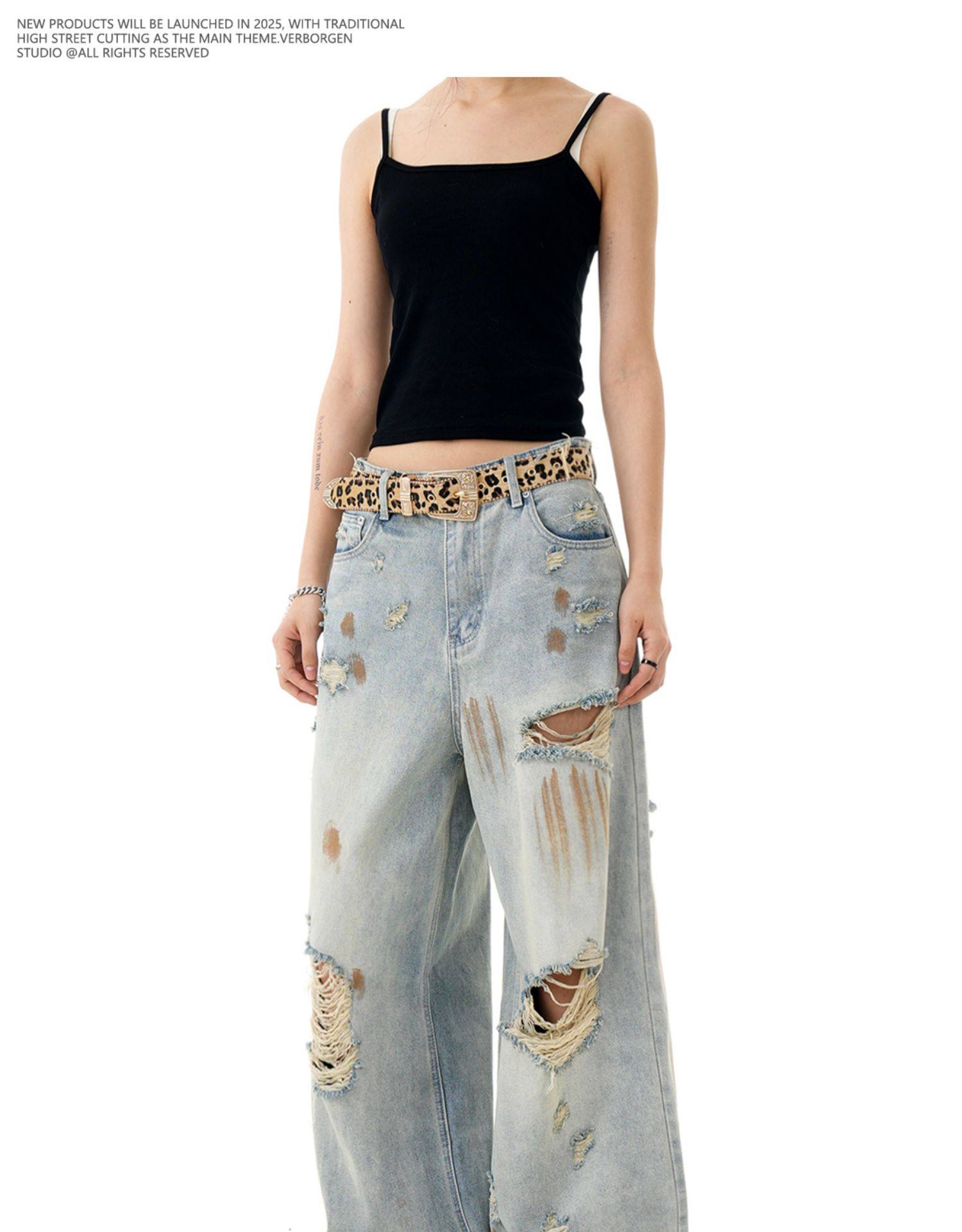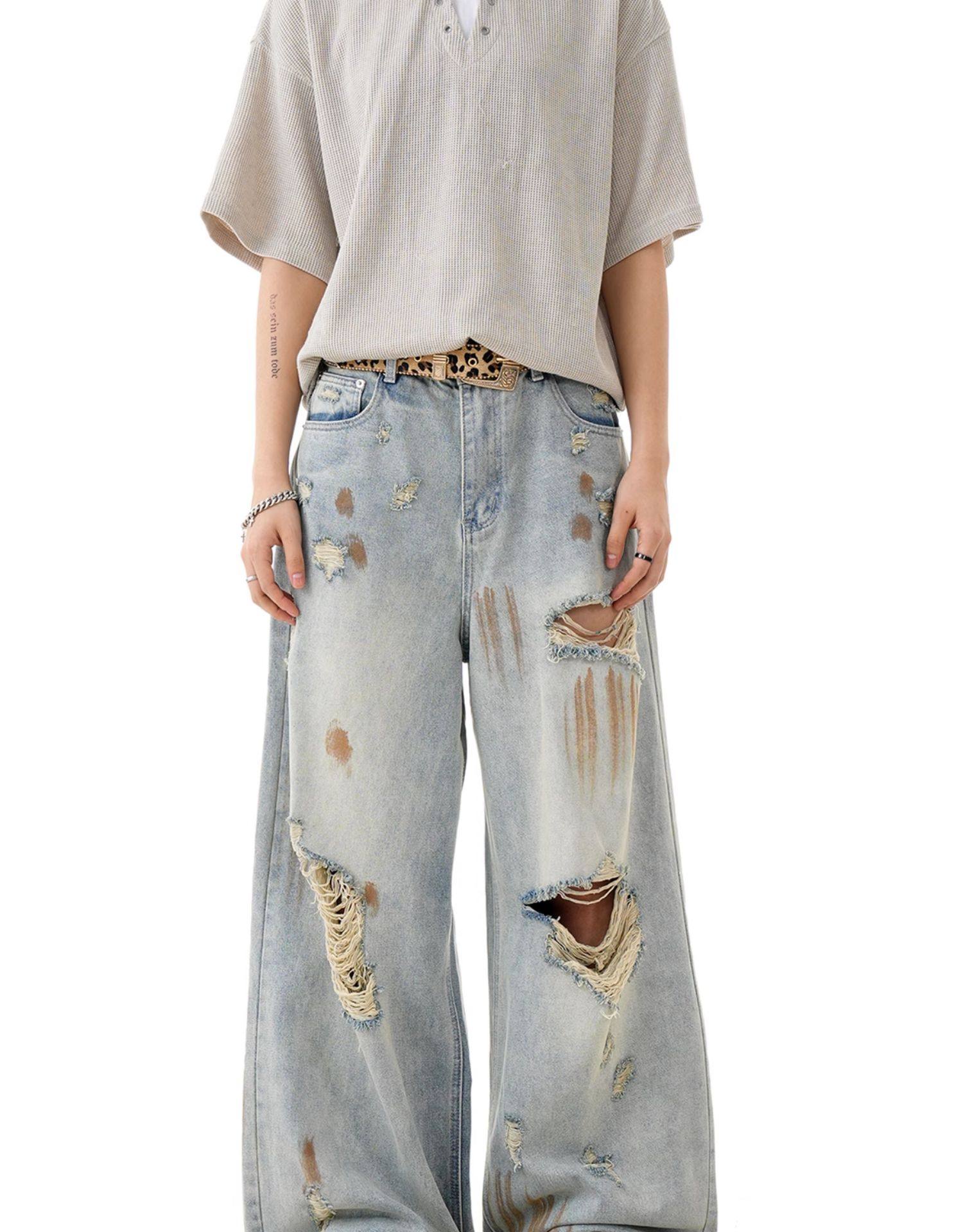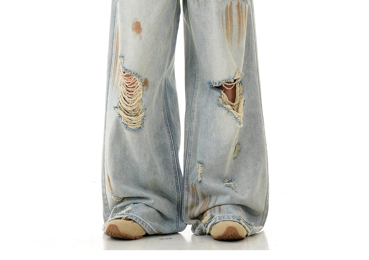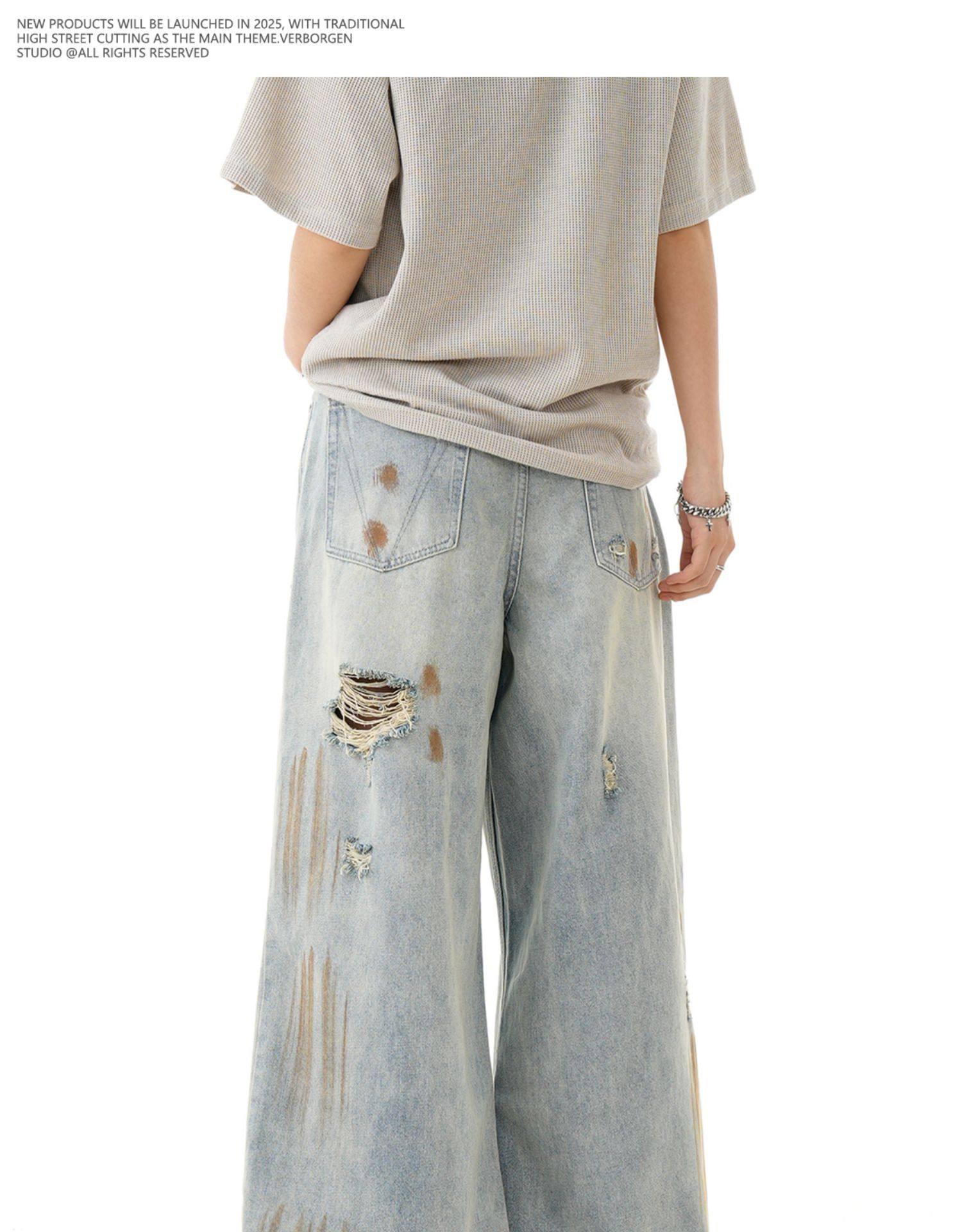 Verborgen American Retro Blue Ripped Distressed Jeans for Men, High Street Trendy Brand, Niche Design Long Pants