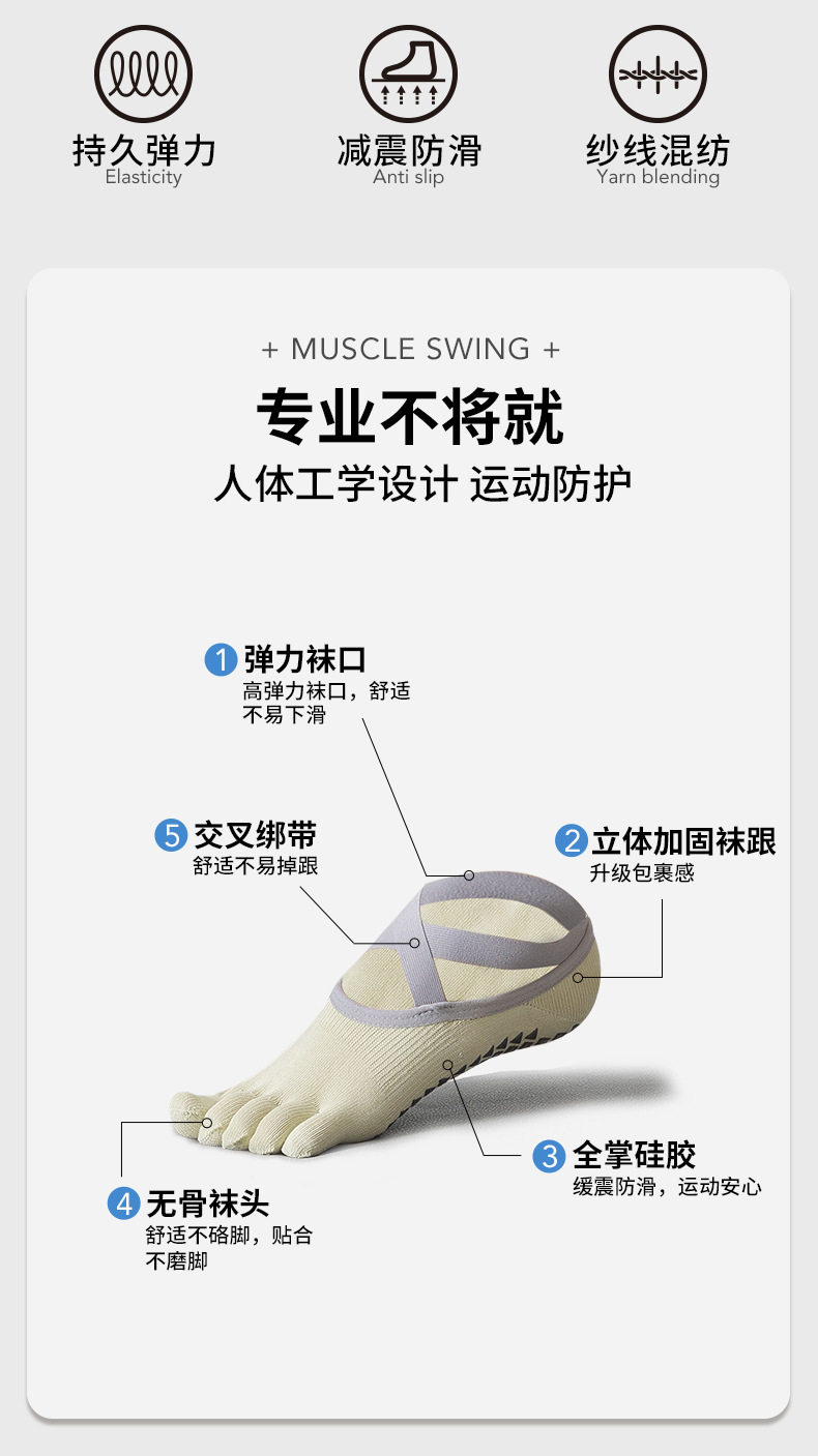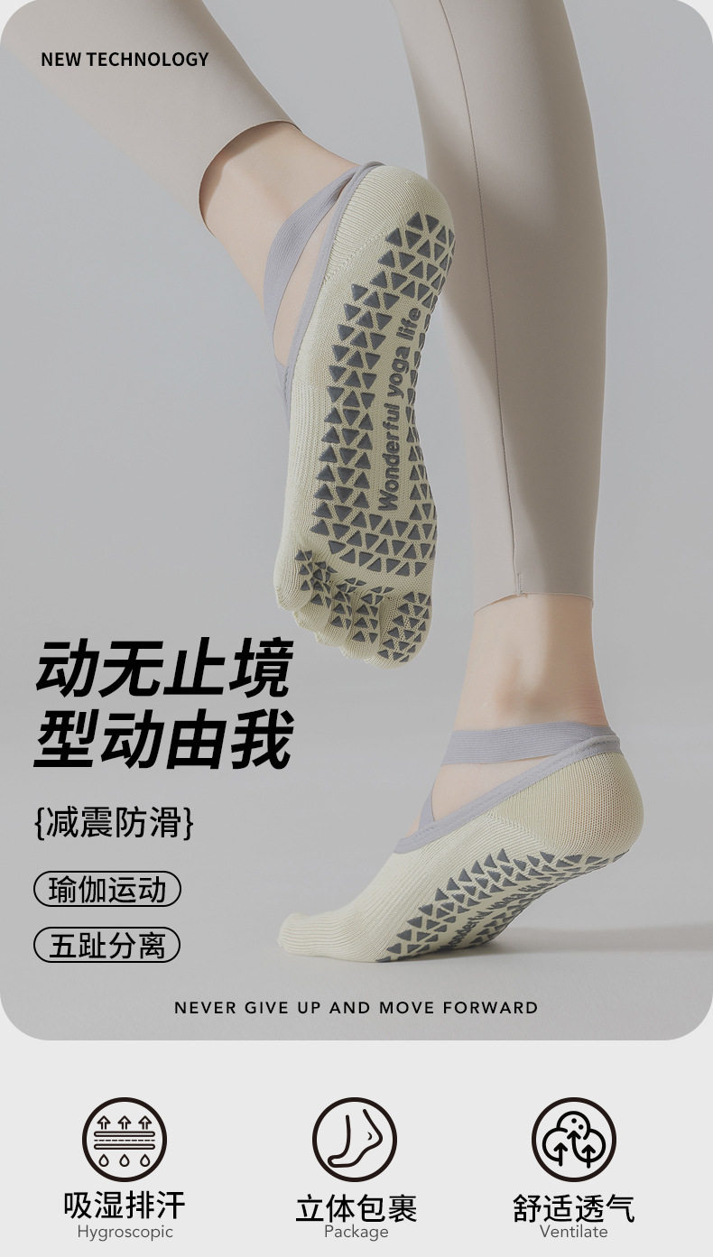 Yoga Socks for Women, Spring and Summer Five-Toe Socks, Split-Toe Indoor Professional Fitness Sports Socks, Non-Slip Pilates Women's Boat Socks