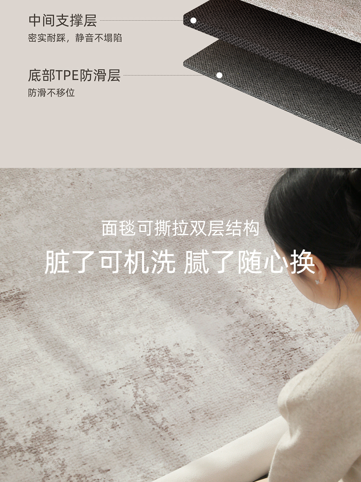Removable and Washable Living Room Carpet 2026 New Model Double-Layer Machine Washable Modern Simple No-Wash Wipeable Home Soundproof Floor Mat