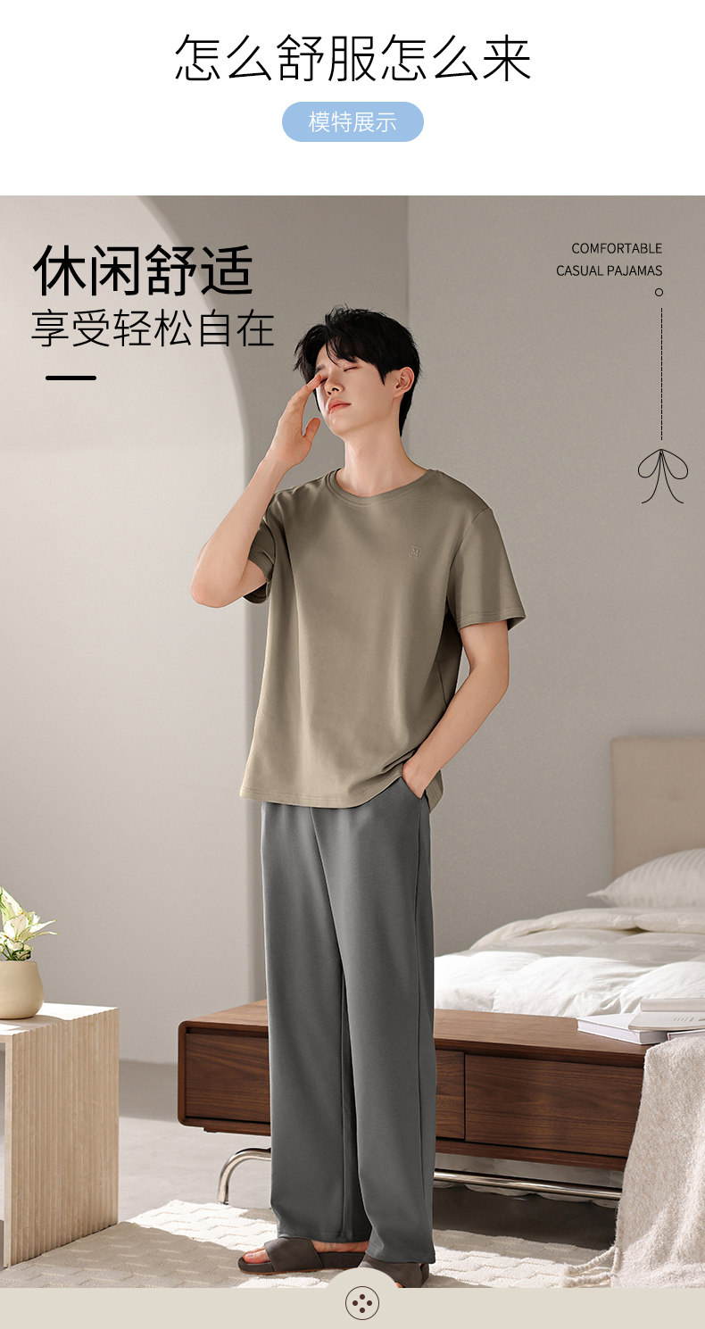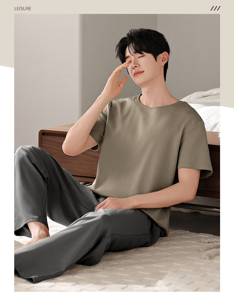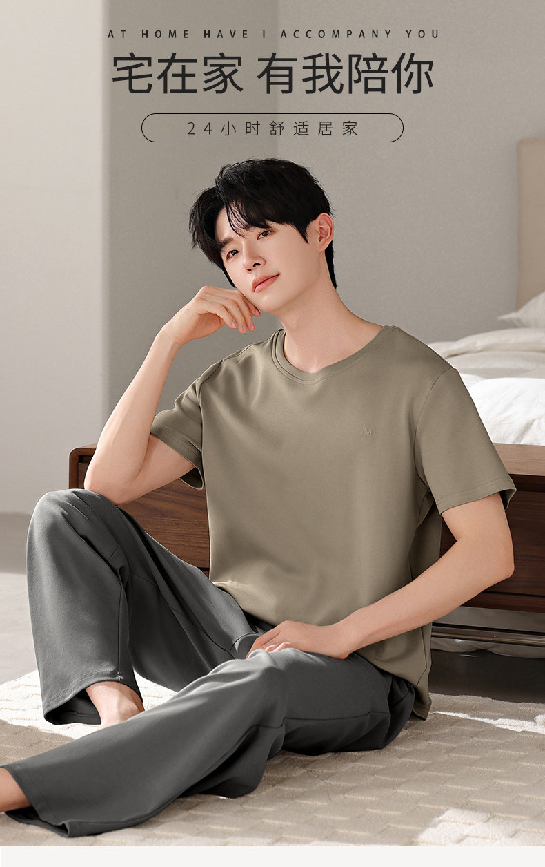 Catman 100% Pure Cotton Pajamas for Men, Summer 2025 New Style, Short-Sleeved and Long-Pants, Can Be Worn Outside, Men's Home Wear Set
