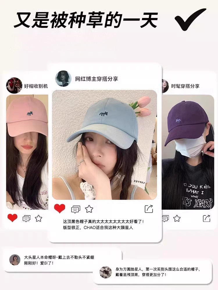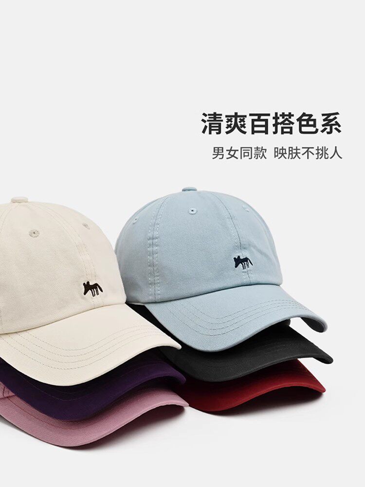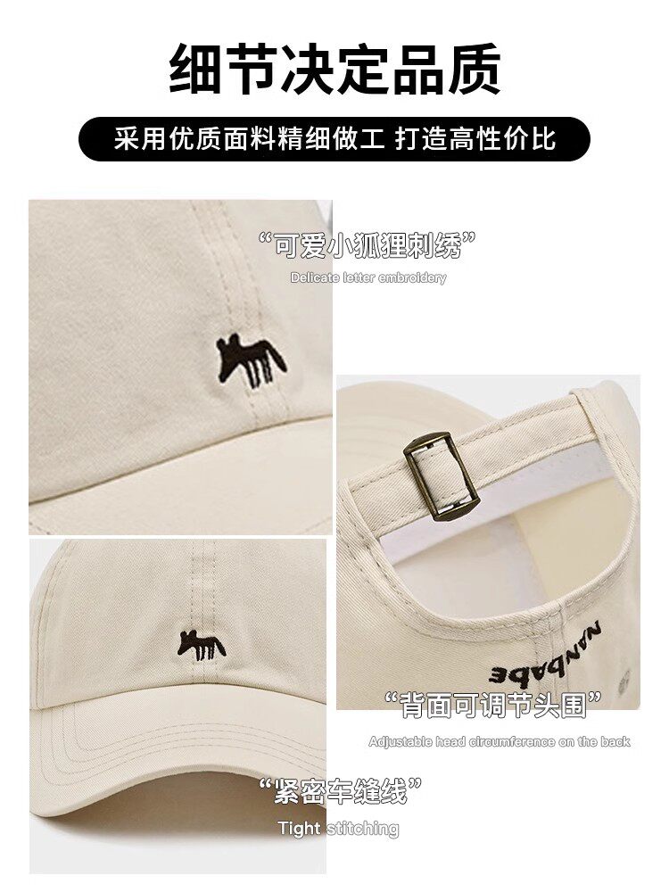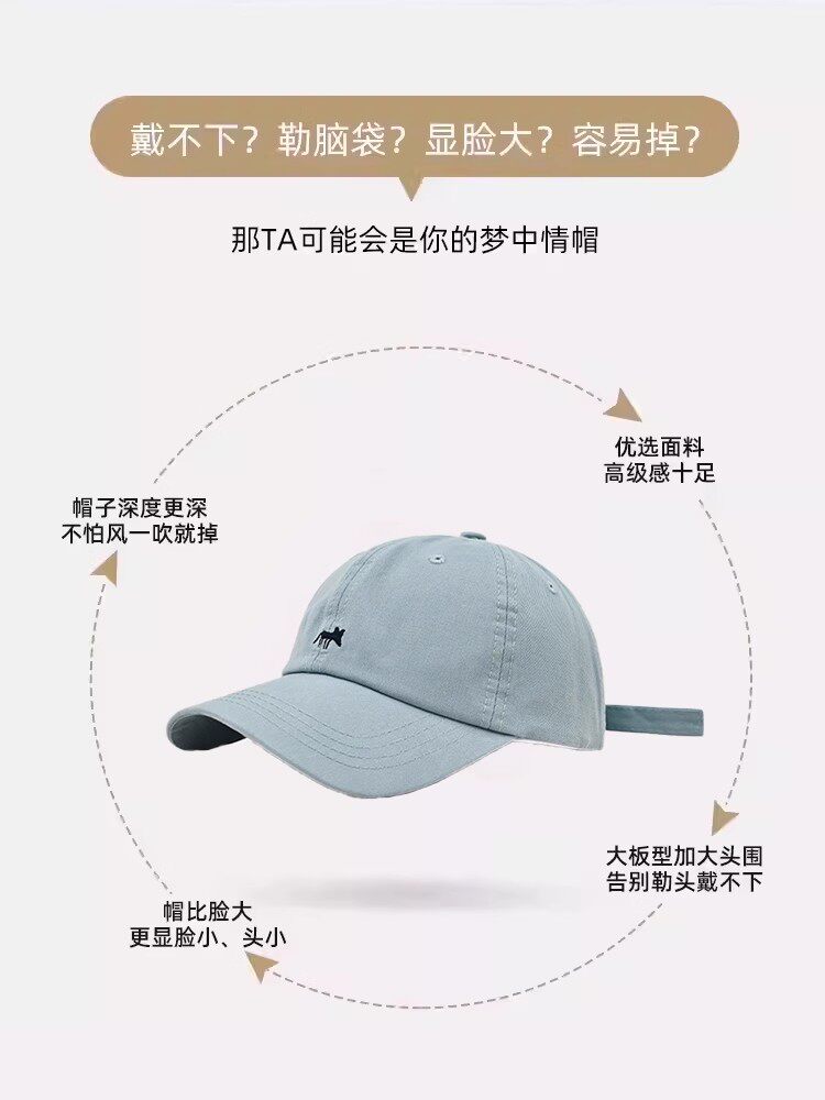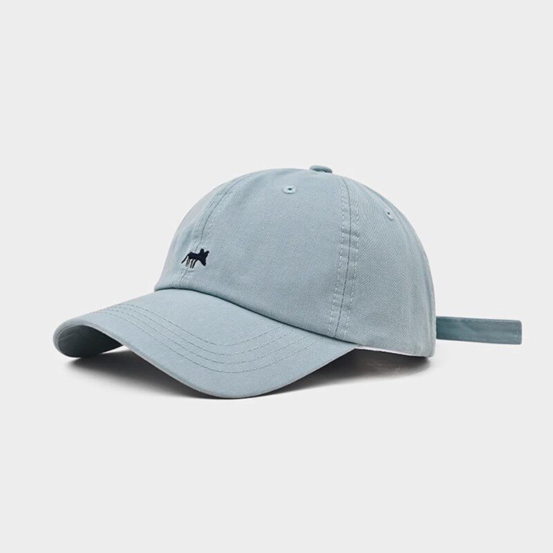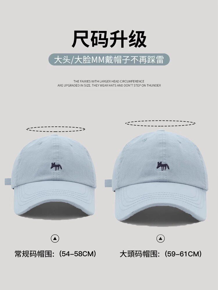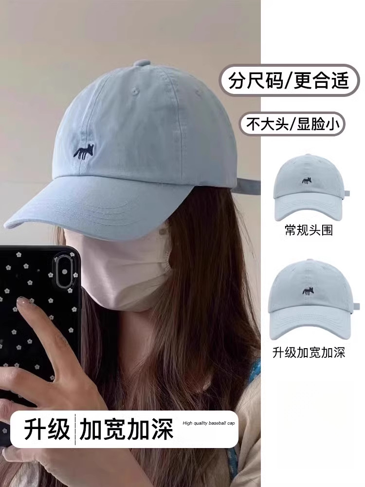 MIND BOY Little Fox Embroidered Baseball Hat Women's Deepened Wide Brim Face Revealing Little Blue Denim Peaked Hat