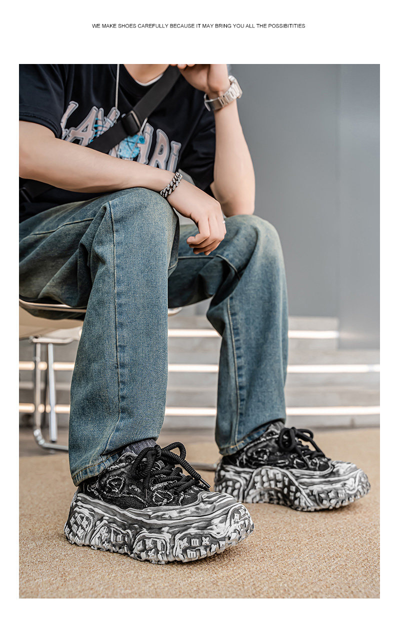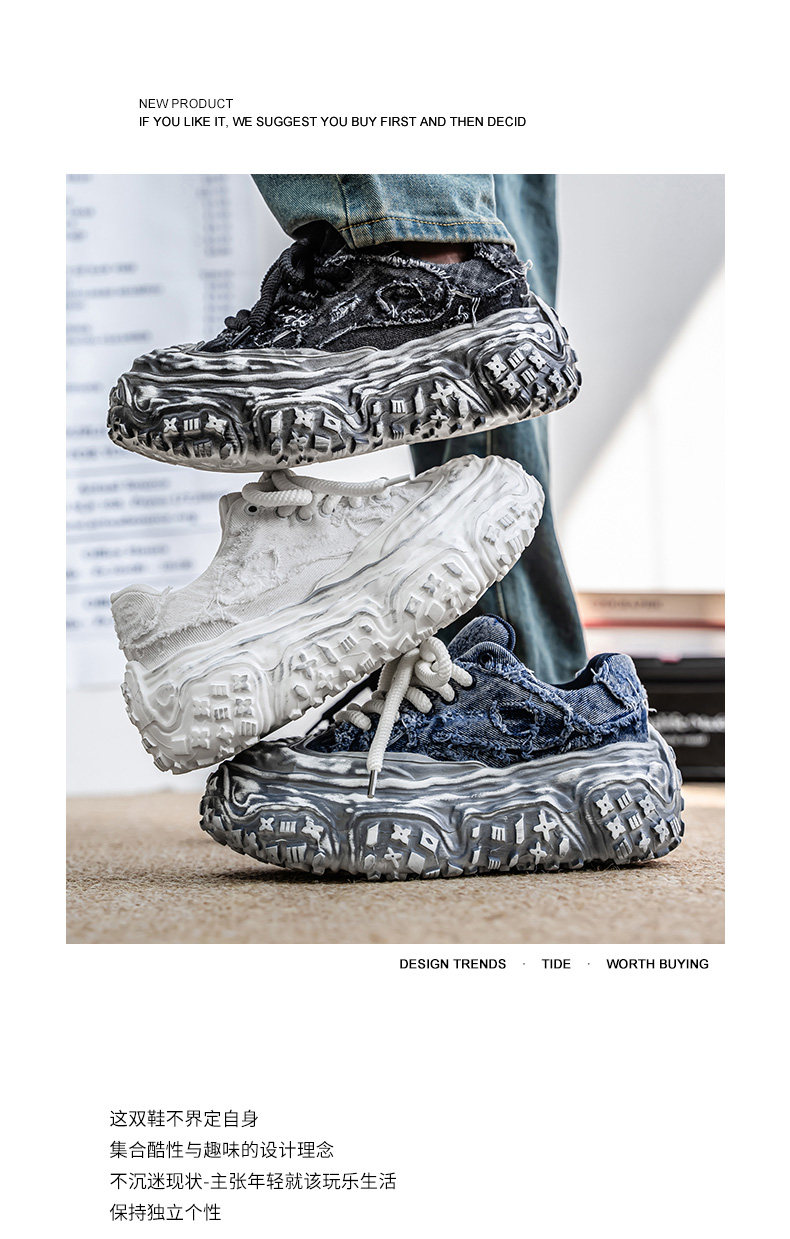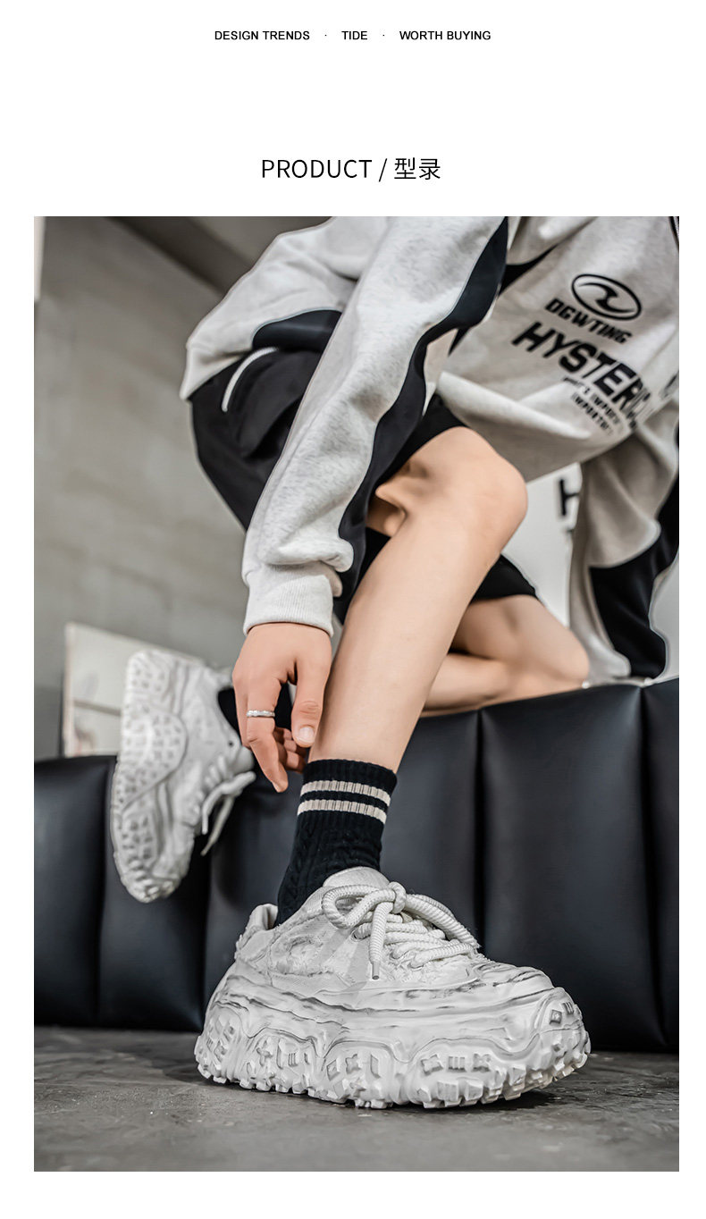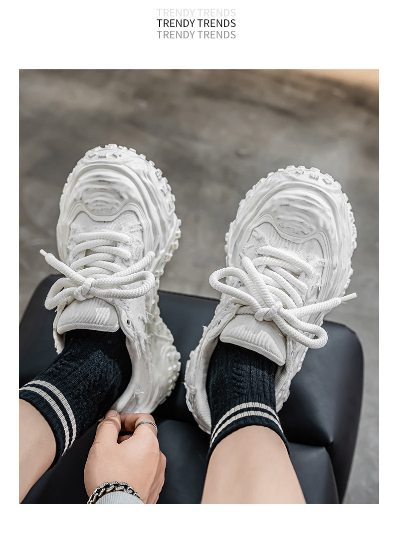 European station canvas shoes men's shoes autumn and winter youth sports non-slip heightening dissolving sneakers light luxury white dad shoes