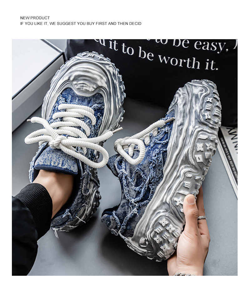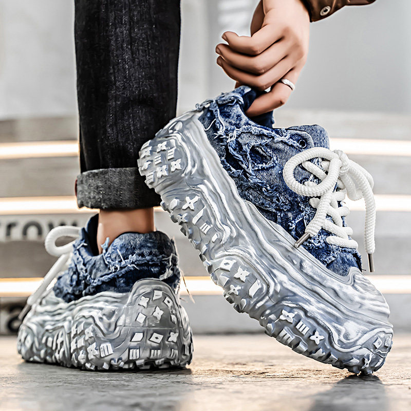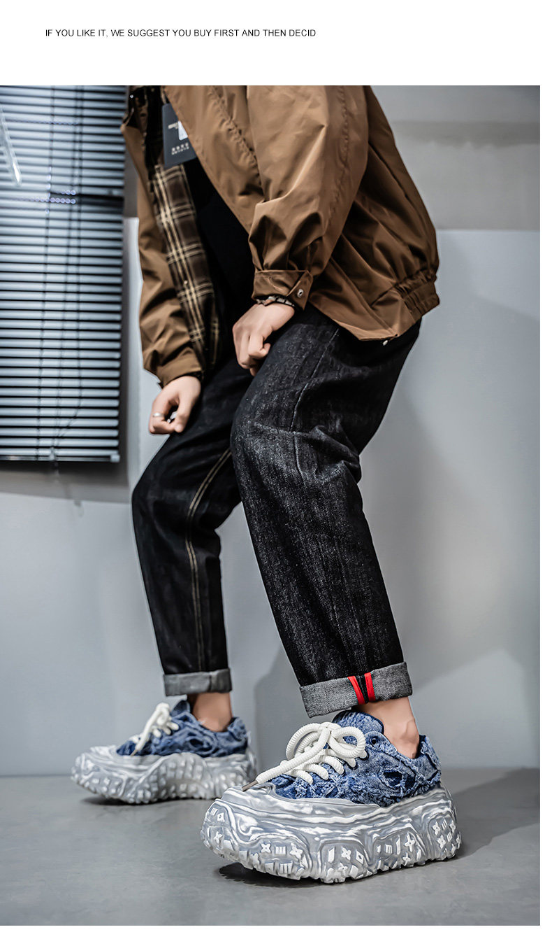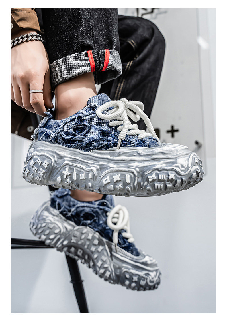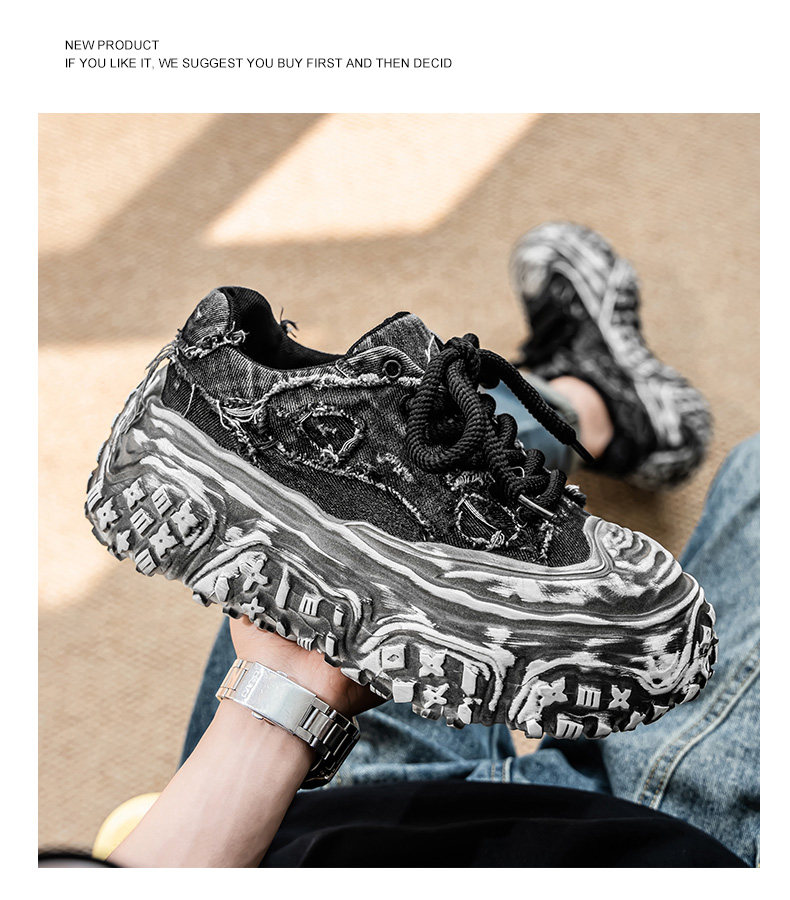 European station canvas shoes men's shoes autumn and winter youth sports non-slip heightening dissolving sneakers light luxury white dad shoes