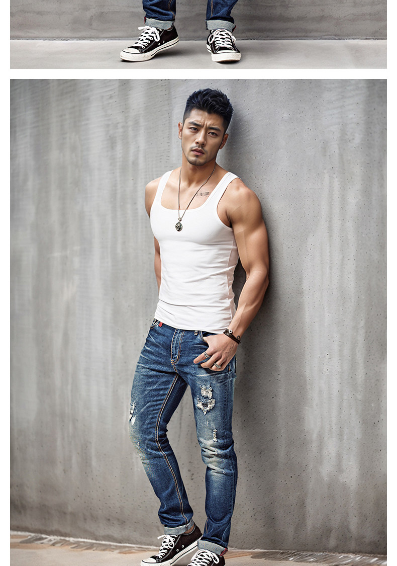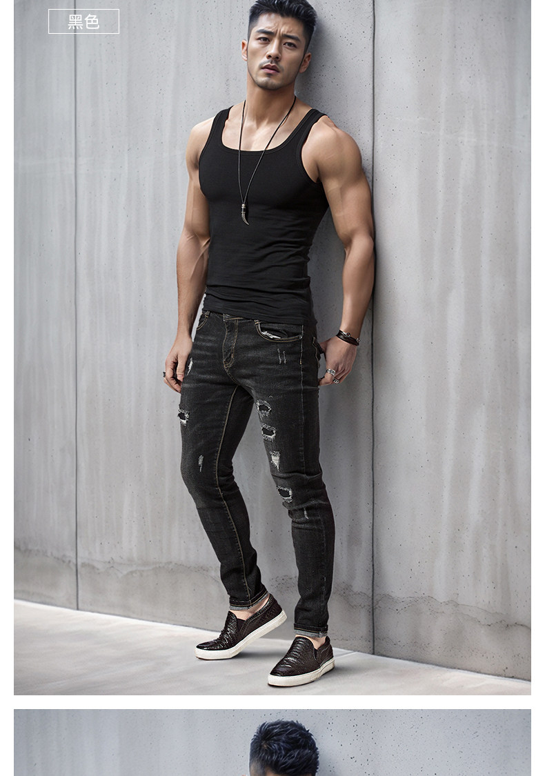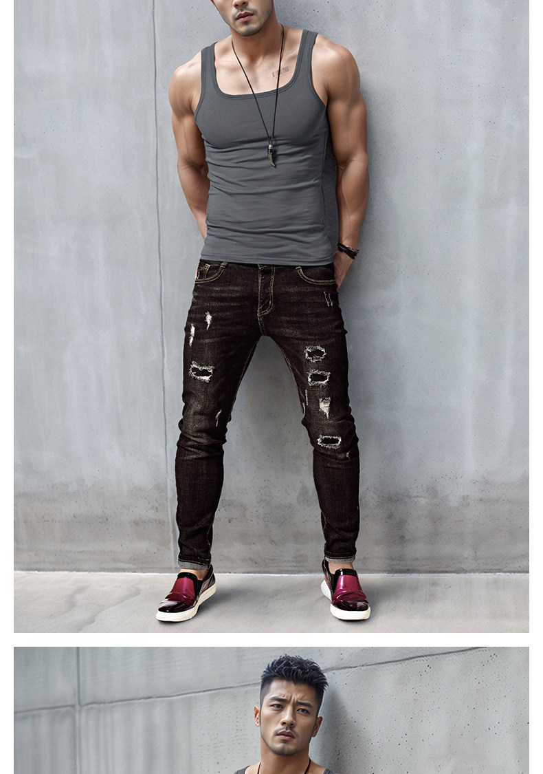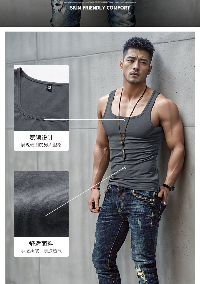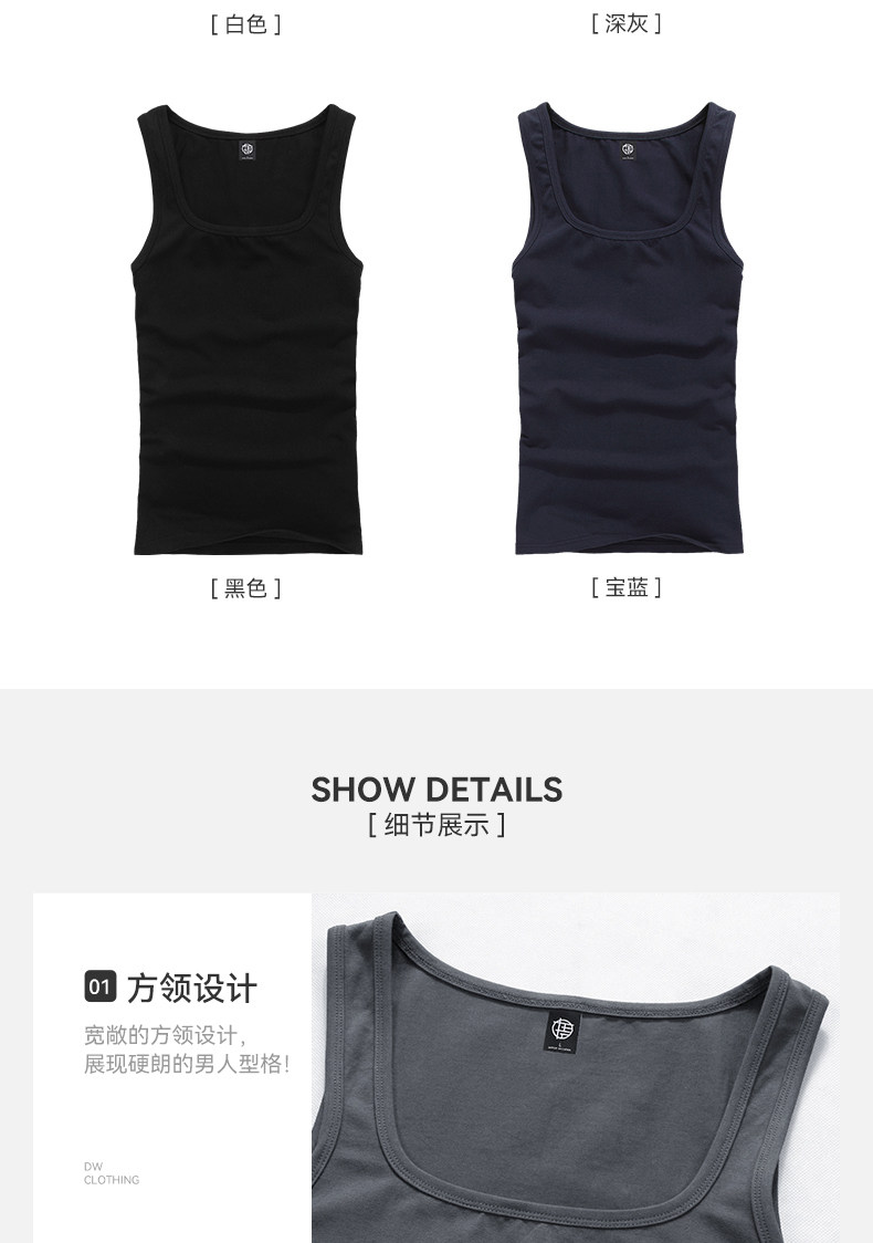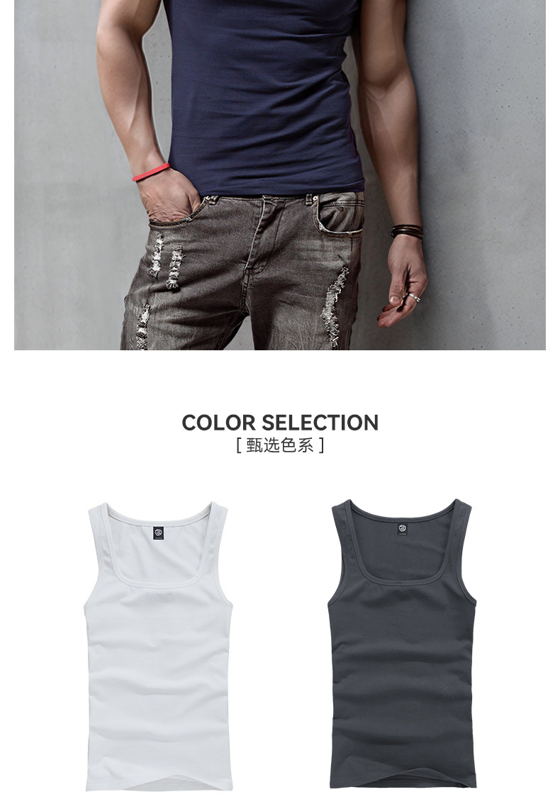 Men's Sports Fitness Tight-Fitting Solid Color Cotton Tank Top with Square Neckline, Chest Support, Elastic, Summer