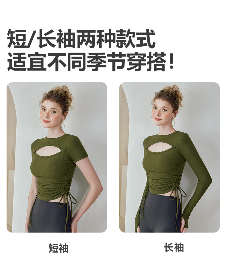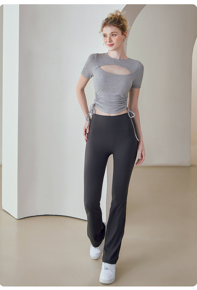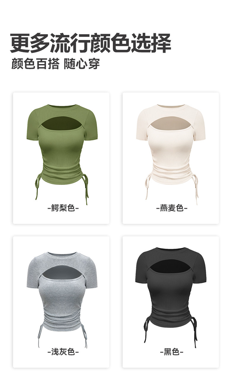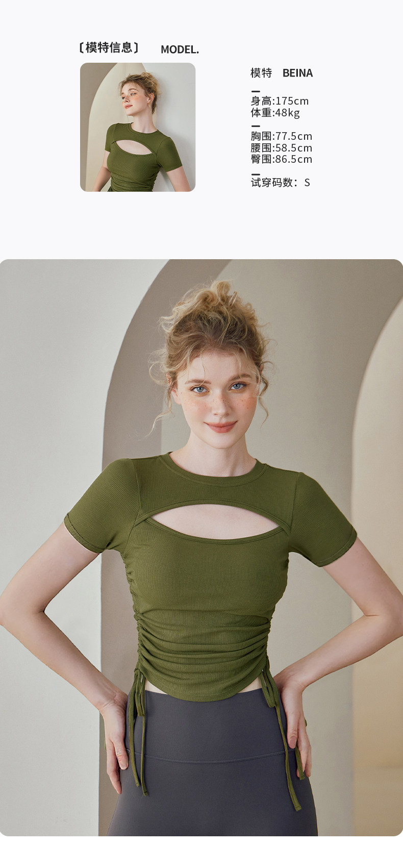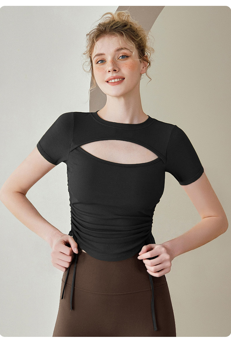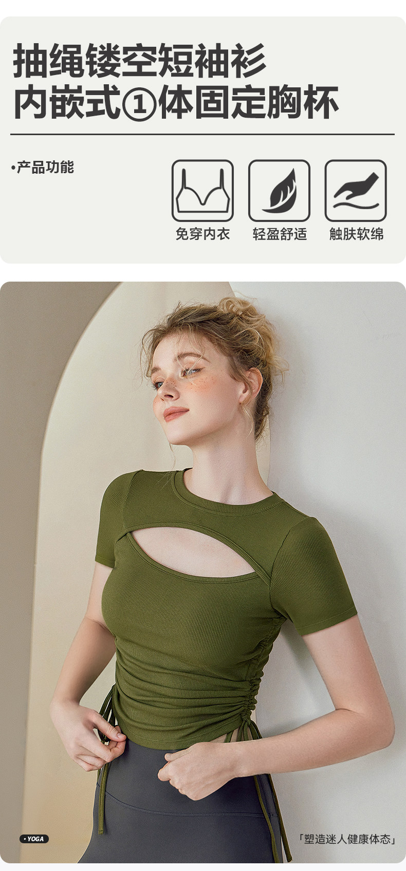 Yoga Wear for Women, Outerwear T-Shirt with Hollow-Out Design, Slimming, Quick-Dry, with Chest Pads, Pilates Sports Short-Sleeve Fitness Top