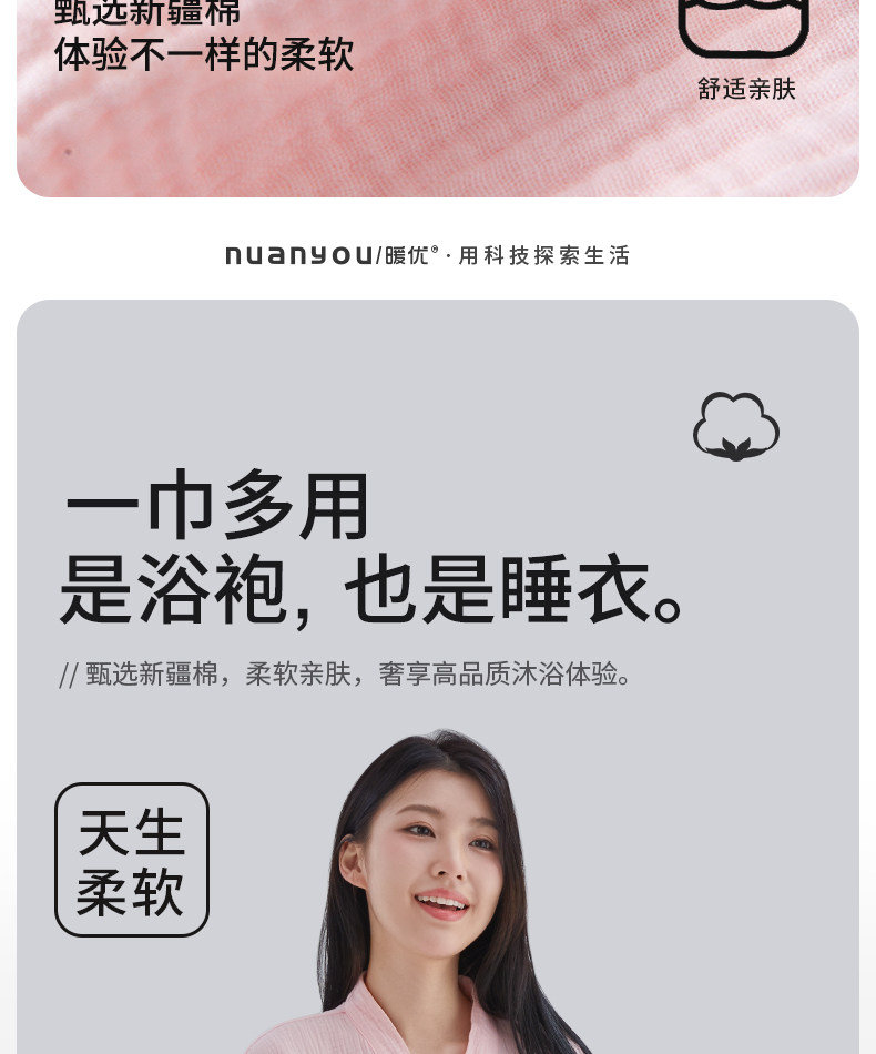Nuanyou Pure Cotton Gauze Bathrobe for Women, All-Cotton, Absorbent, Quick-Drying, Wearable Nightgown, Bathrobe, Summer Thin 2026 New Model
