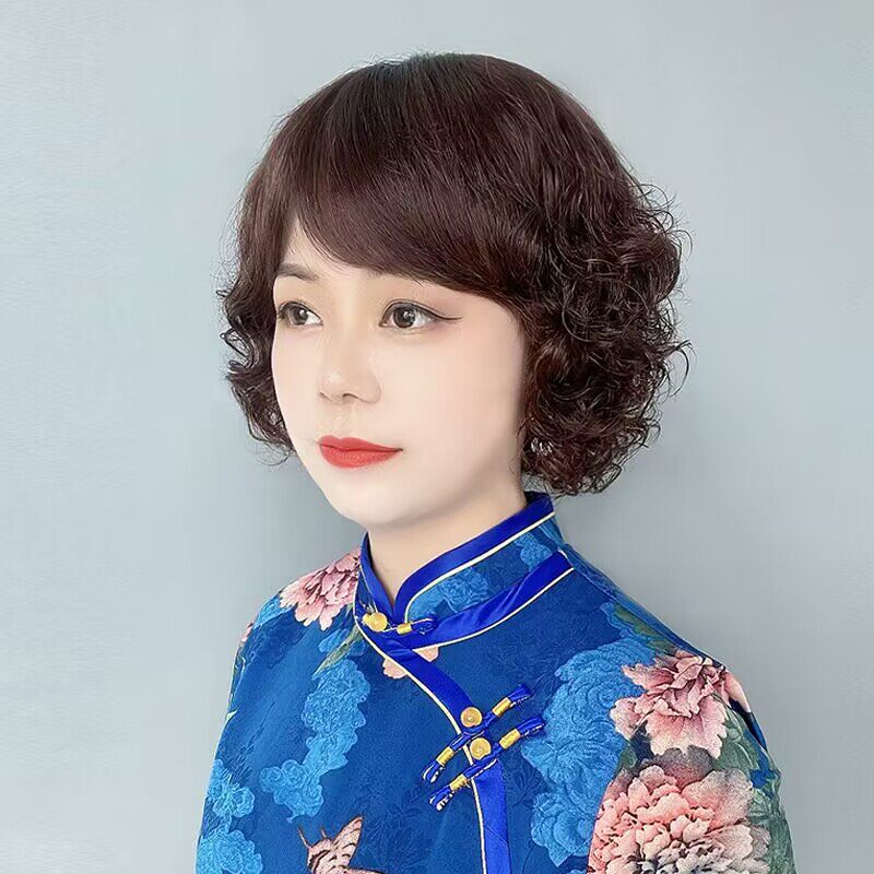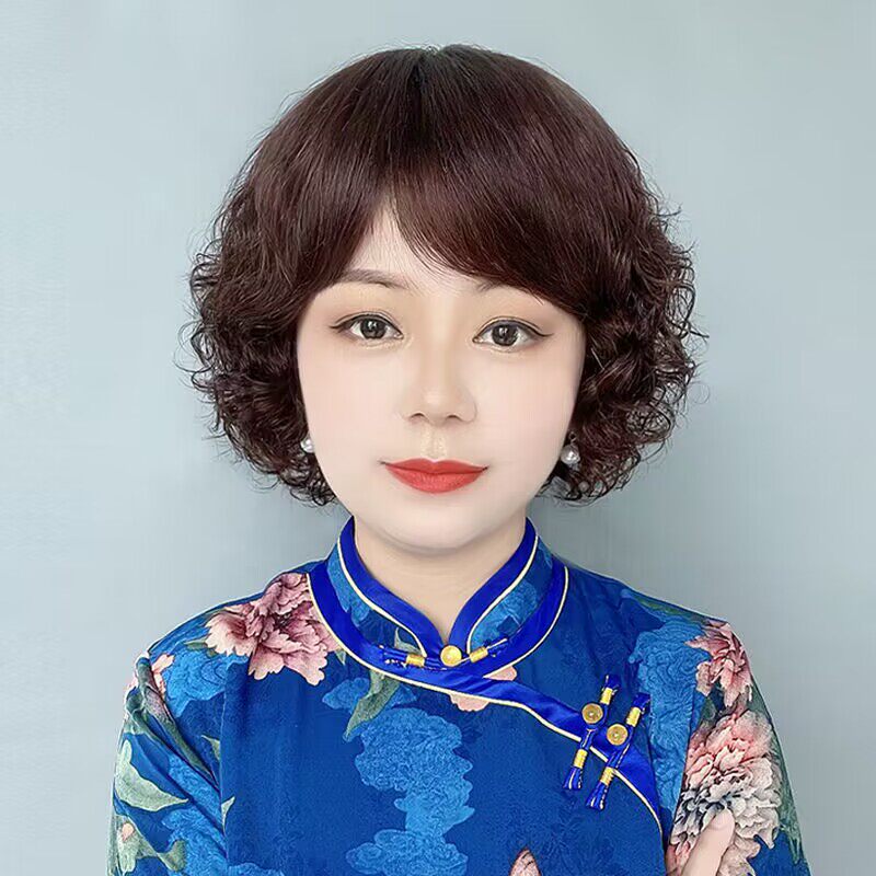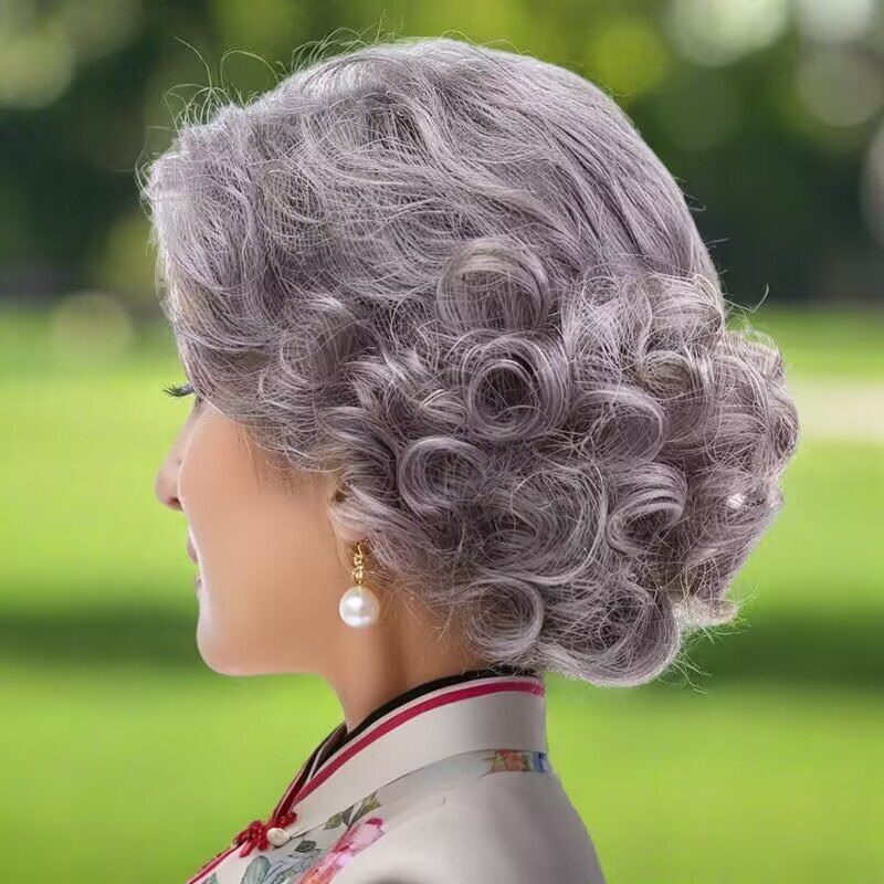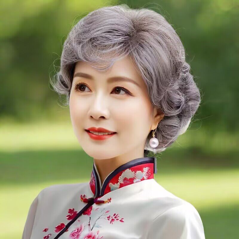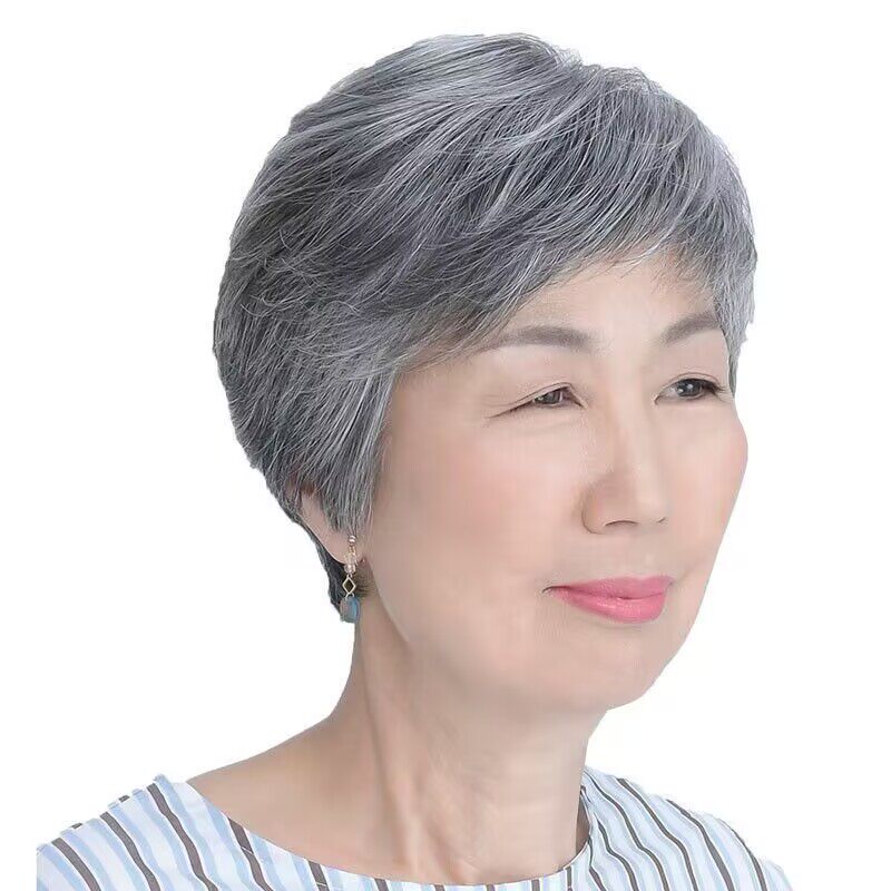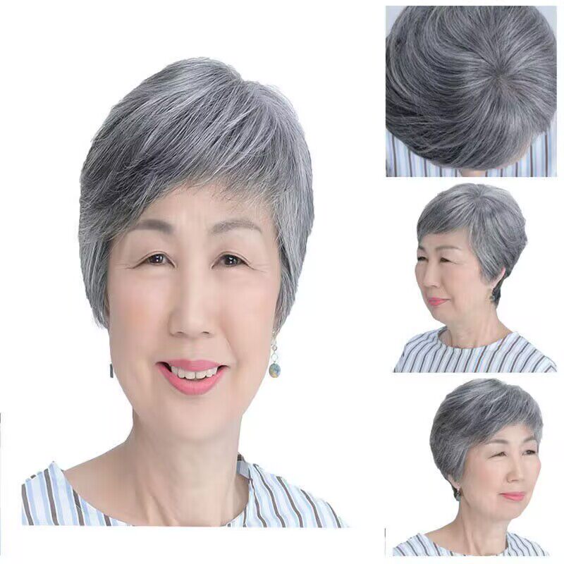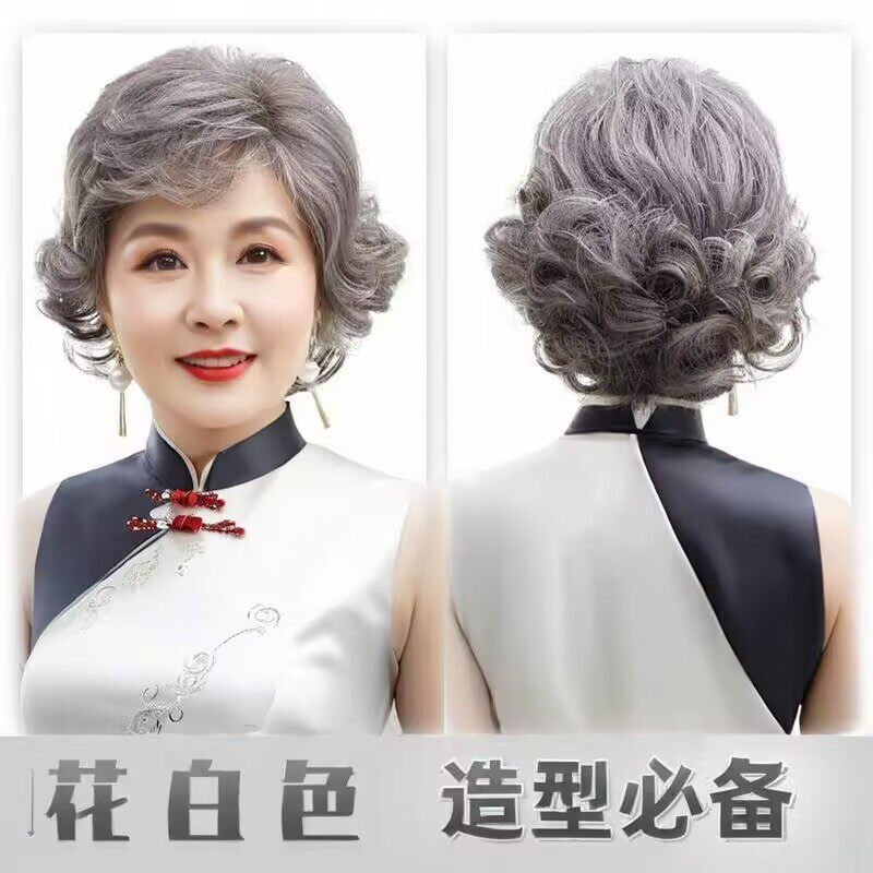 Middle-aged and elderly people have gray hair performance wigs, old ladies with short hair, mother's artificial hair, white hair hat, grandma's favorite