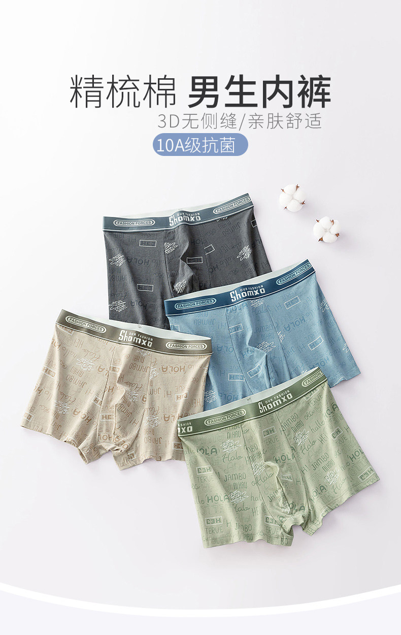 Men's Pure Cotton Boxer Briefs for Boys, Xinjiang Cotton, Loose Fit for Developmental Period, Students, High School Students, All-Cotton, Trendy
