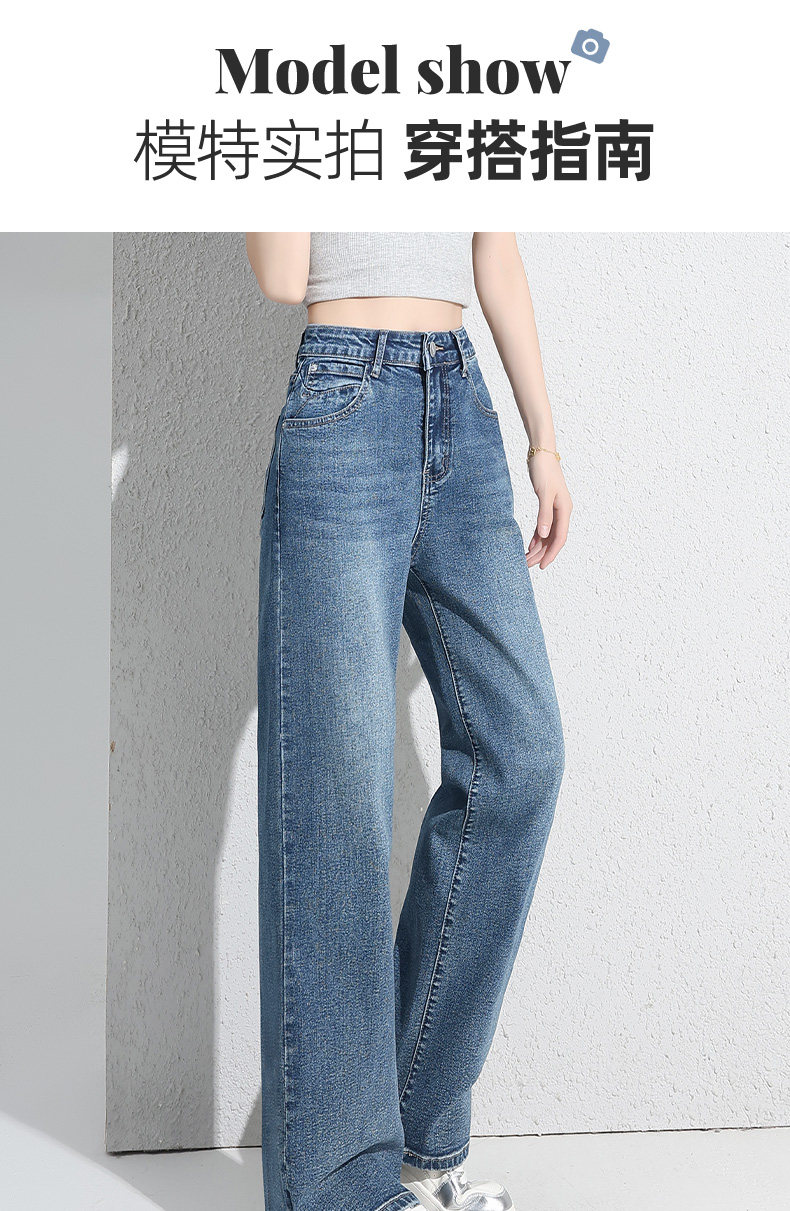 Pull-back jeans women's summer thin 2026 new high-waisted bootcut pants retro distressed straight narrow wide-leg pants J