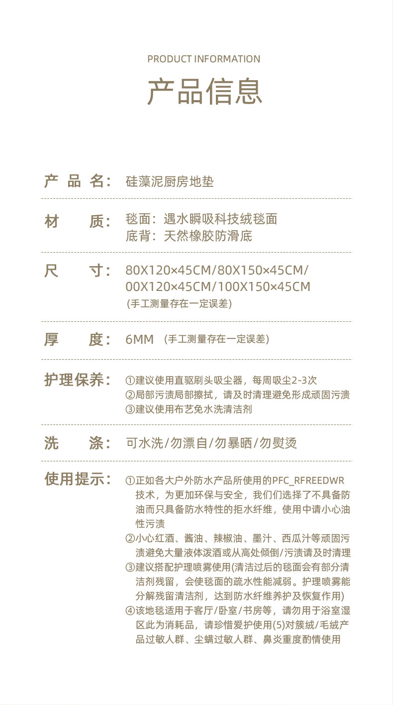 Size 80*120*45CM Thickened and stain-resistant,80*150*45CM anti-slip and easy to take care of,100*120*45CM absorbs water and oil,100*150*45CM wear-resistant and scratch-resistant,Customize other sizes, please consult customer service