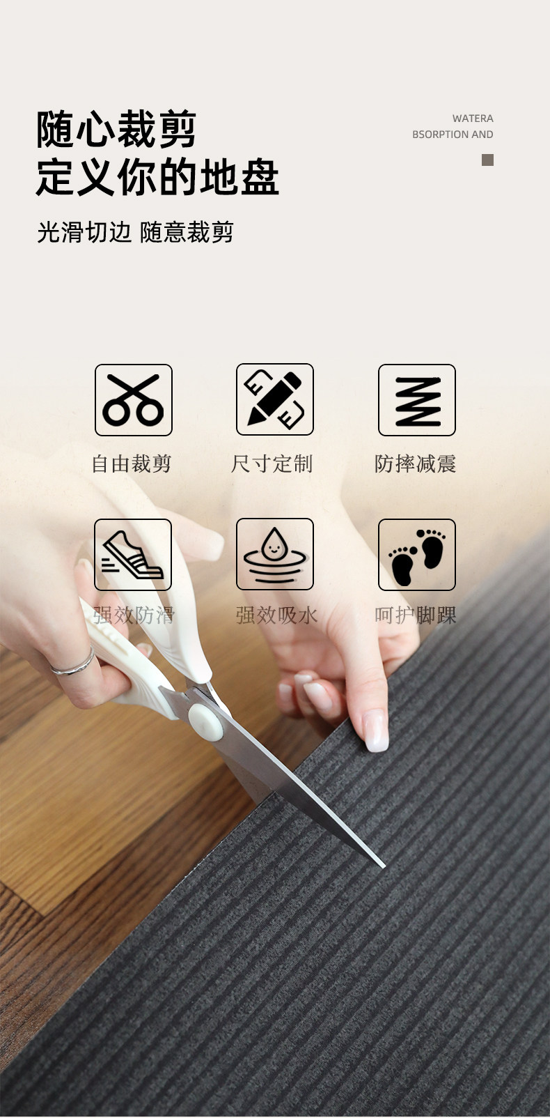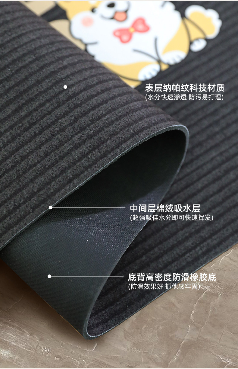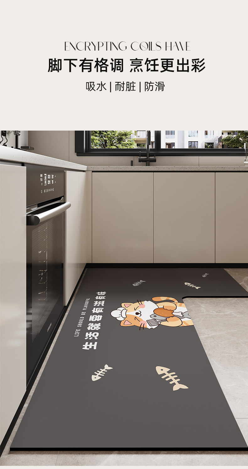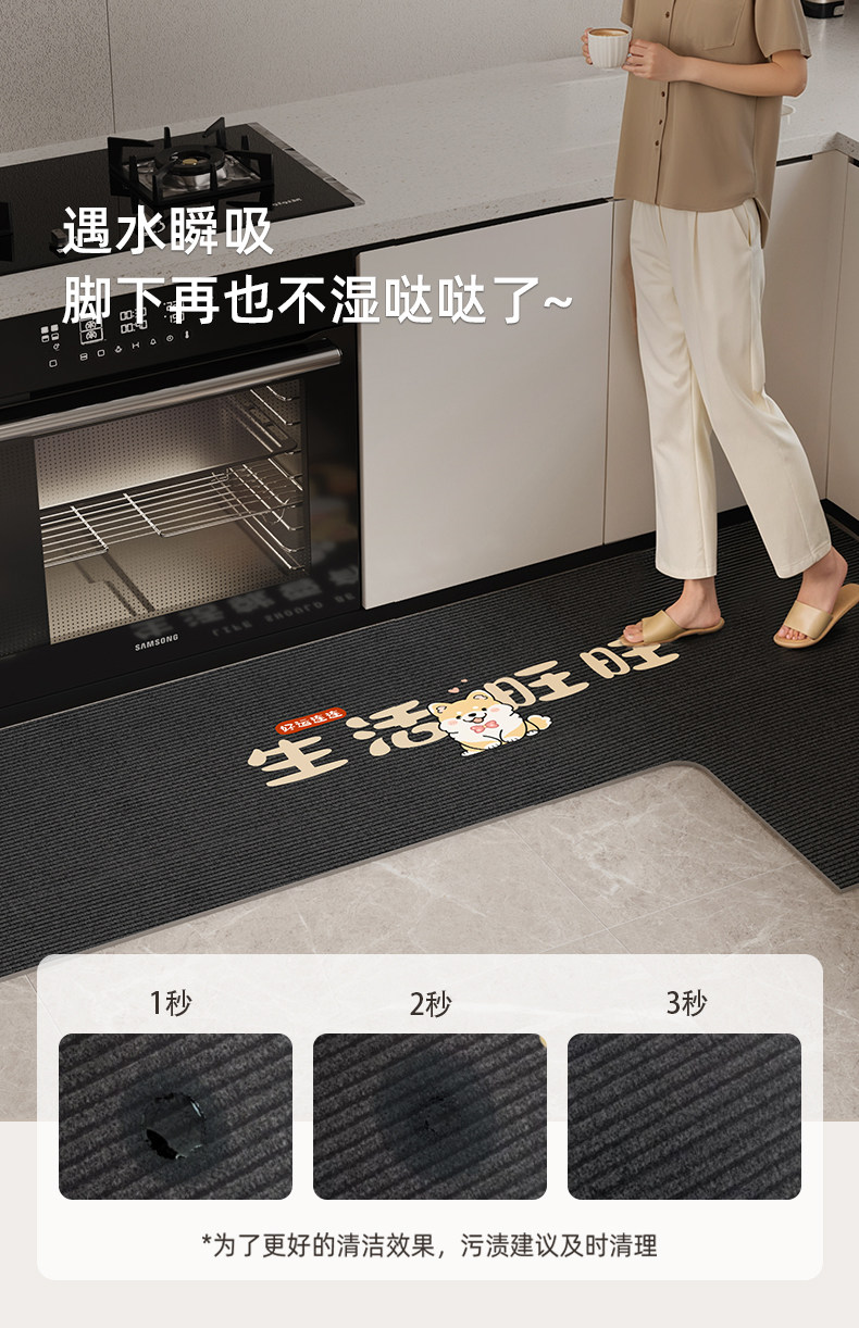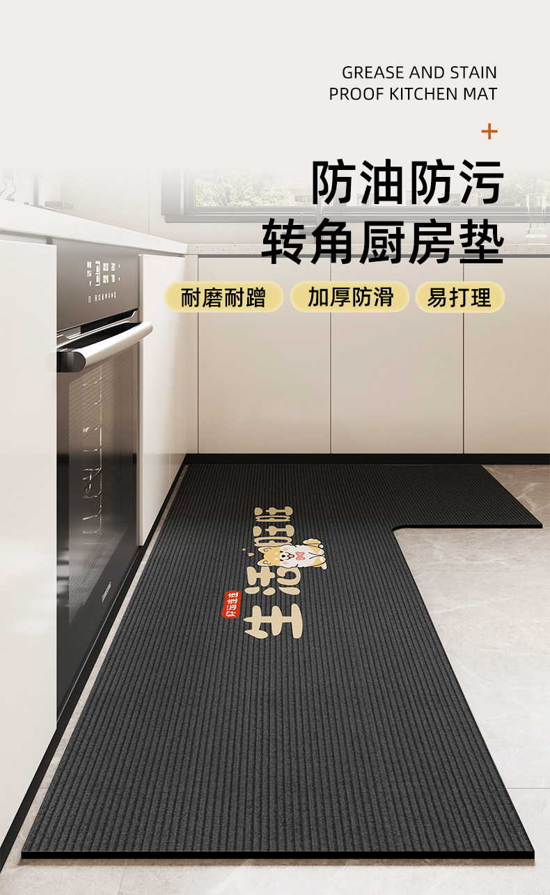 Kitchen special floor mats 2026 new water-absorbent, non-slip, oil-proof, wipeable, washable floor mats, stain-resistant corner L-shaped carpet