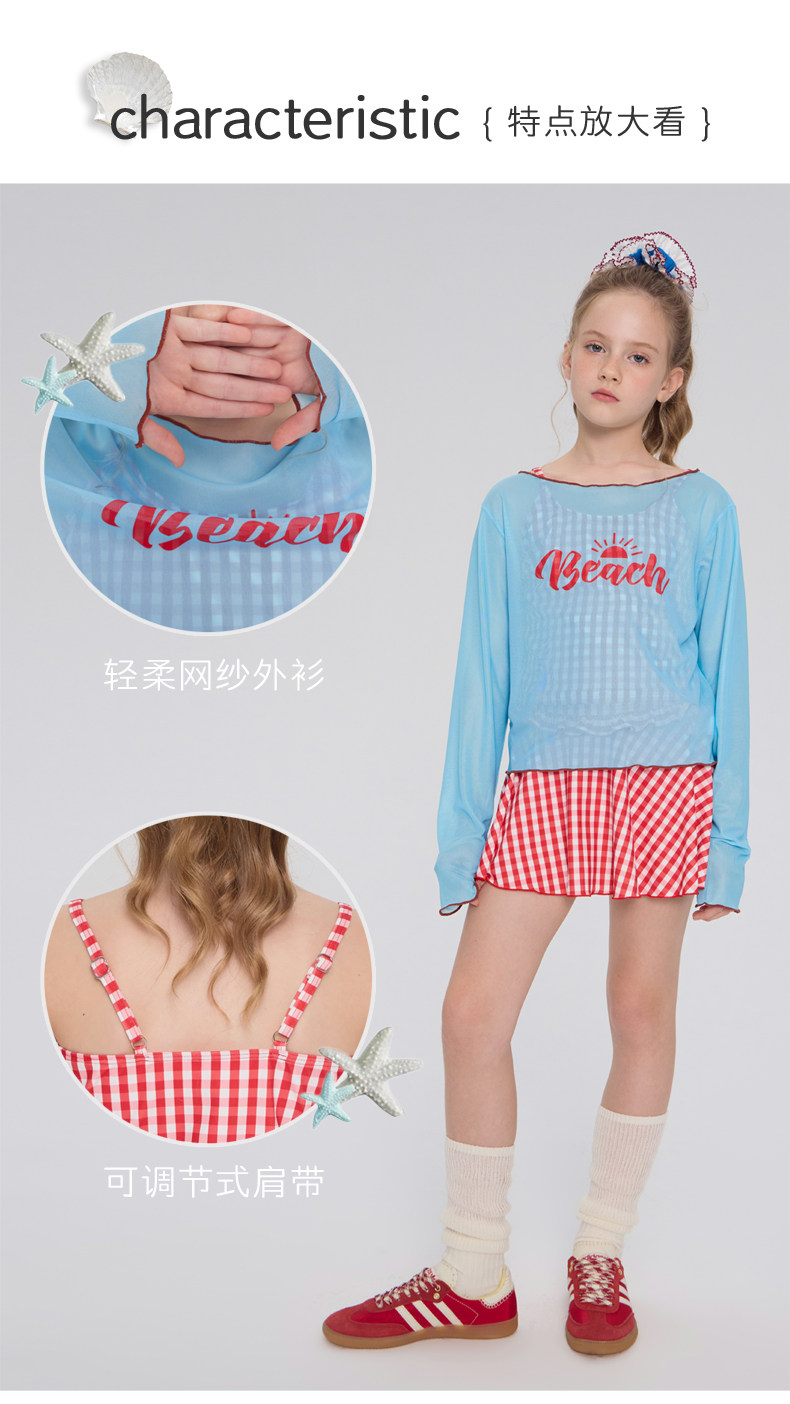 2026 New Children's Swimsuit Three-Piece Set for Girls with Chest Pads, Swimsuit for Older Girls, Junior High School Girls' Hot Spring Swimsuit