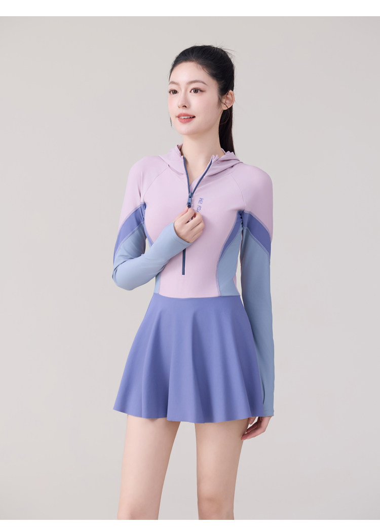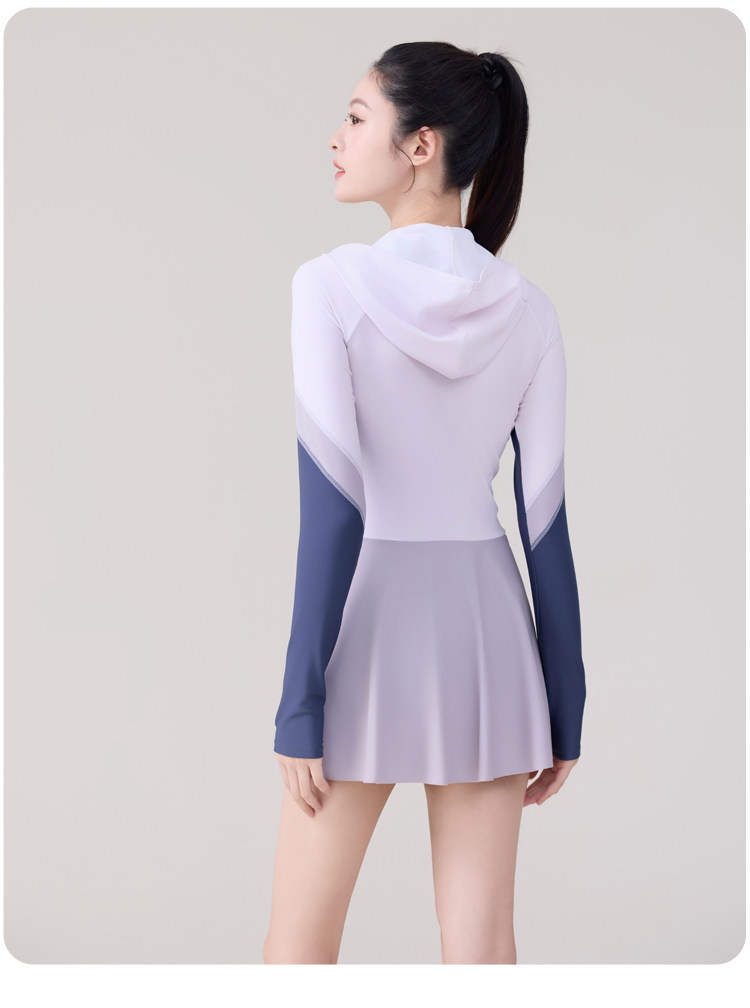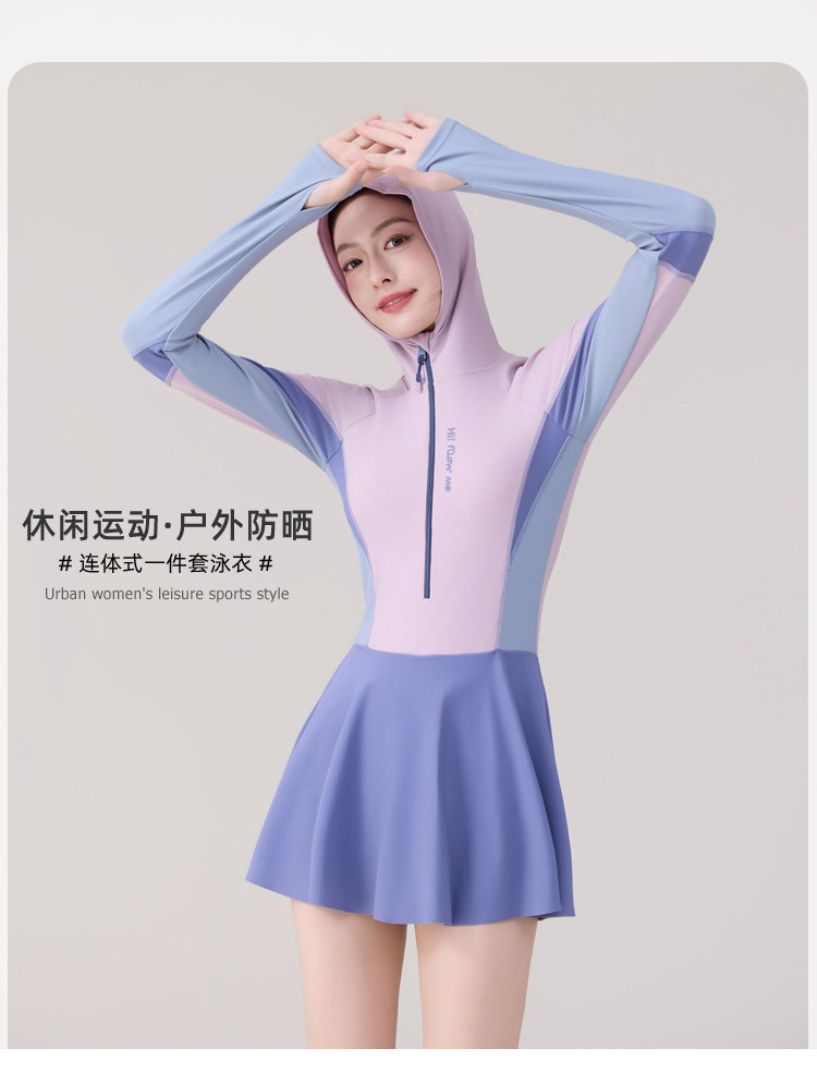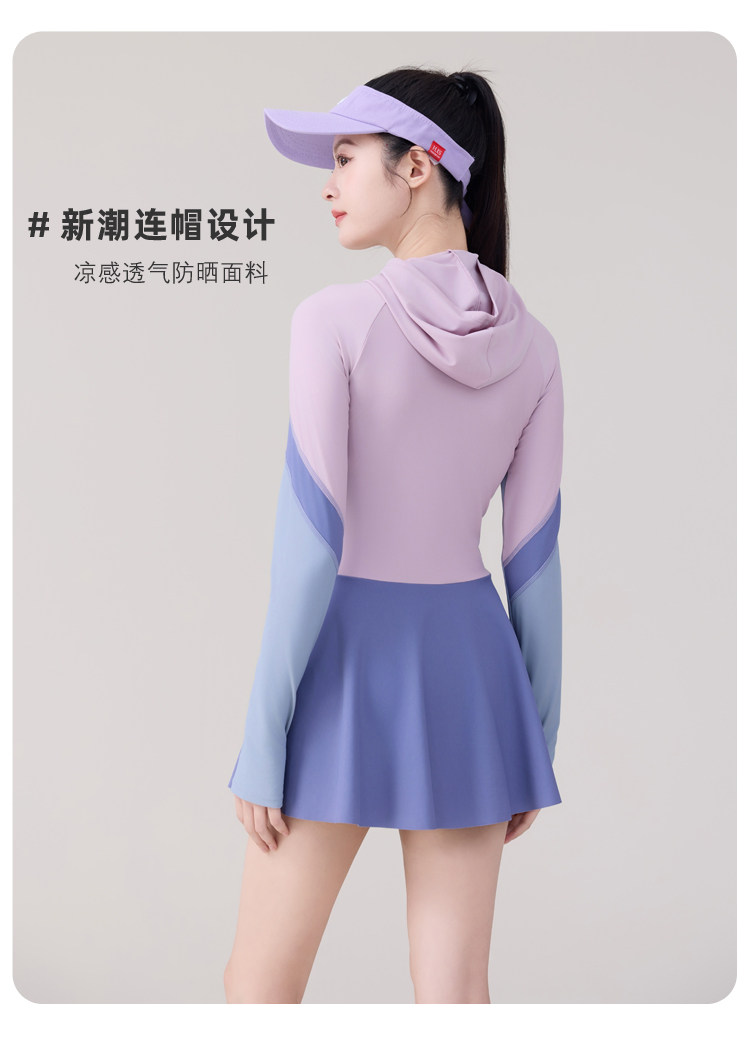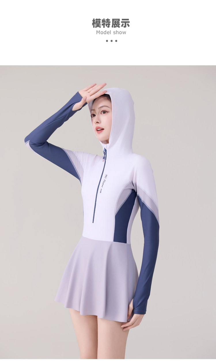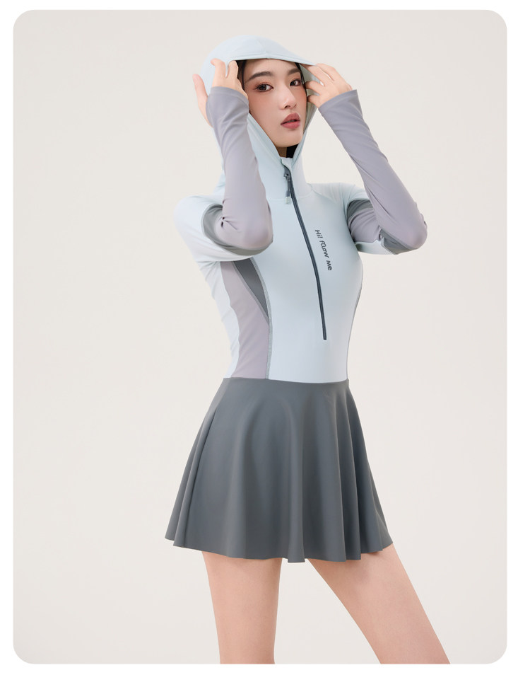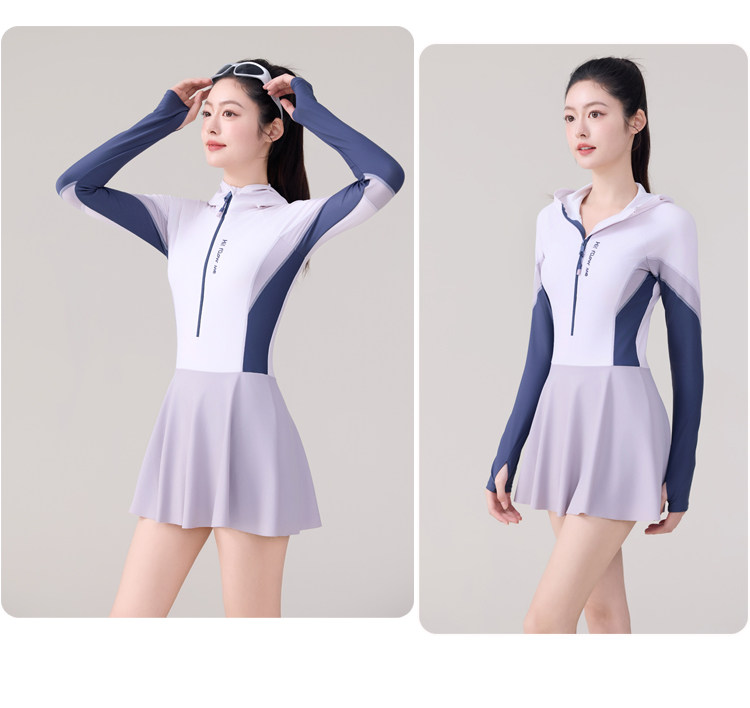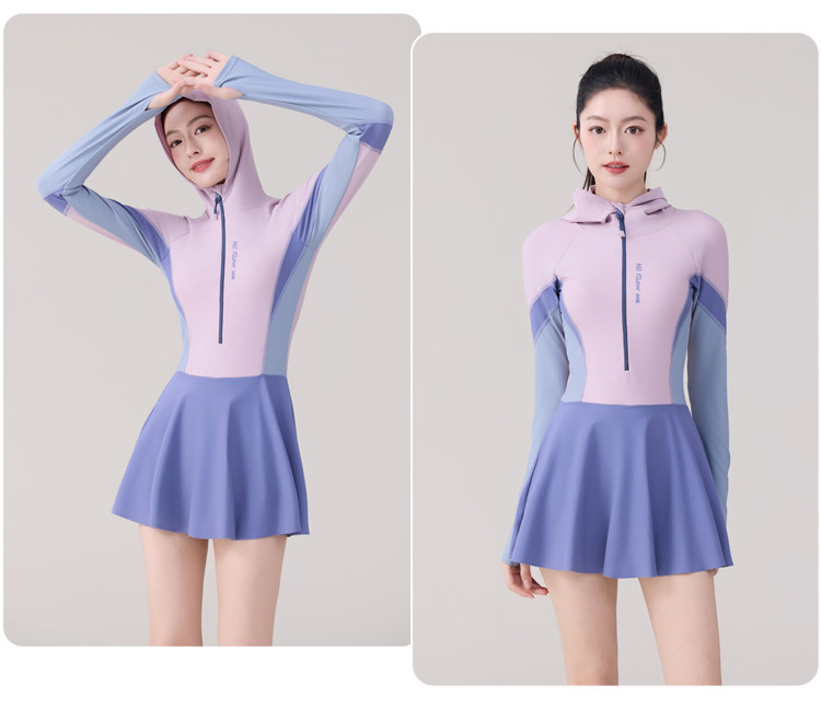 One-Piece Skirt-Style Swimsuit for Women 2025 New Model Hooded Long-Sleeved Sun Protection Tummy-Covering Slimming Conservative Hot Spring Swimming Pool Plus Size