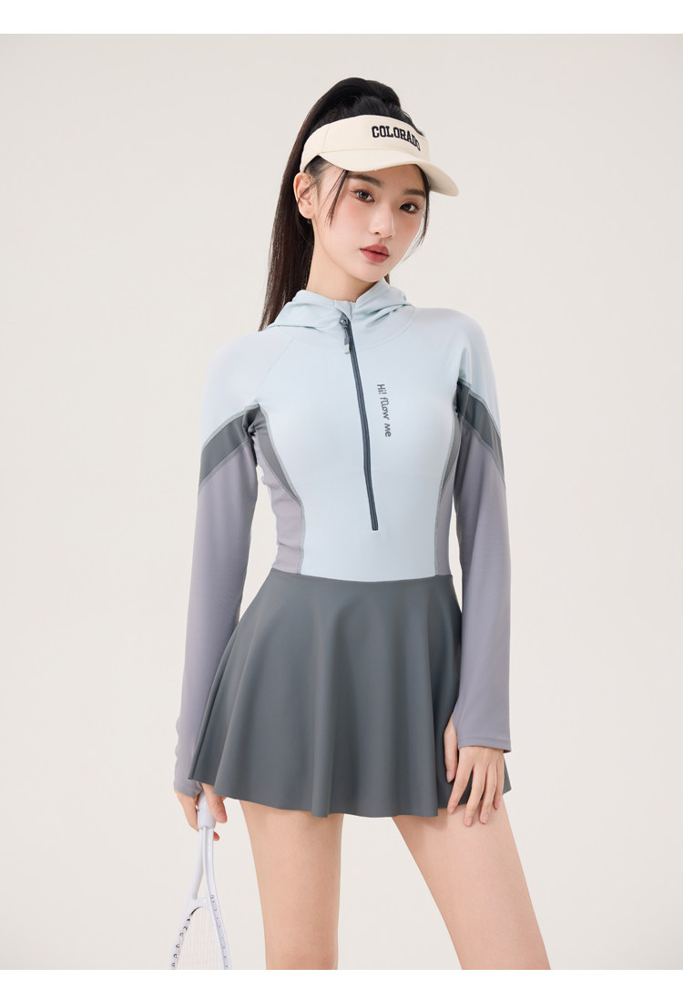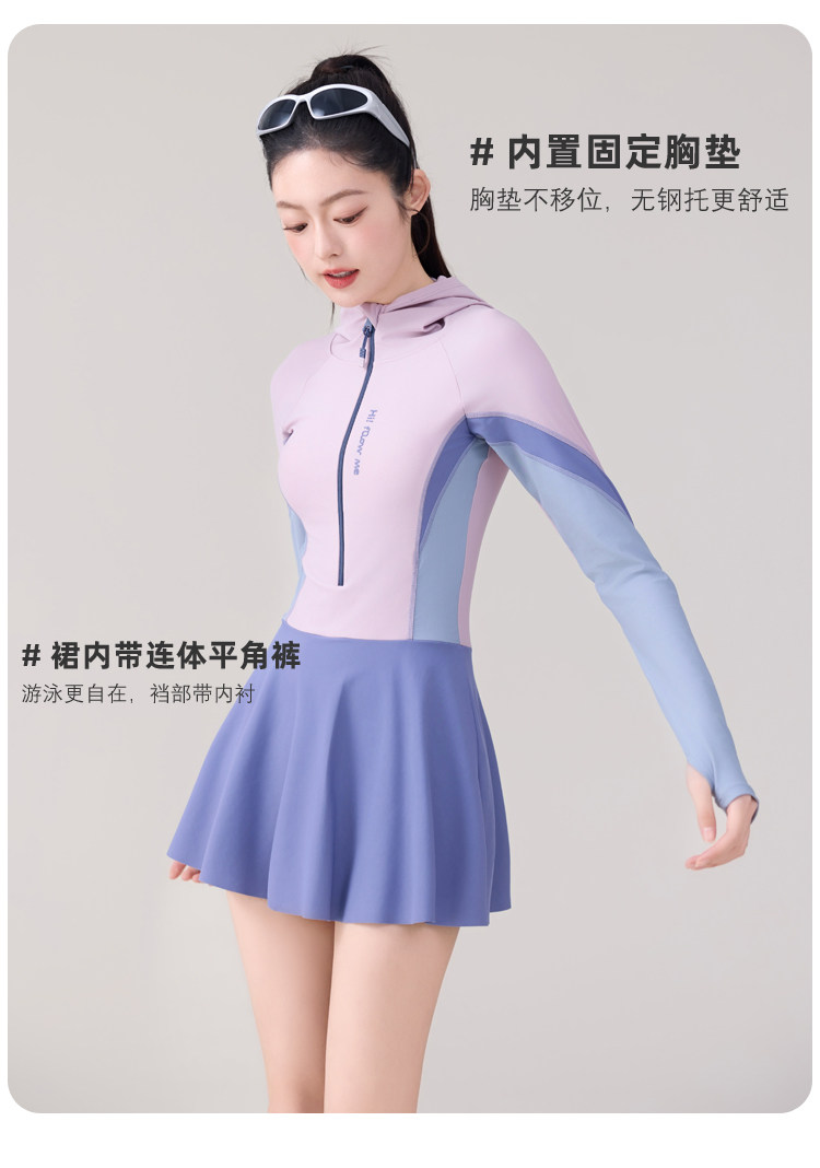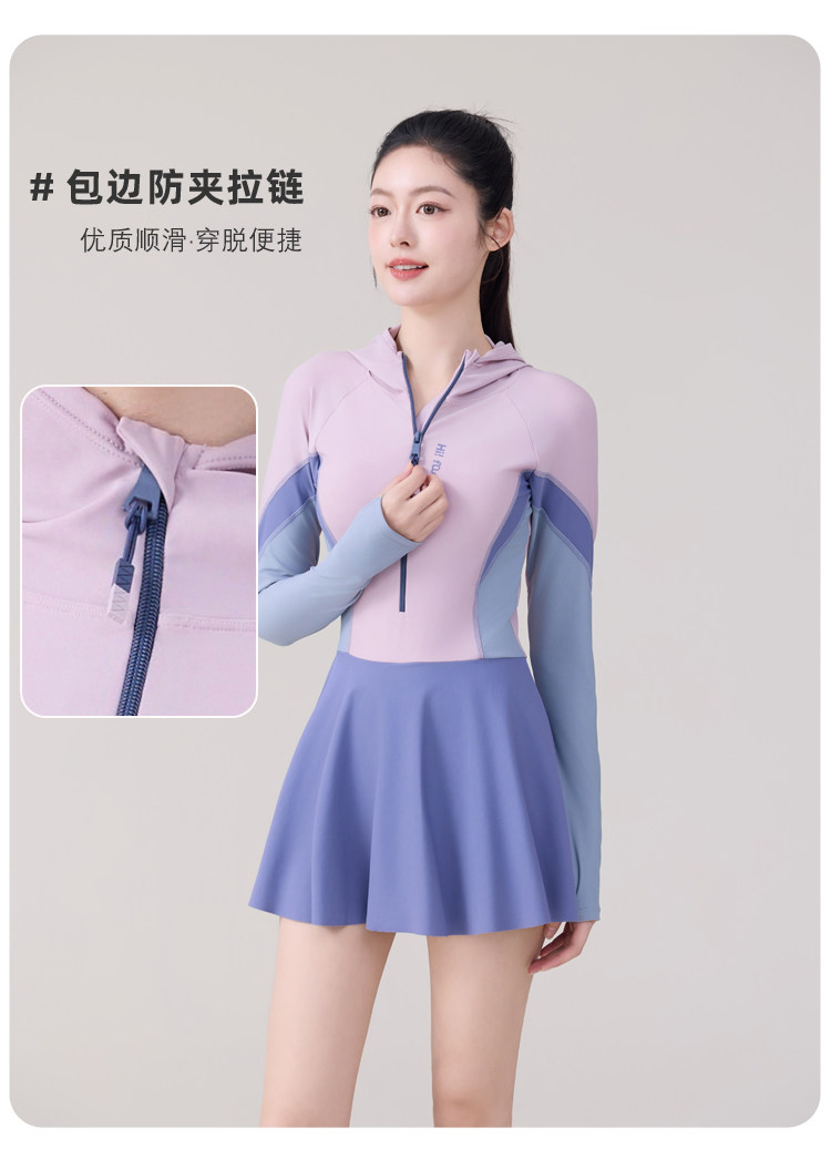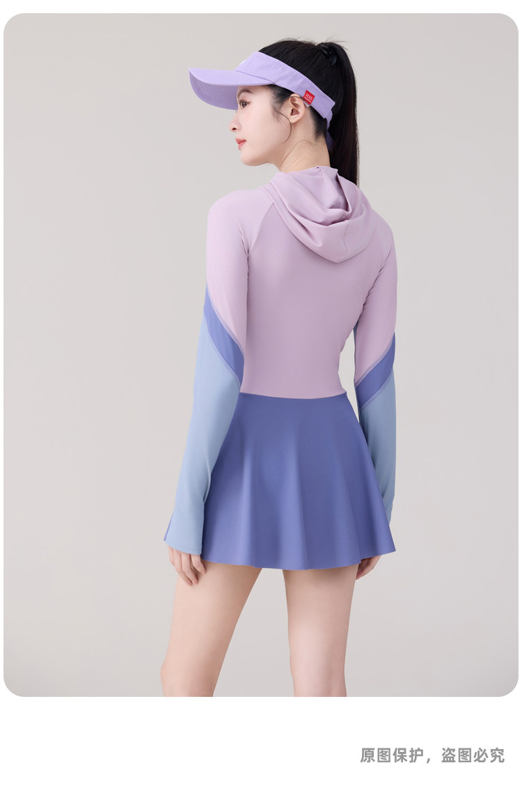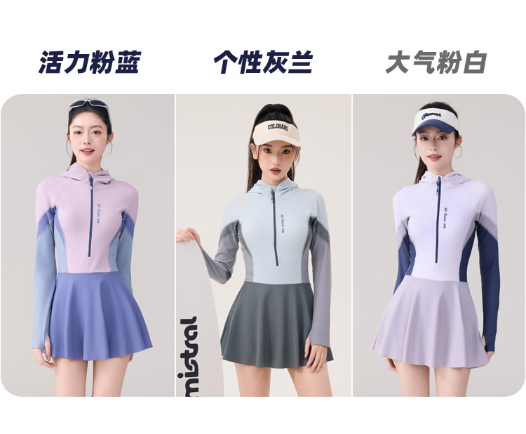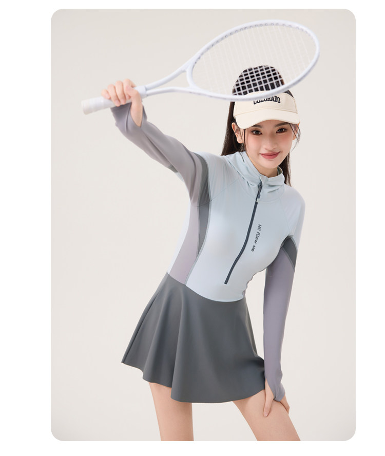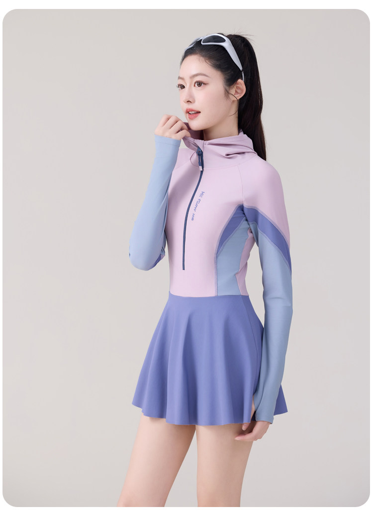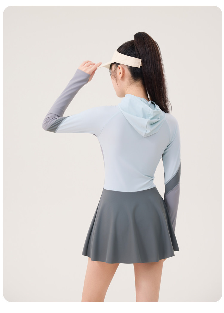 One-Piece Skirt-Style Swimsuit for Women 2025 New Model Hooded Long-Sleeved Sun Protection Tummy-Covering Slimming Conservative Hot Spring Swimming Pool Plus Size