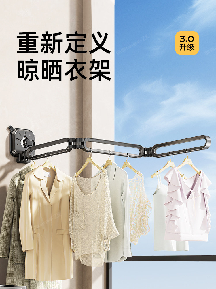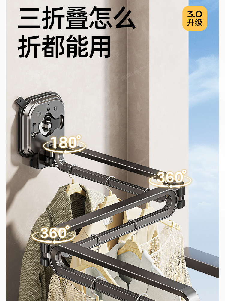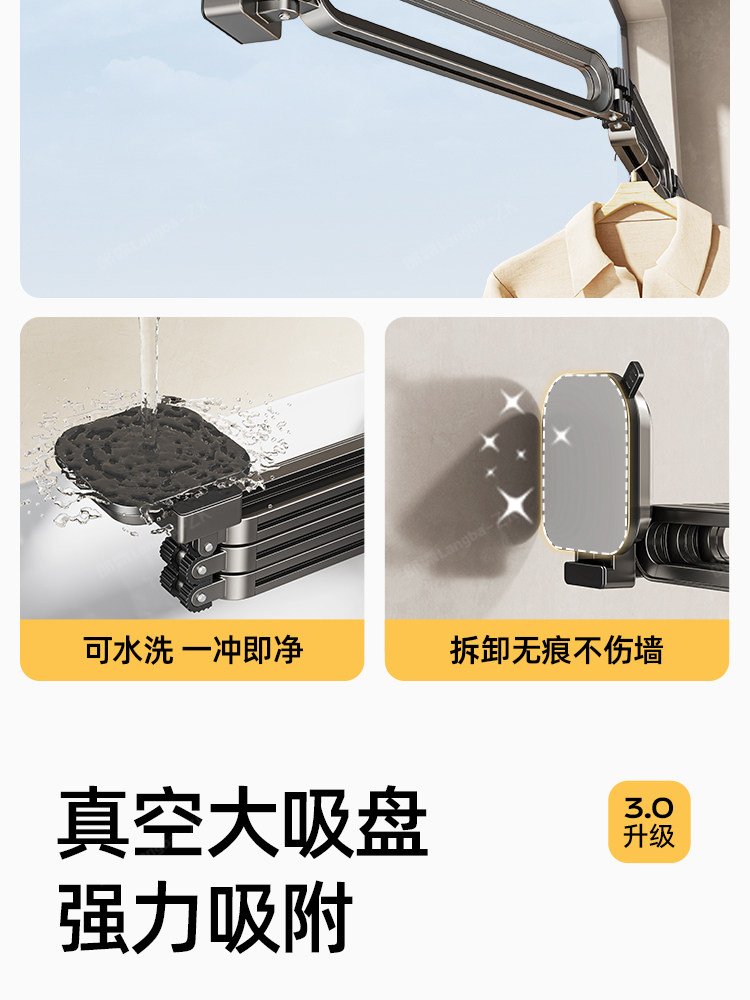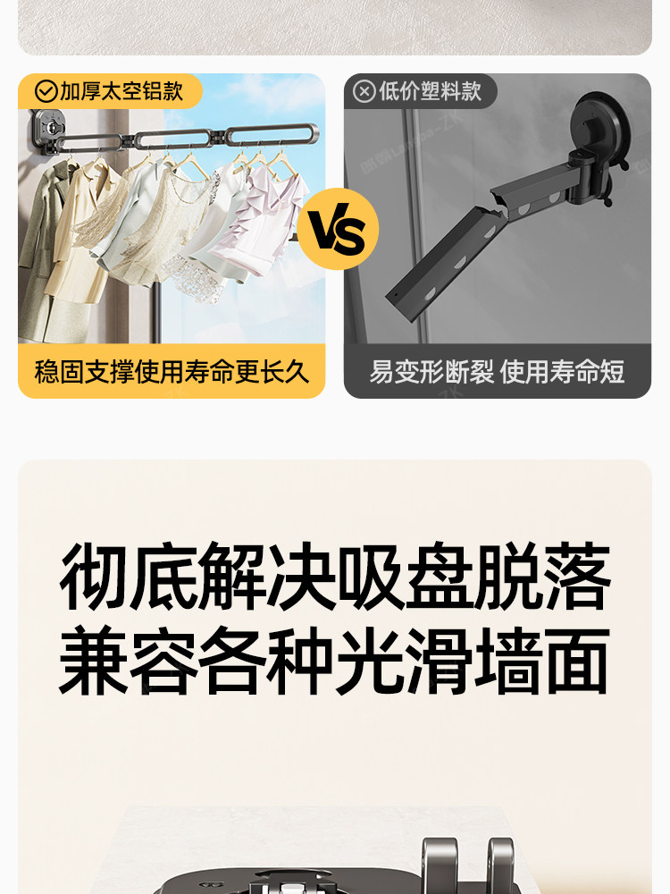 Suction Cup Folding Clothes Drying Rack, Invisible Retractable Clothes Rod, Home Use, No Drilling Required, for Drying Quilts, Window Balcony Clothes Drying Magic Tool