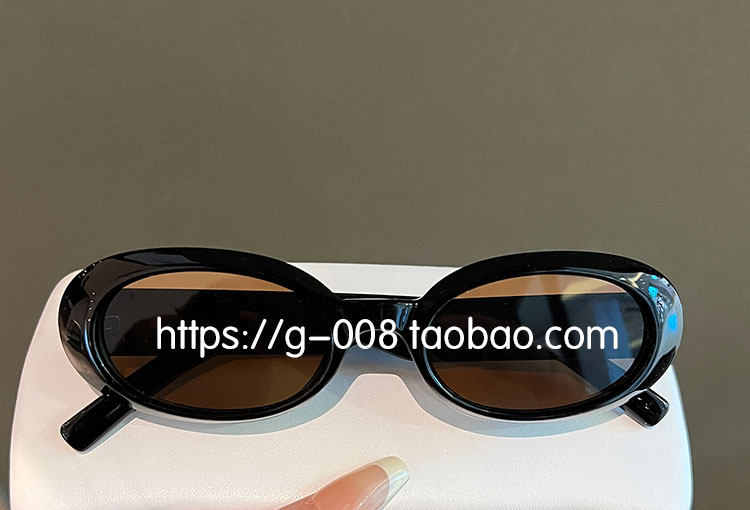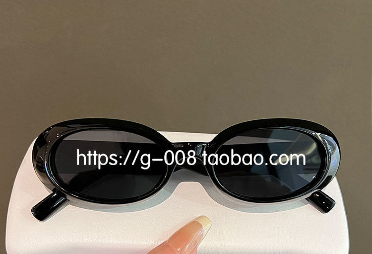 Retro Black Small Face Oval Cat-Eye Sunglasses for Women, Versatile, High-End, Photo-Taking, Concave Shape Sunglasses, Anti-Uv